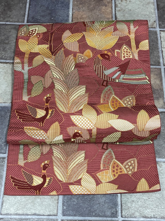 八寸名古屋帯ピンク系 くすみピンク鳥ボタニカル日常着普段着カジュアルお稽古