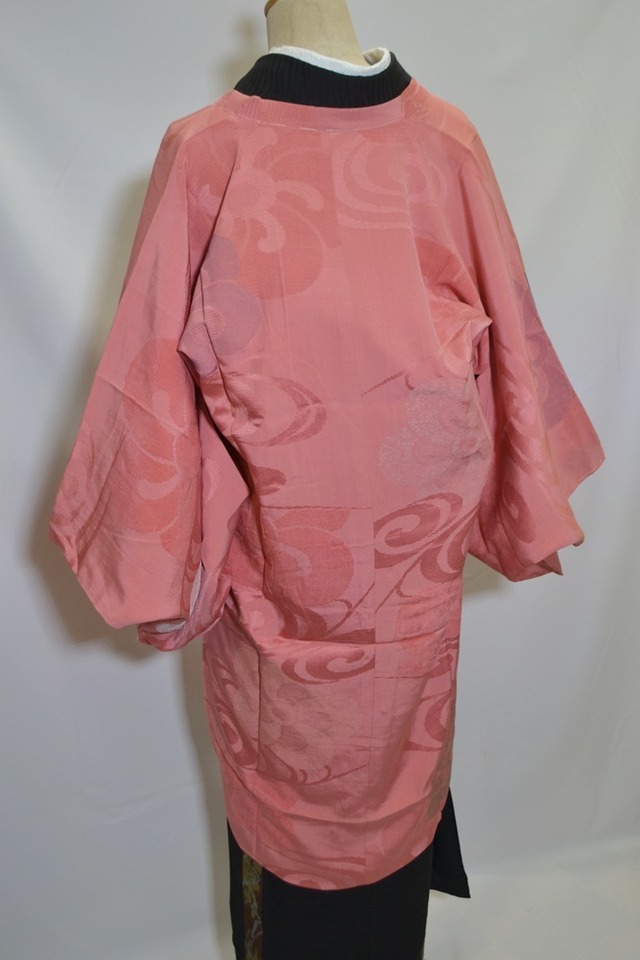 アンティーク道行 道行コート 縮緬 桃色 ねじり梅