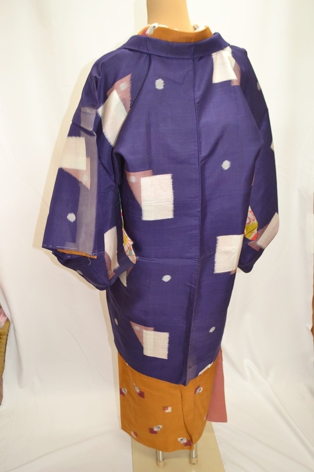 アンティーク銘仙羽織☆紺地にモダン幾何学文様