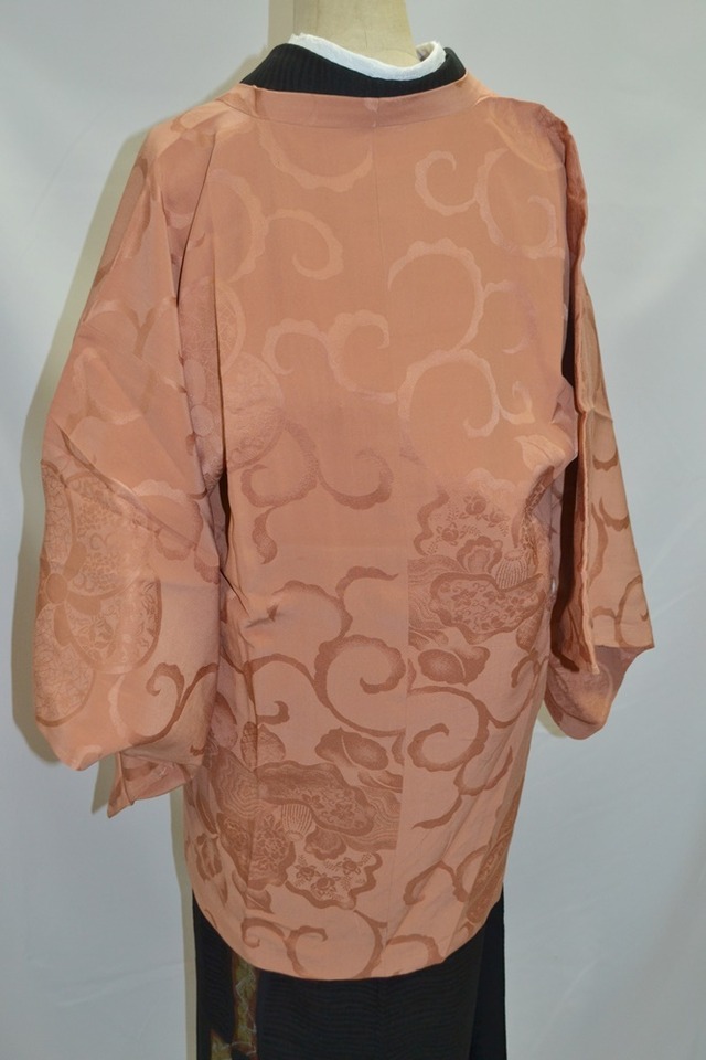 アンティーク道行 道行コート ベージュピンク 花唐草地模様 ミルクティーカラー 花唐草地模様