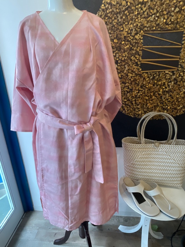 ルームウェア ピンク系 ローブ ガウン 着物リメイク シルクウエア 部屋着
