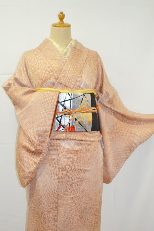 シャンパンゴールド の モダン柄 着物 クロコダイル