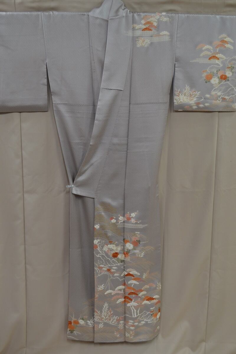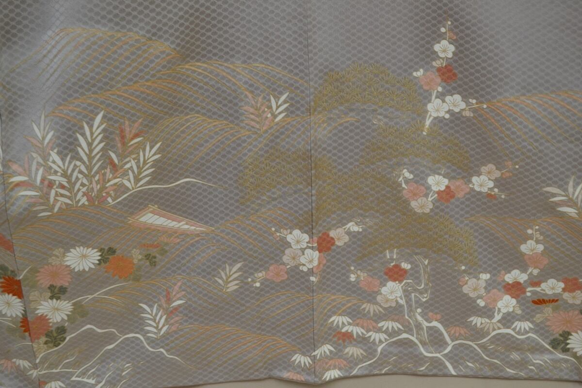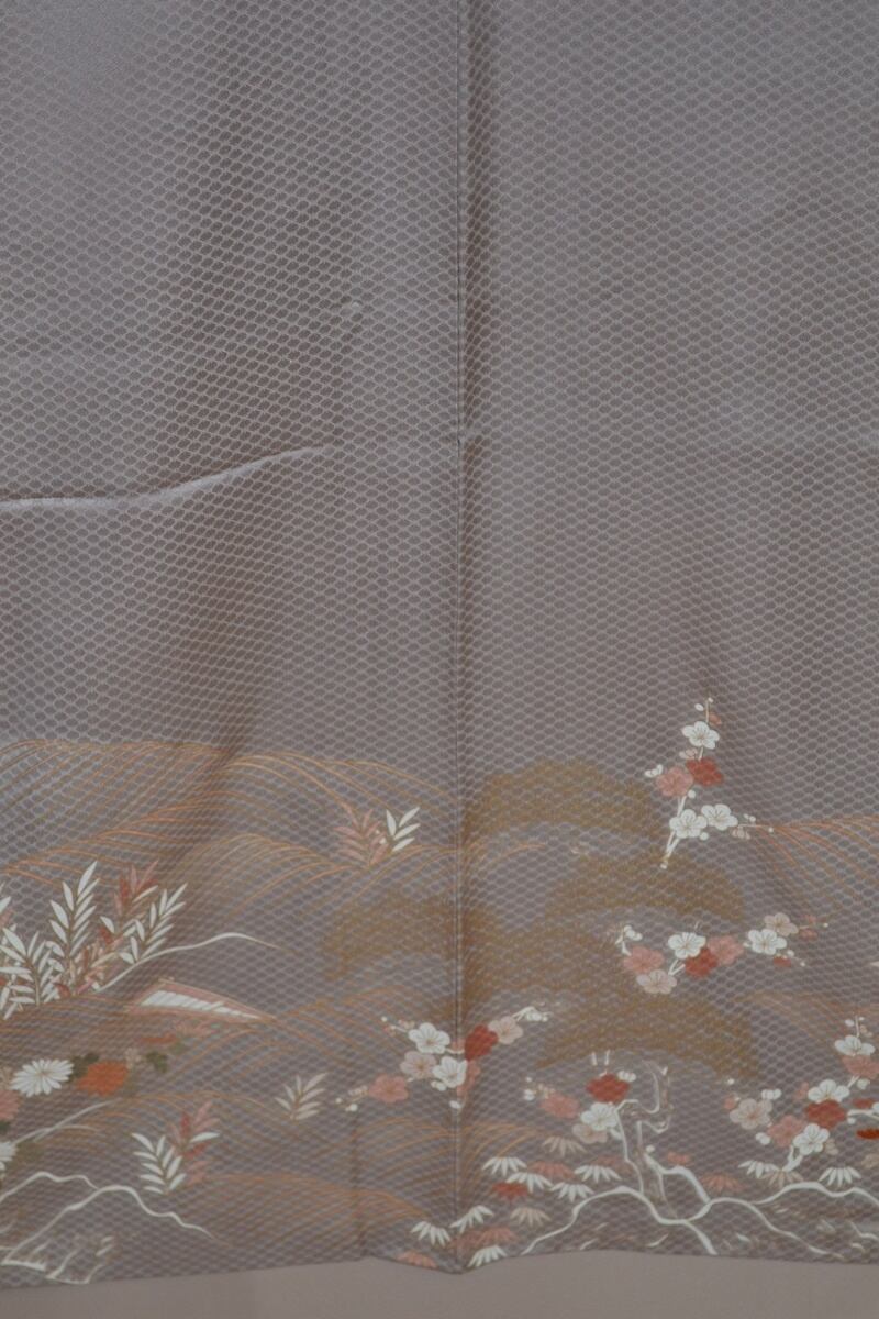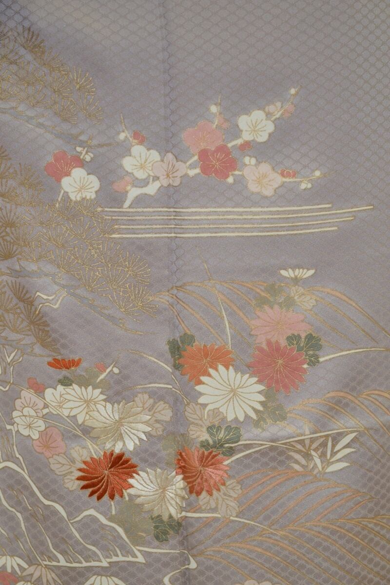 薄藤色☆金彩友禅の訪問着☆三つ扇の一つ紋
