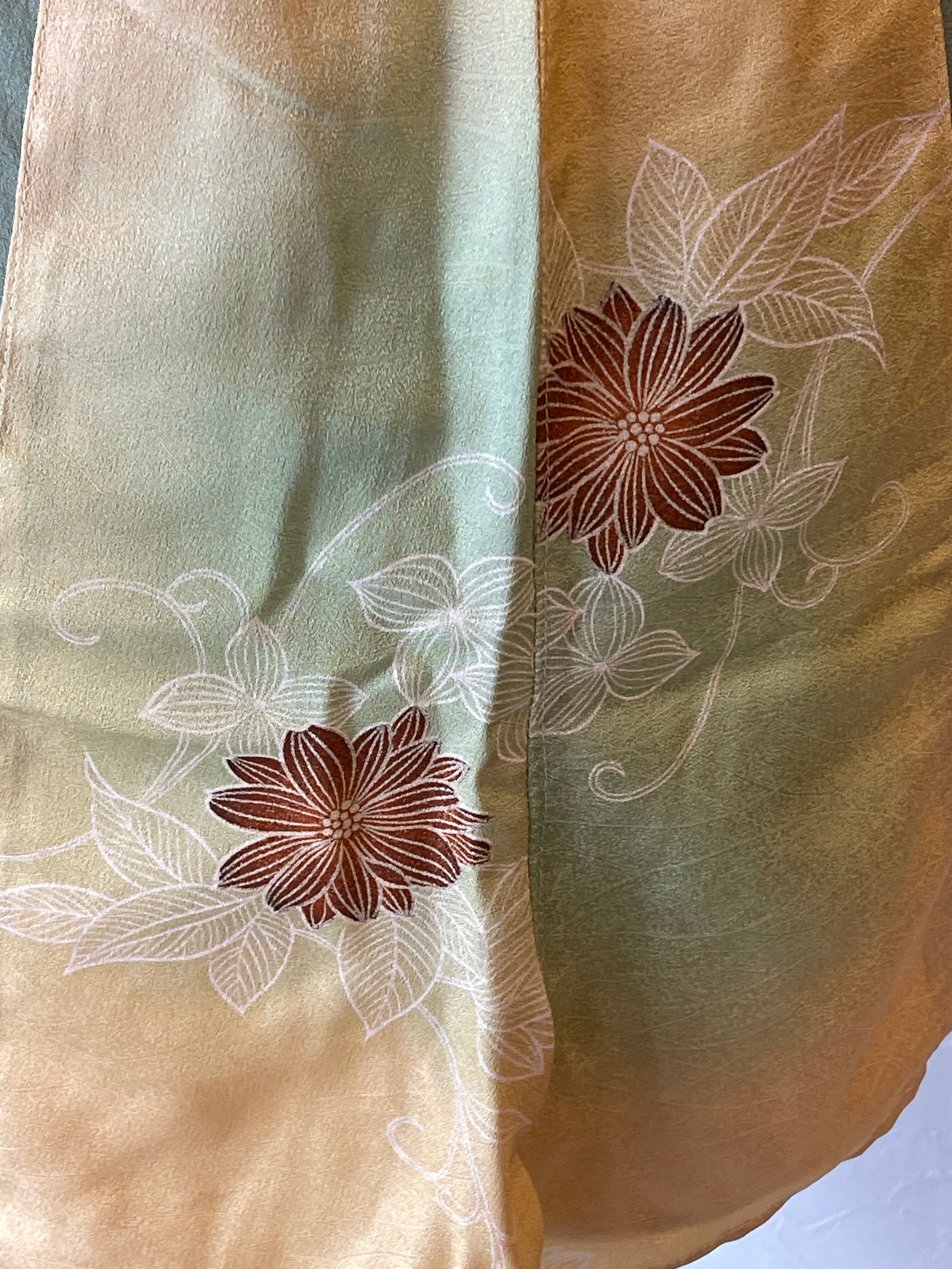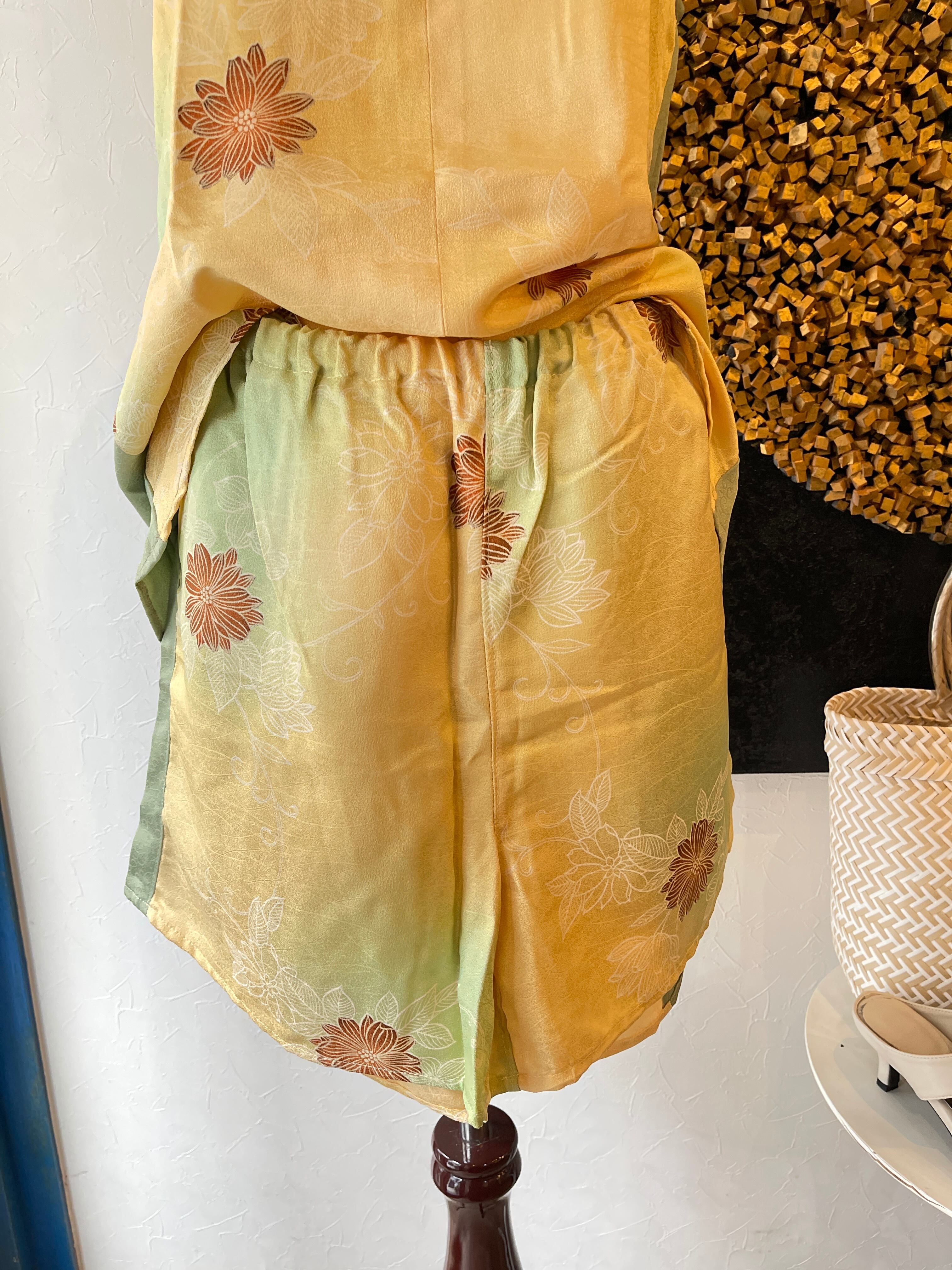 ルームウェア シルクセットアップ 着物リメイク イエロー 抹茶グリーン 唐花 キャミソール トップスアンドショートパンツ 2点セット パジャマ 部屋着 旅行