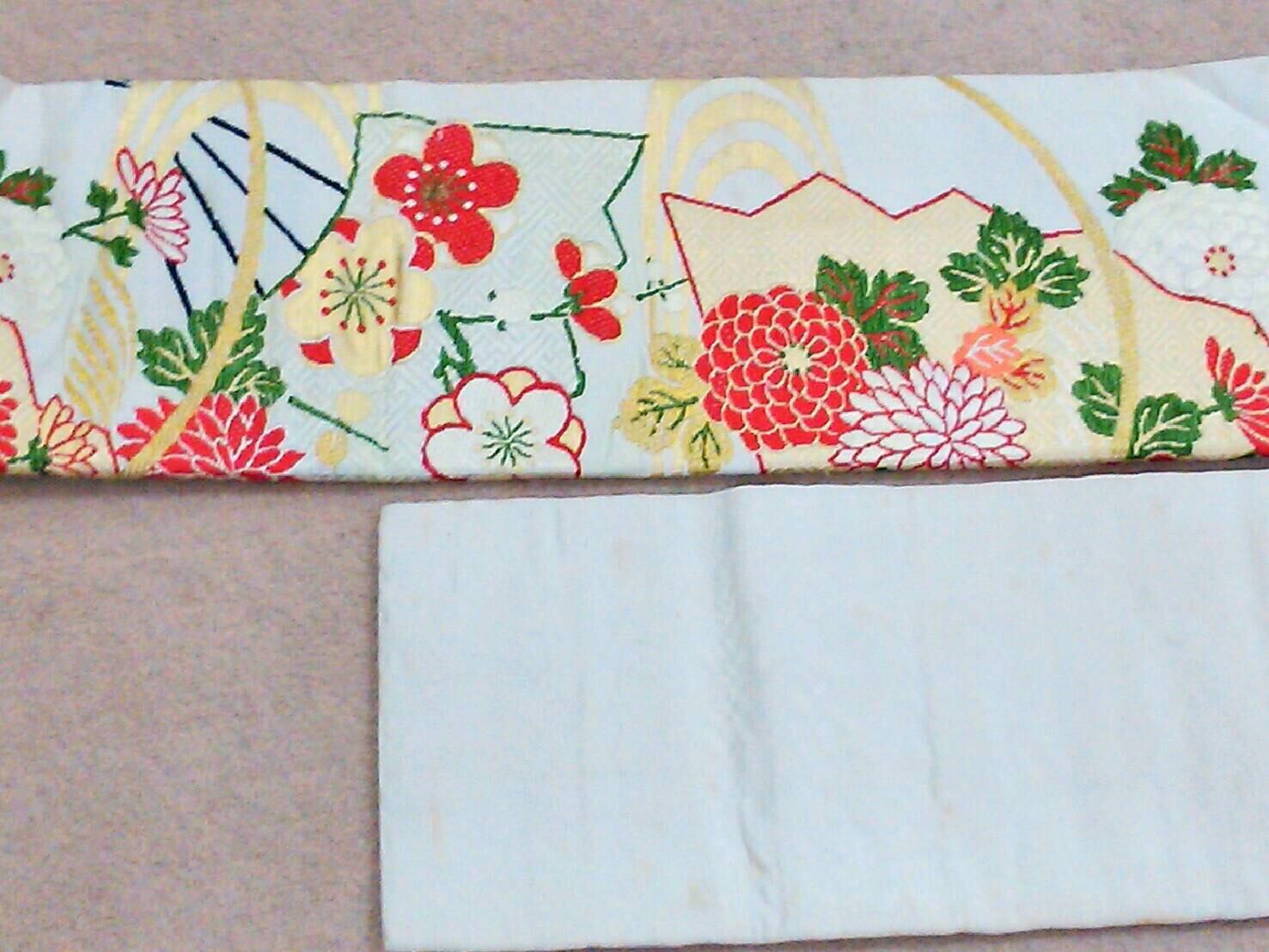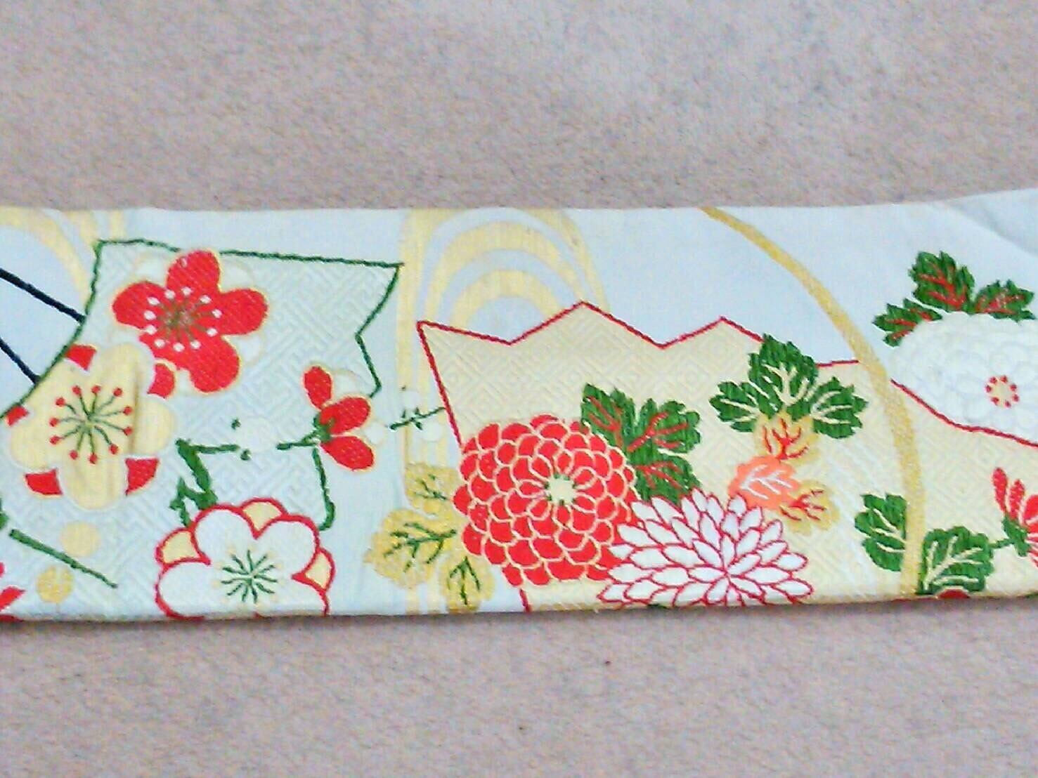 アンティーク名古屋帯 九寸名古屋帯 流水 扇面 梅 菊