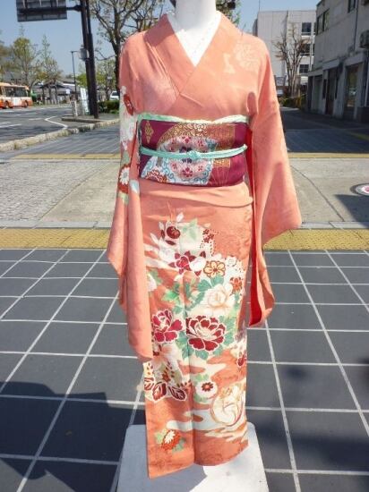 アンティーク着物 お嬢様 牡丹 中振り袖