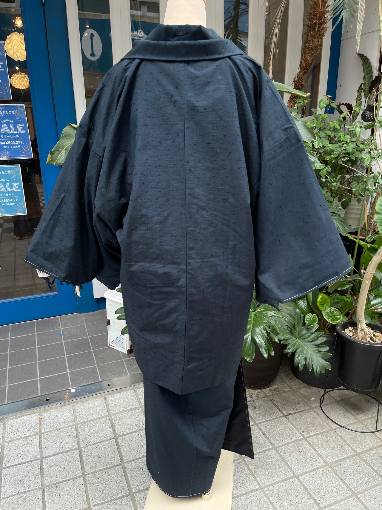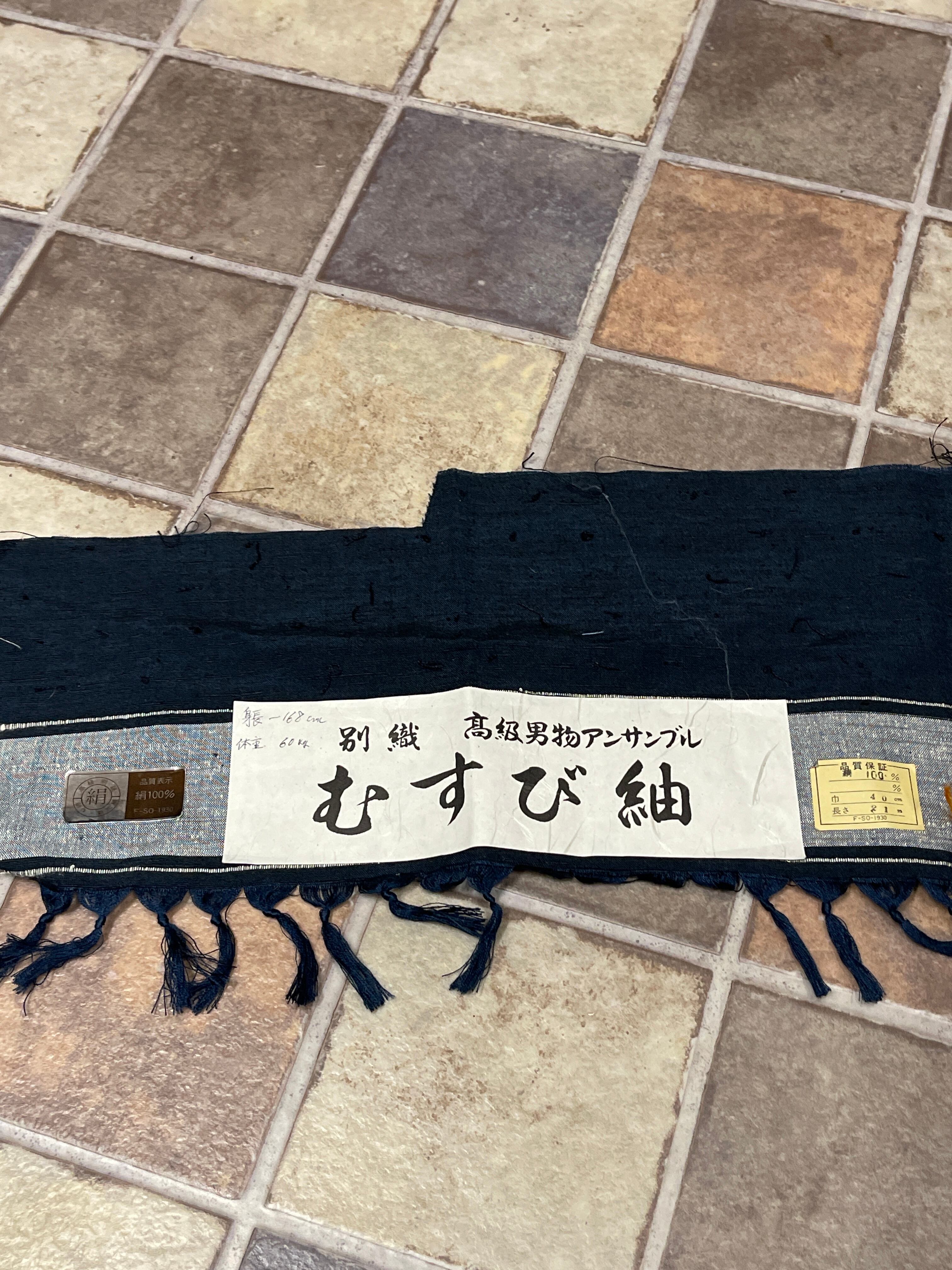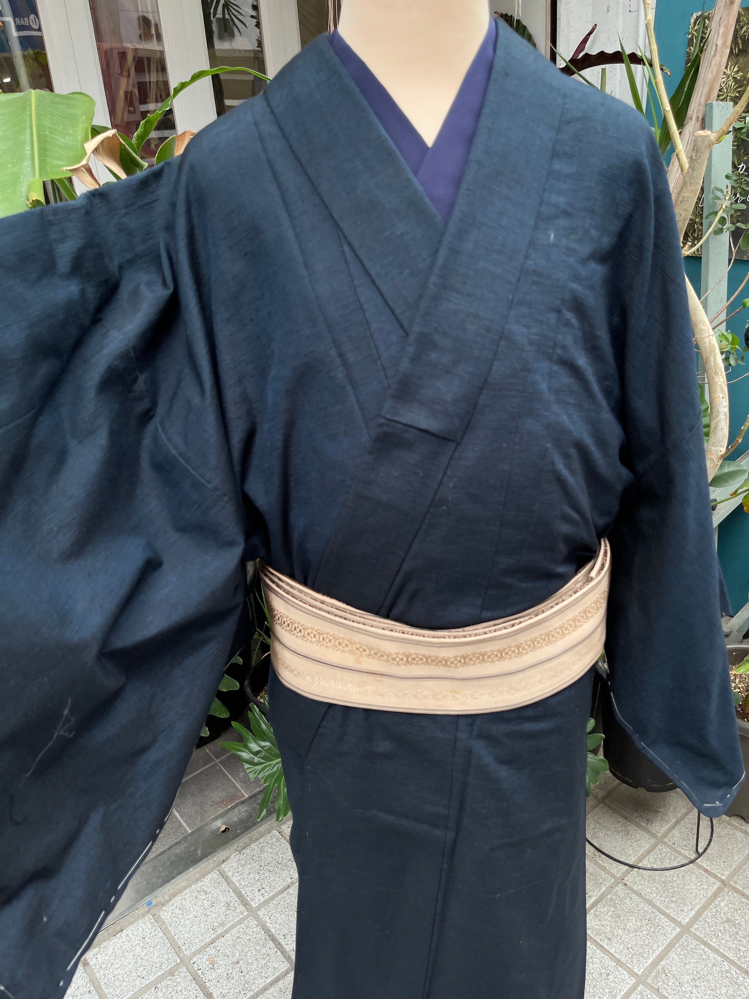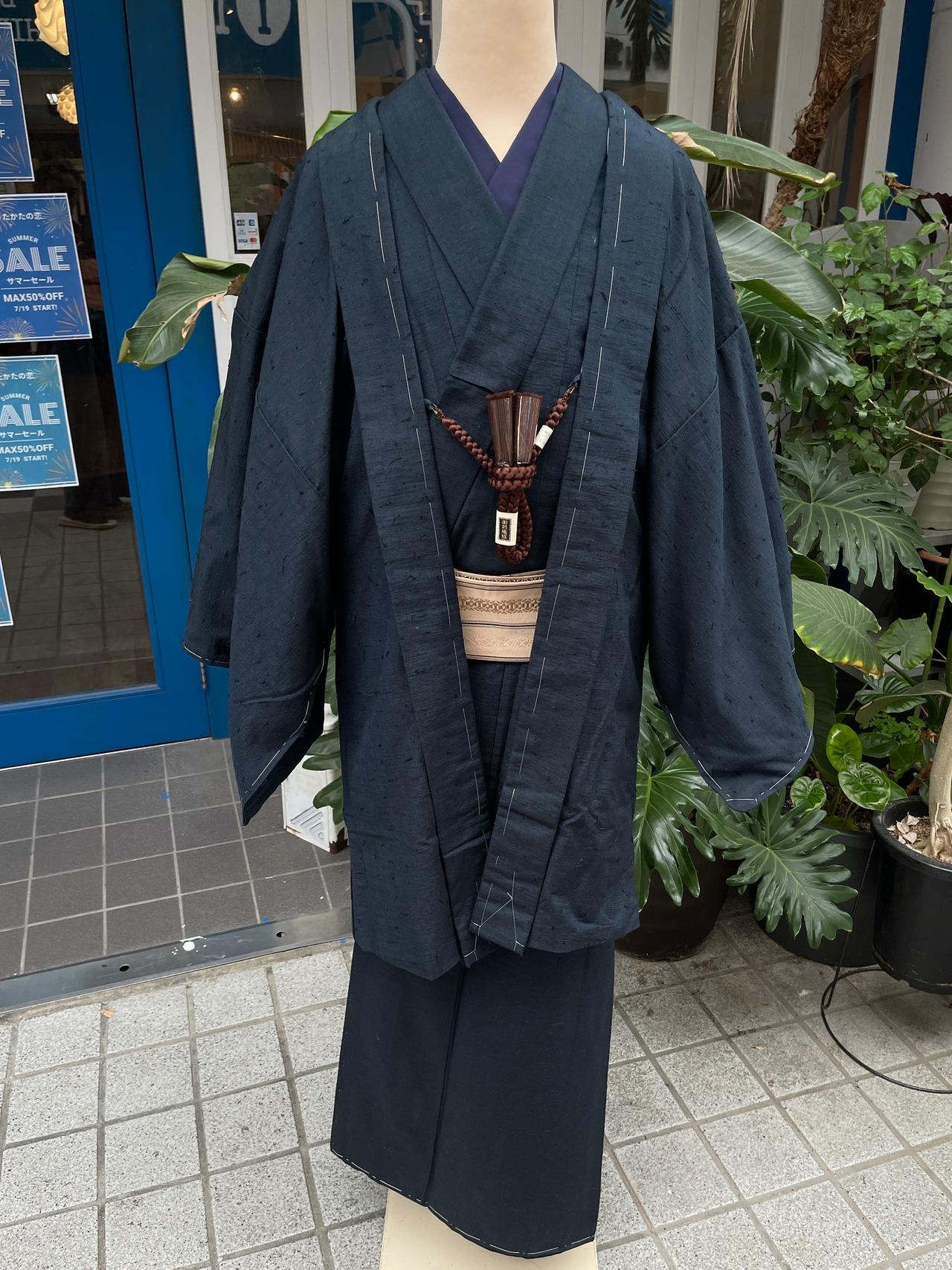 男性着物 メンズ着物 男物着物 紬 ひげ紬 紺色系 鉄紺 アンサンブル すぐに着られる着物セット