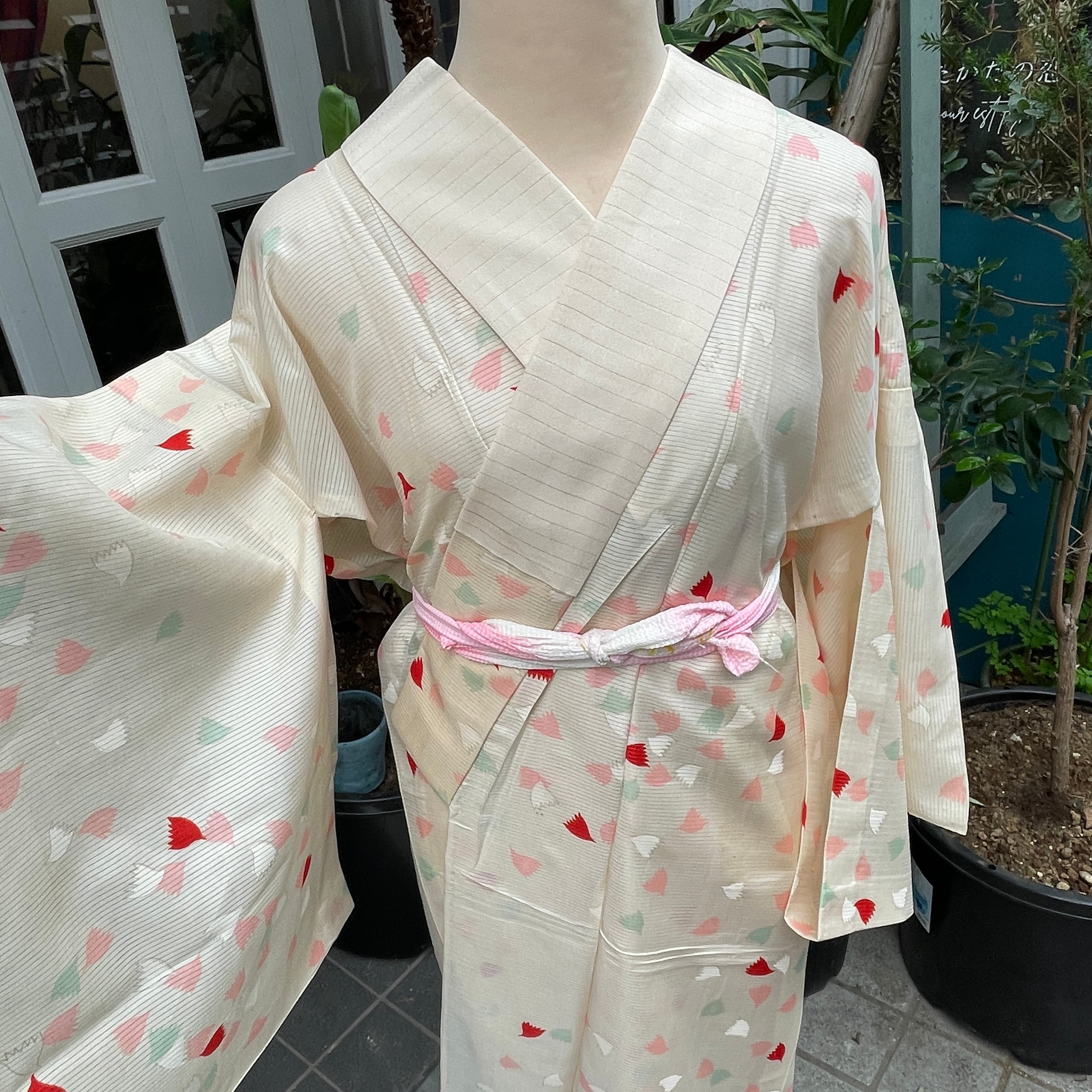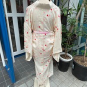 アンティーク長襦袢 長襦袢 夏用 絽 白系 花びら カジュアル 部屋着 ガウンガウン