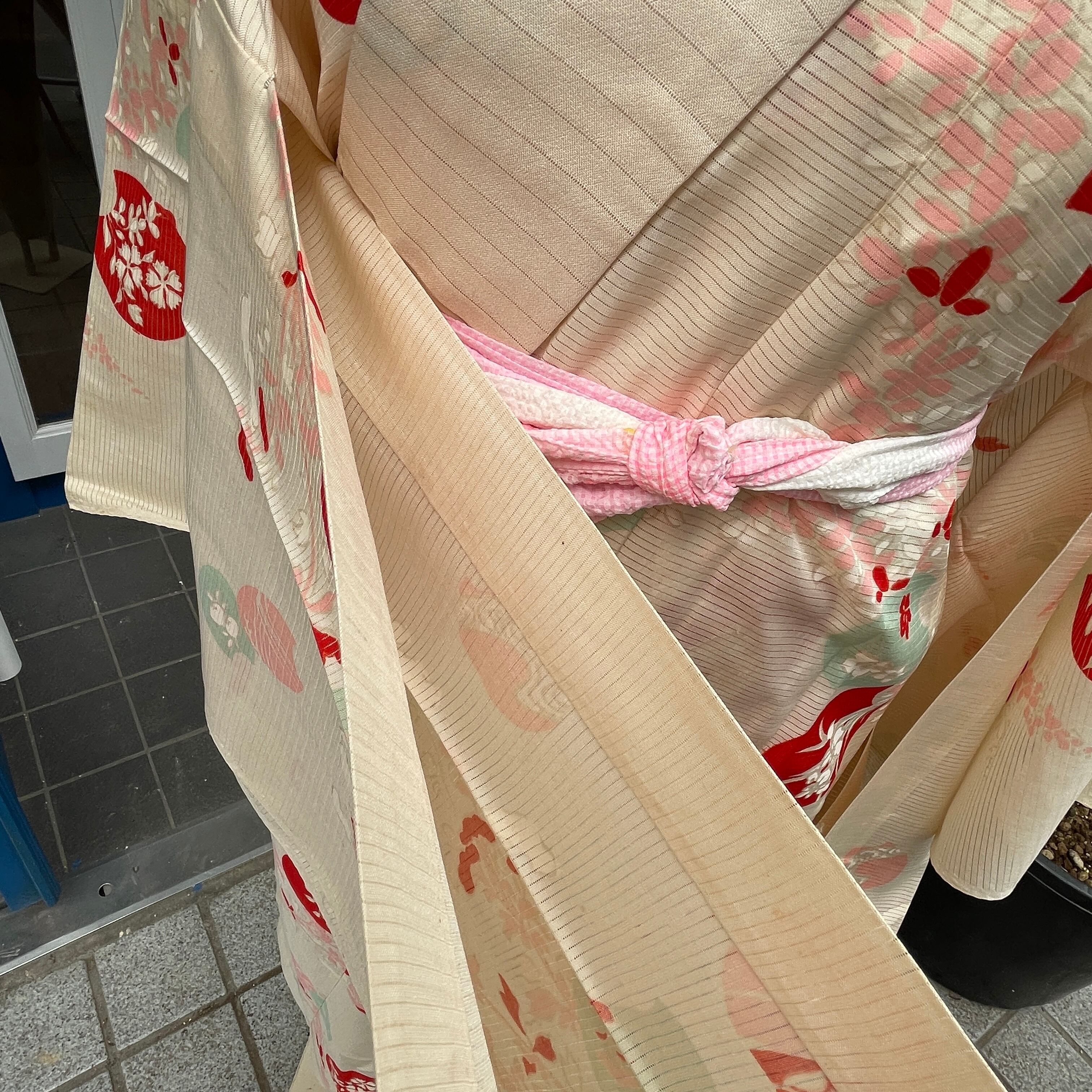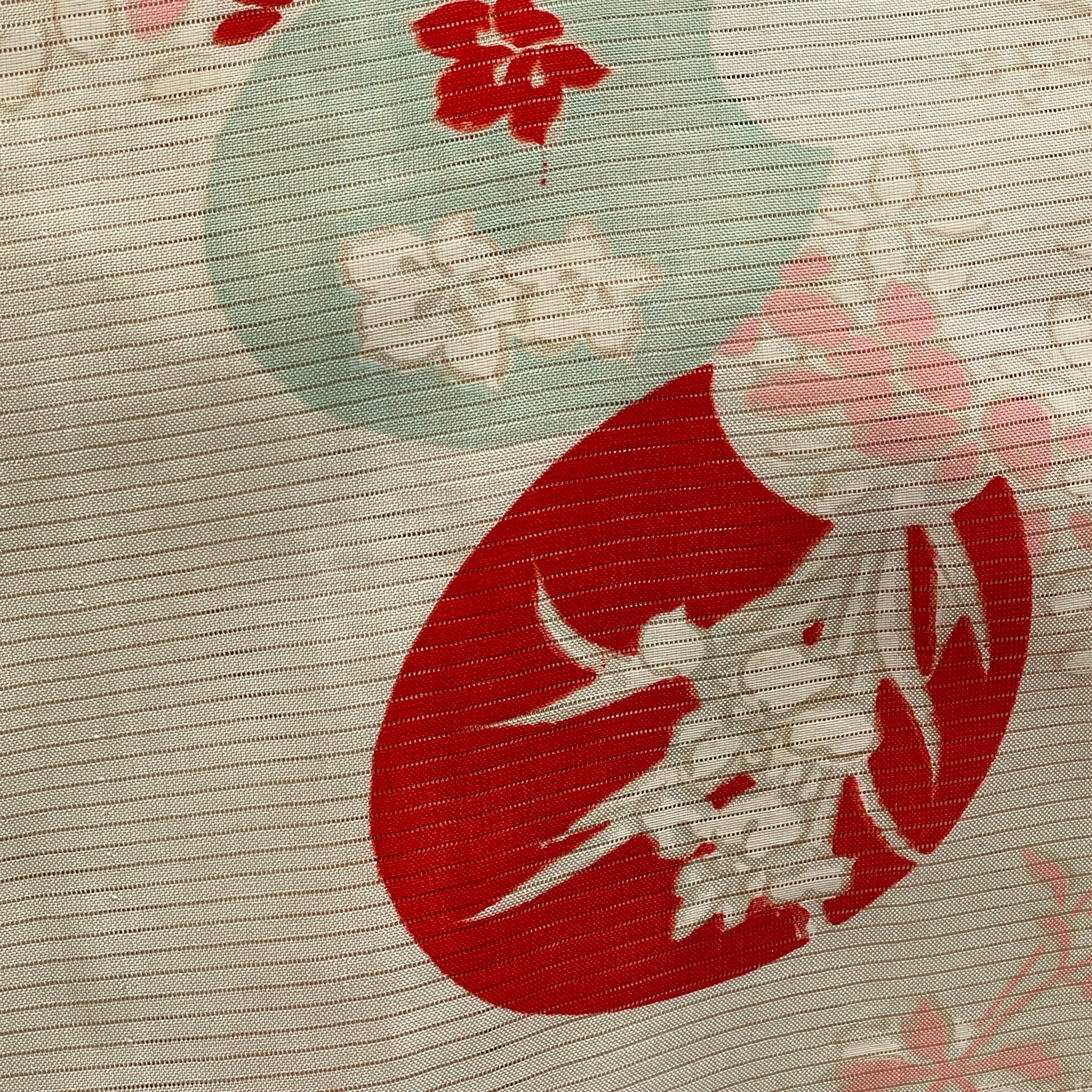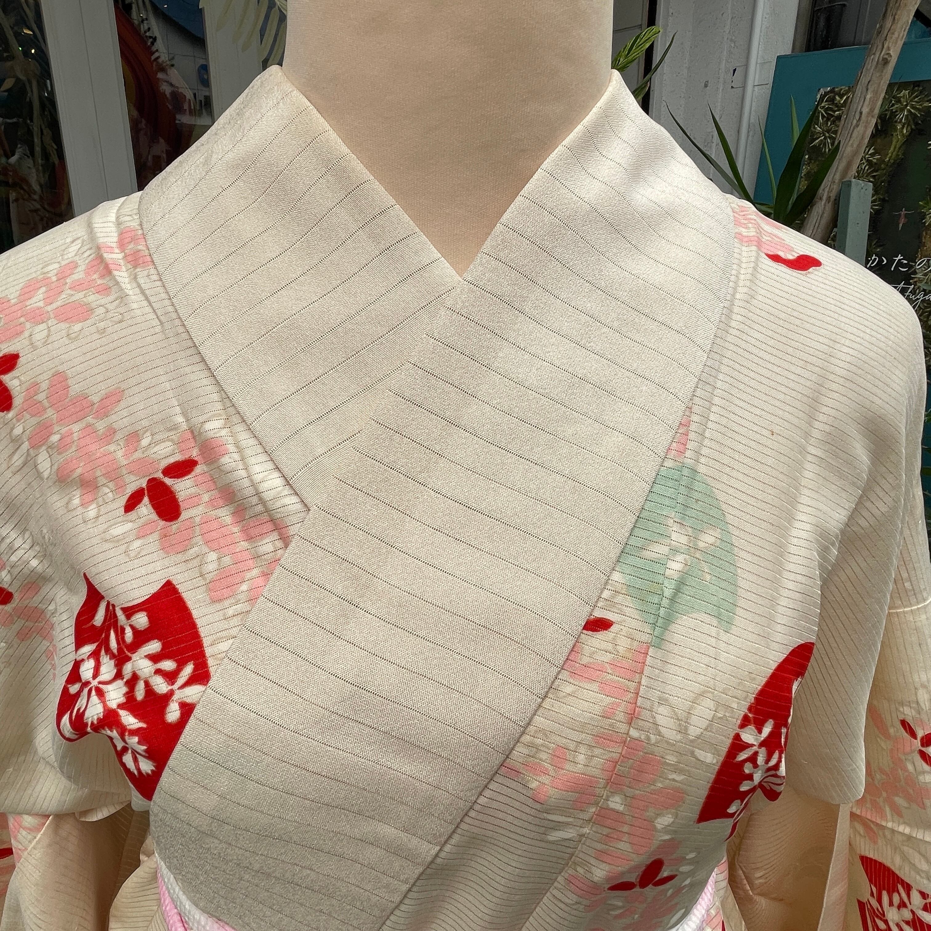 アンティーク長襦袢 長襦袢 夏用 絽 白系 うちわ 夏の草花 カジュアル ガウン 部屋着