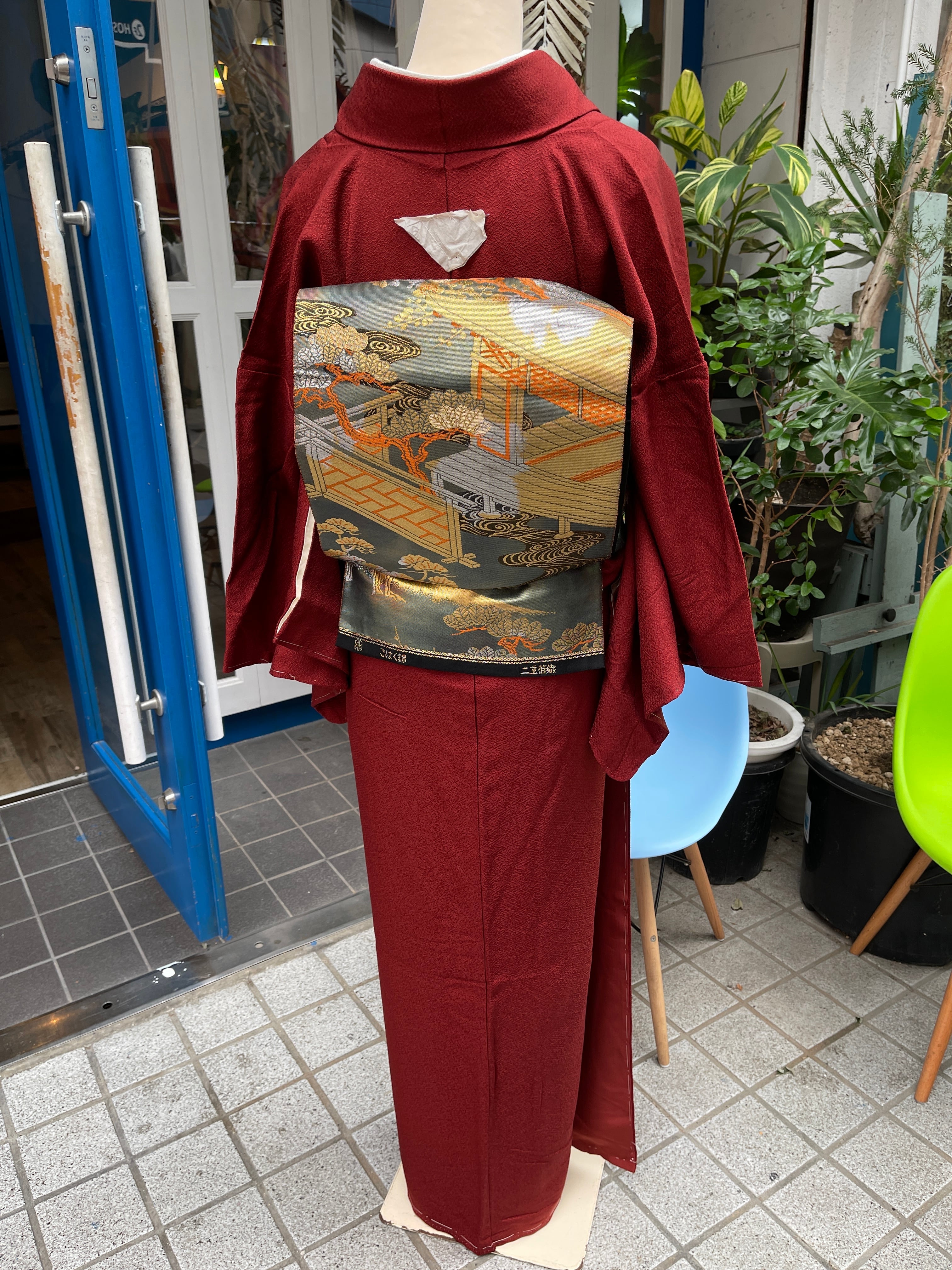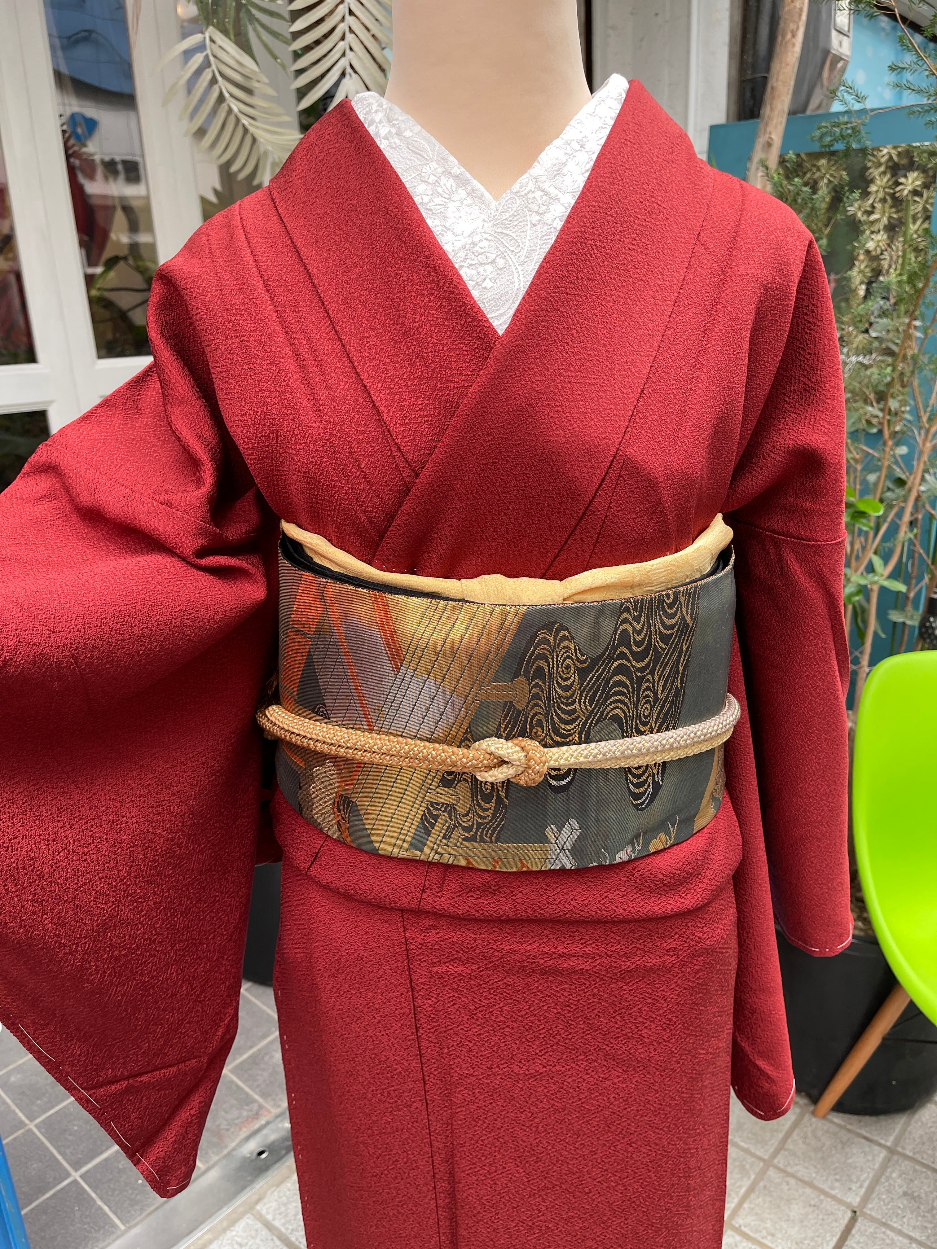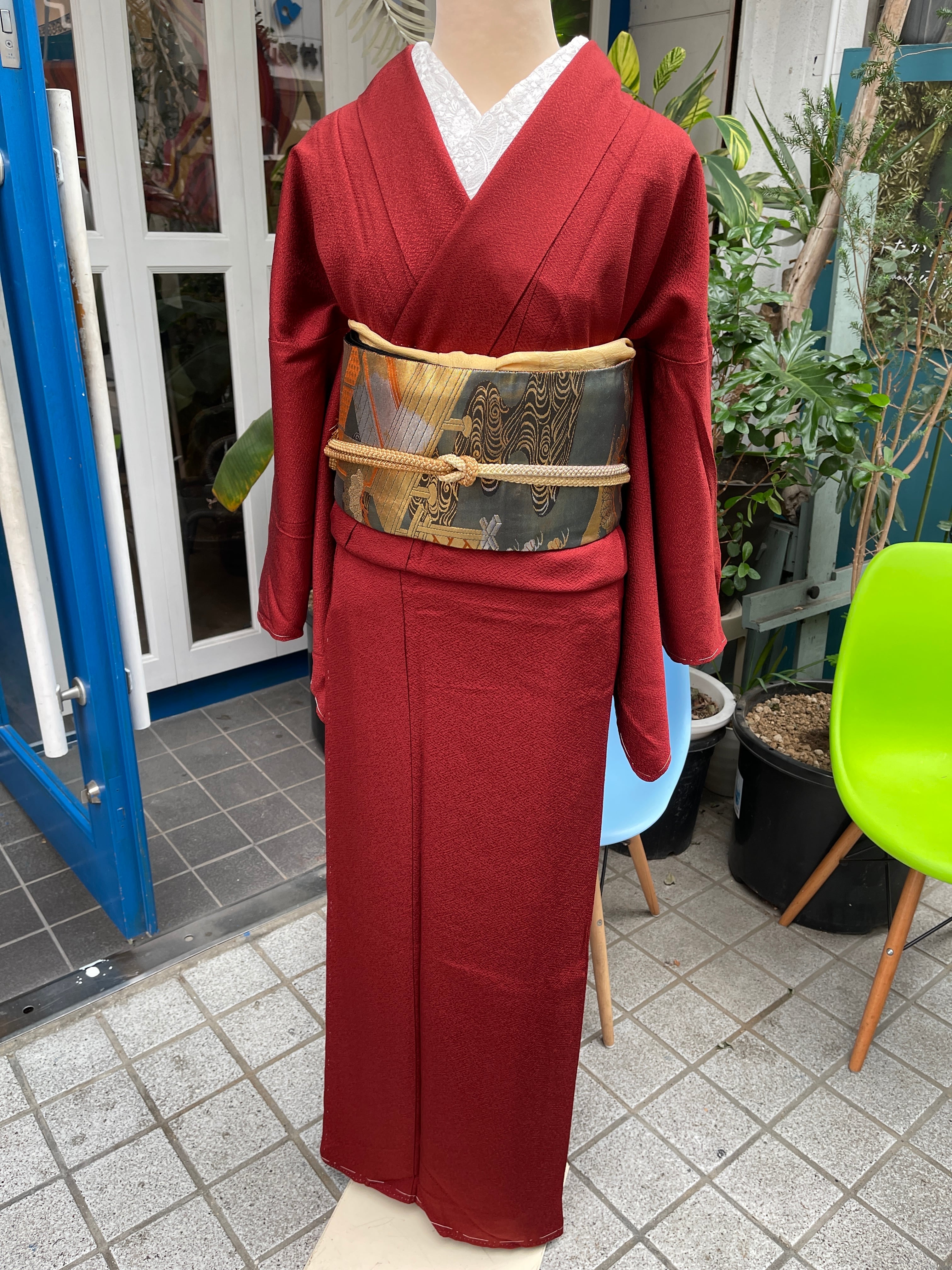 色無地 赤系 トールサイズ 一つ紋 作家物 セミフォーマル 結婚式 パーティー 観劇