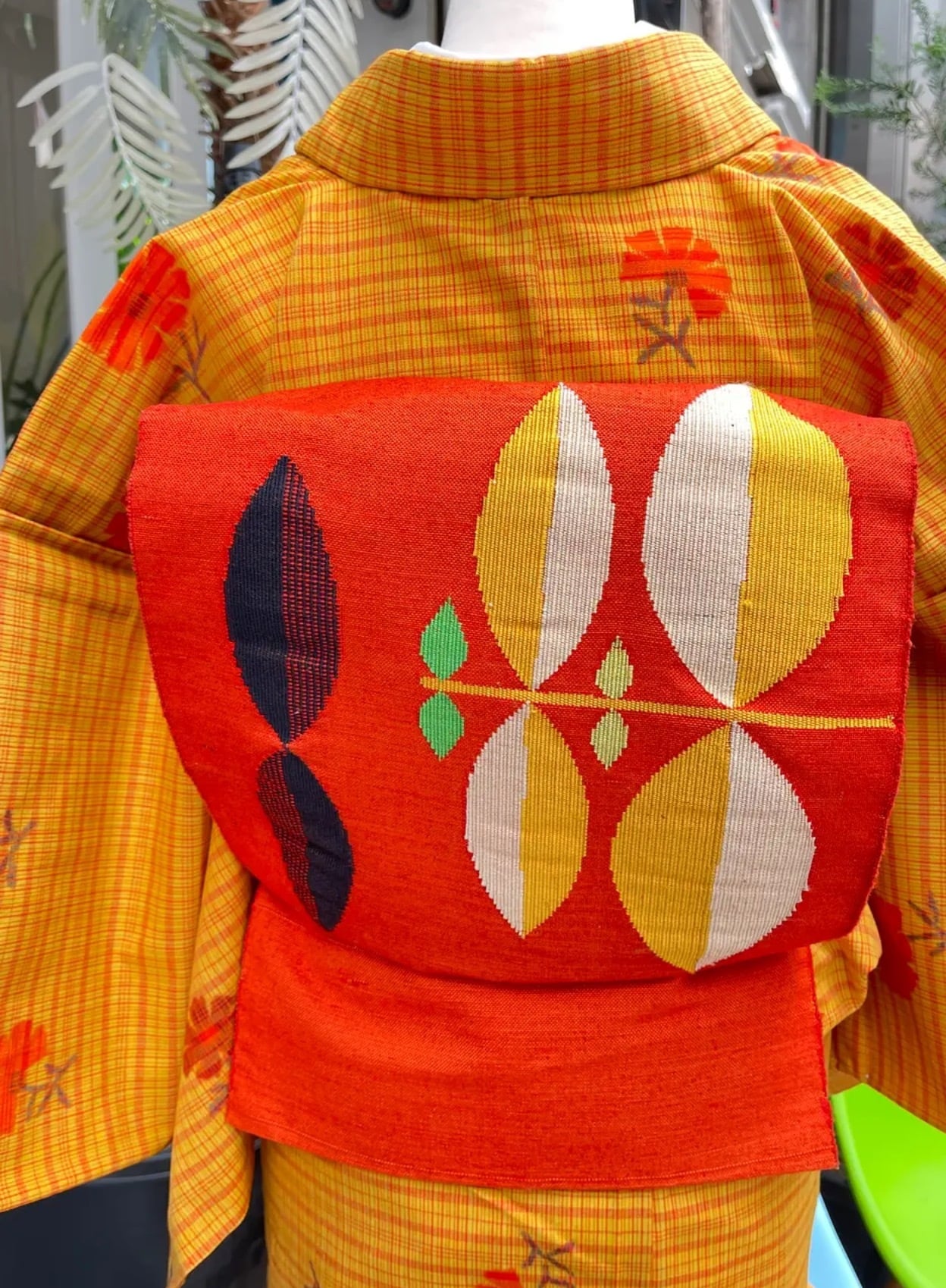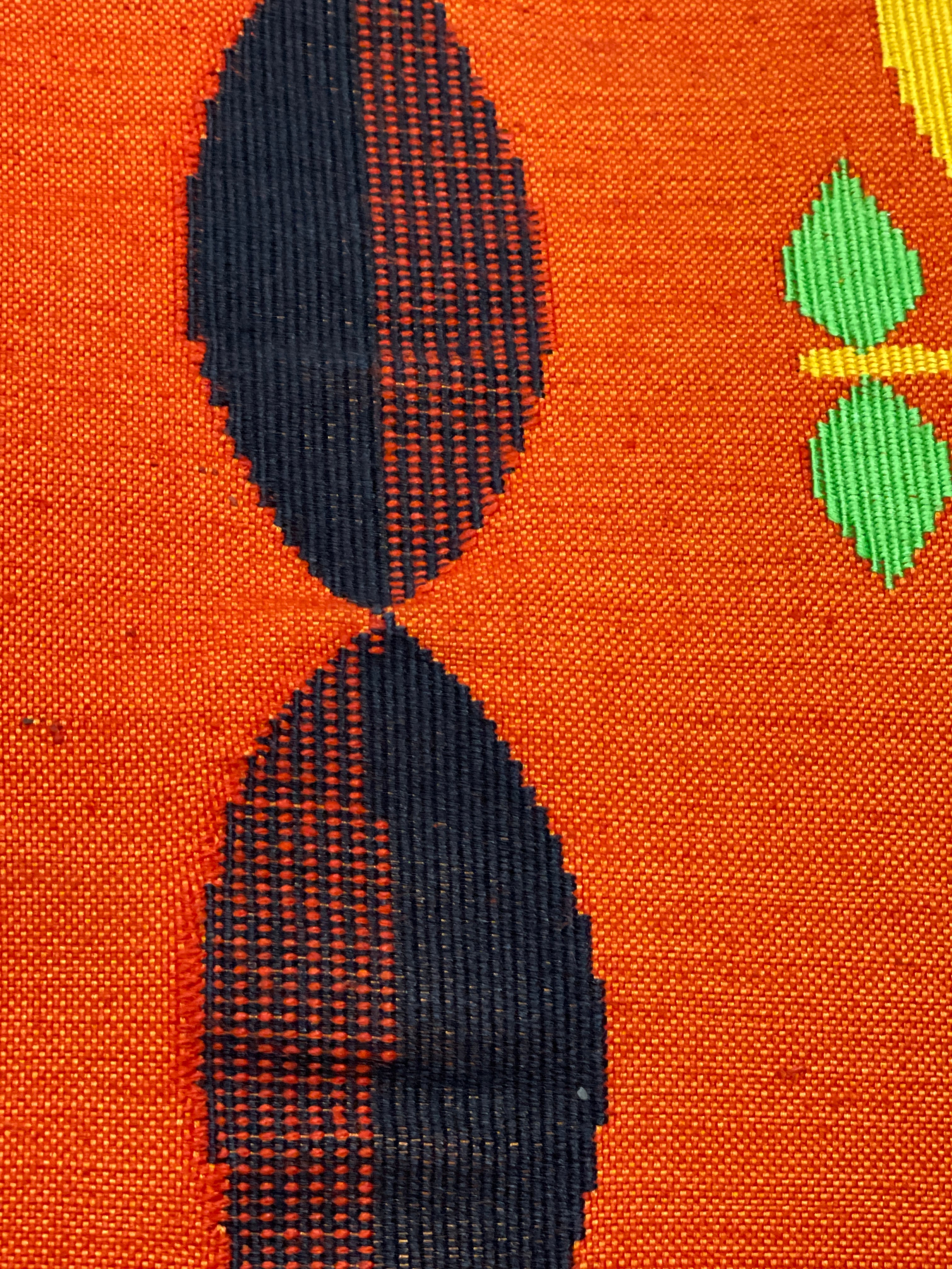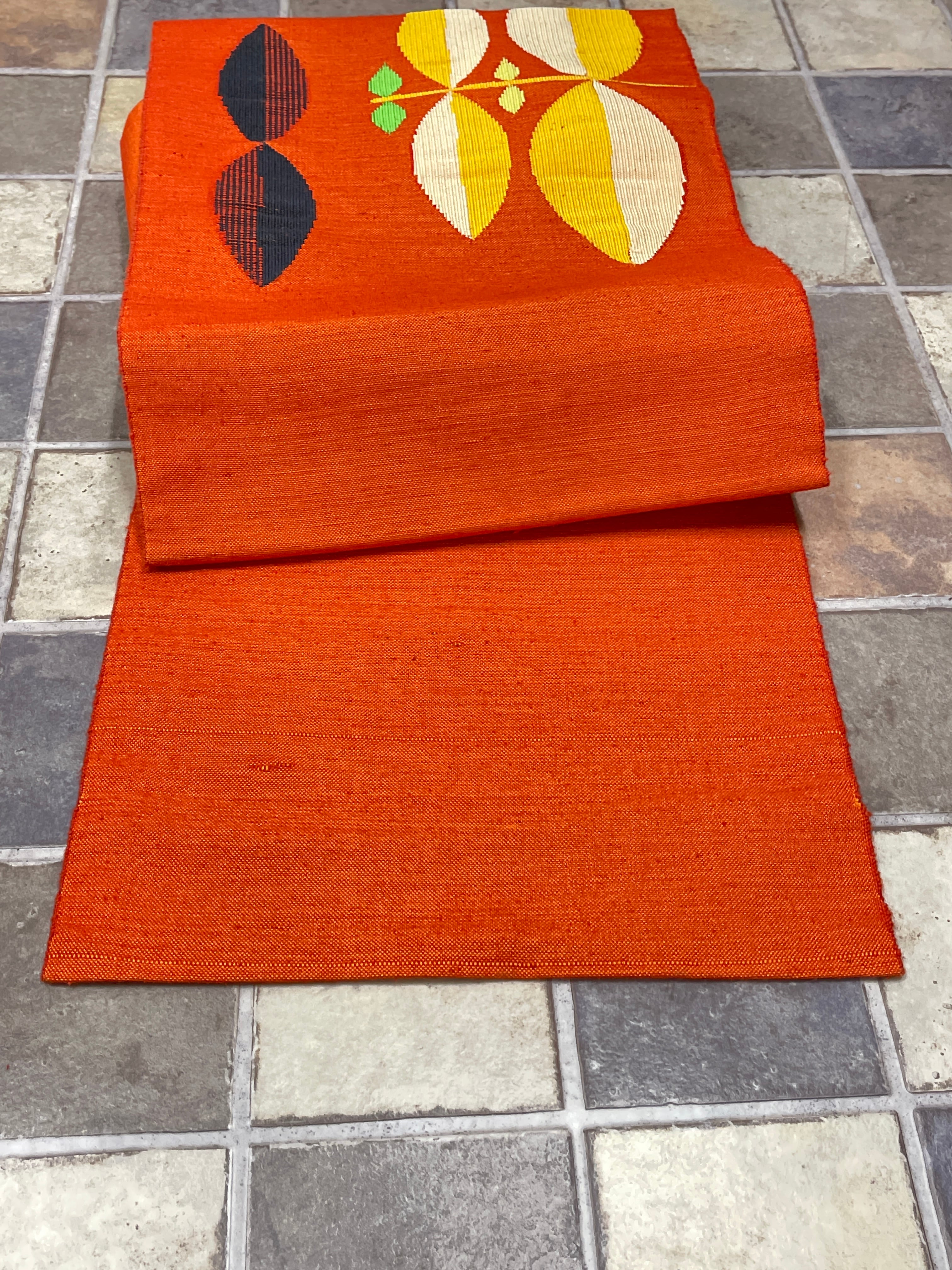 八寸名古屋帯 名古屋帯 真綿紬 オレンジ系 葉っぱ カジュアル 普段着 日常着 お稽古
