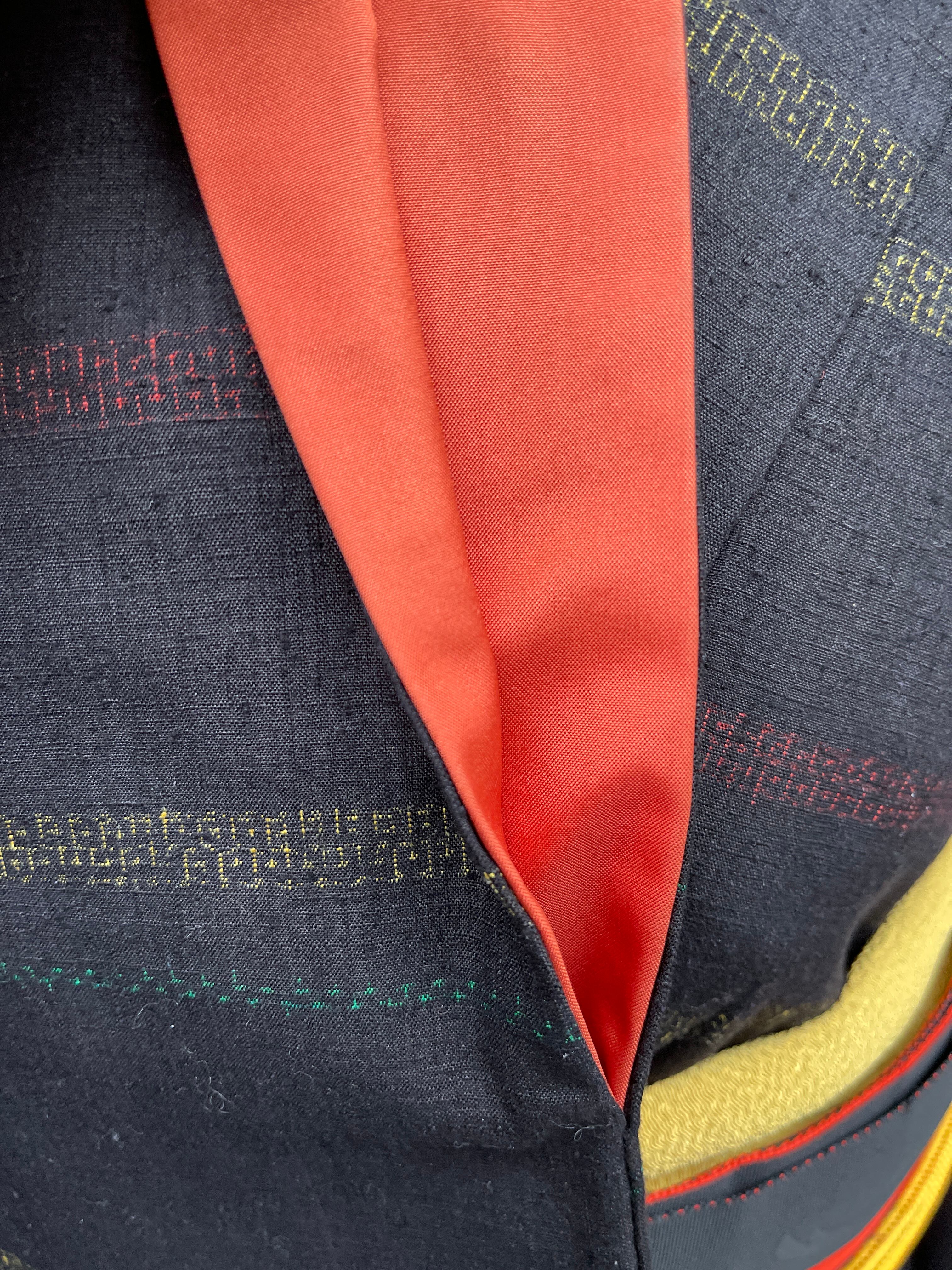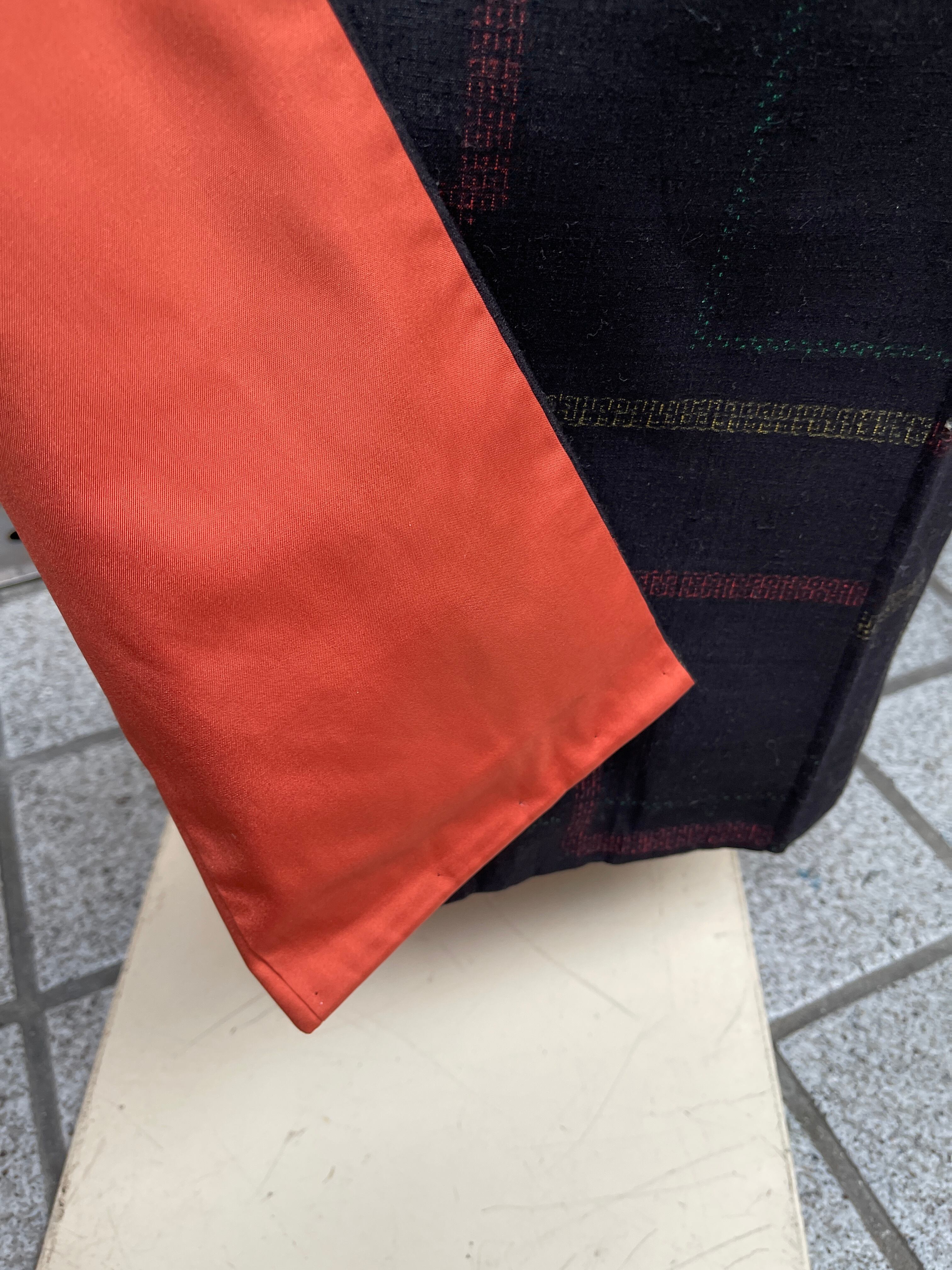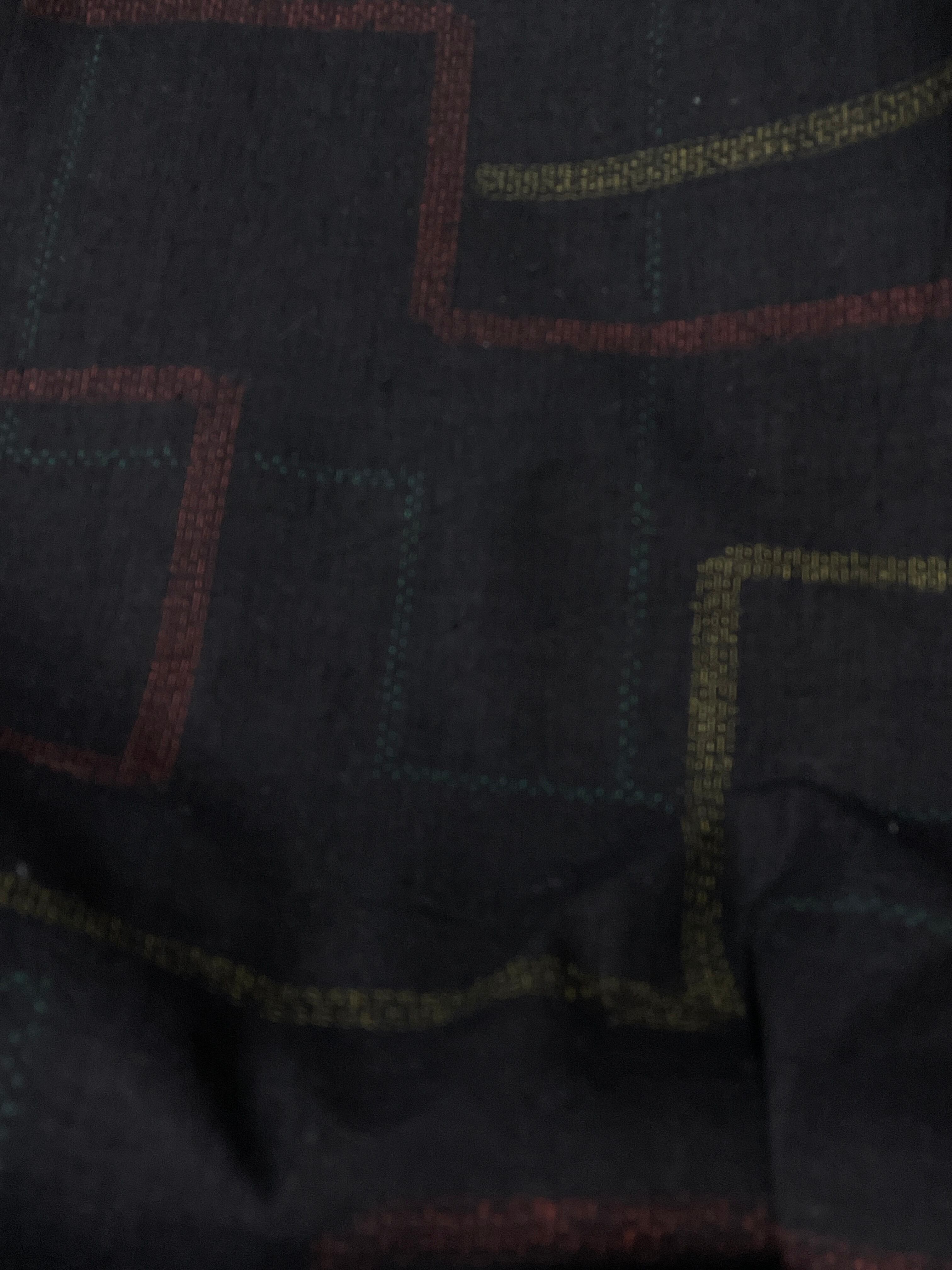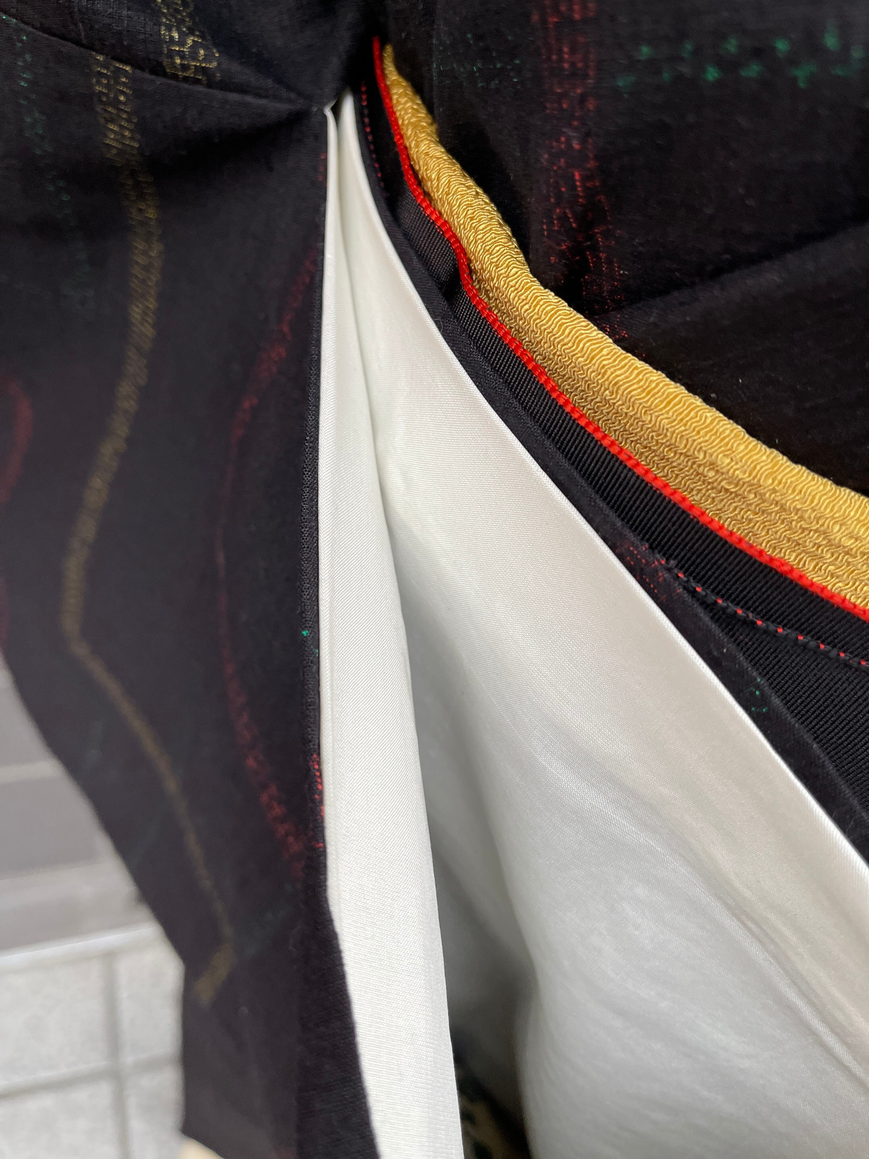 紬 結城紬 証紙あり 黒系 モダン柄 カジュアル 普段着 日常着 お稽古
