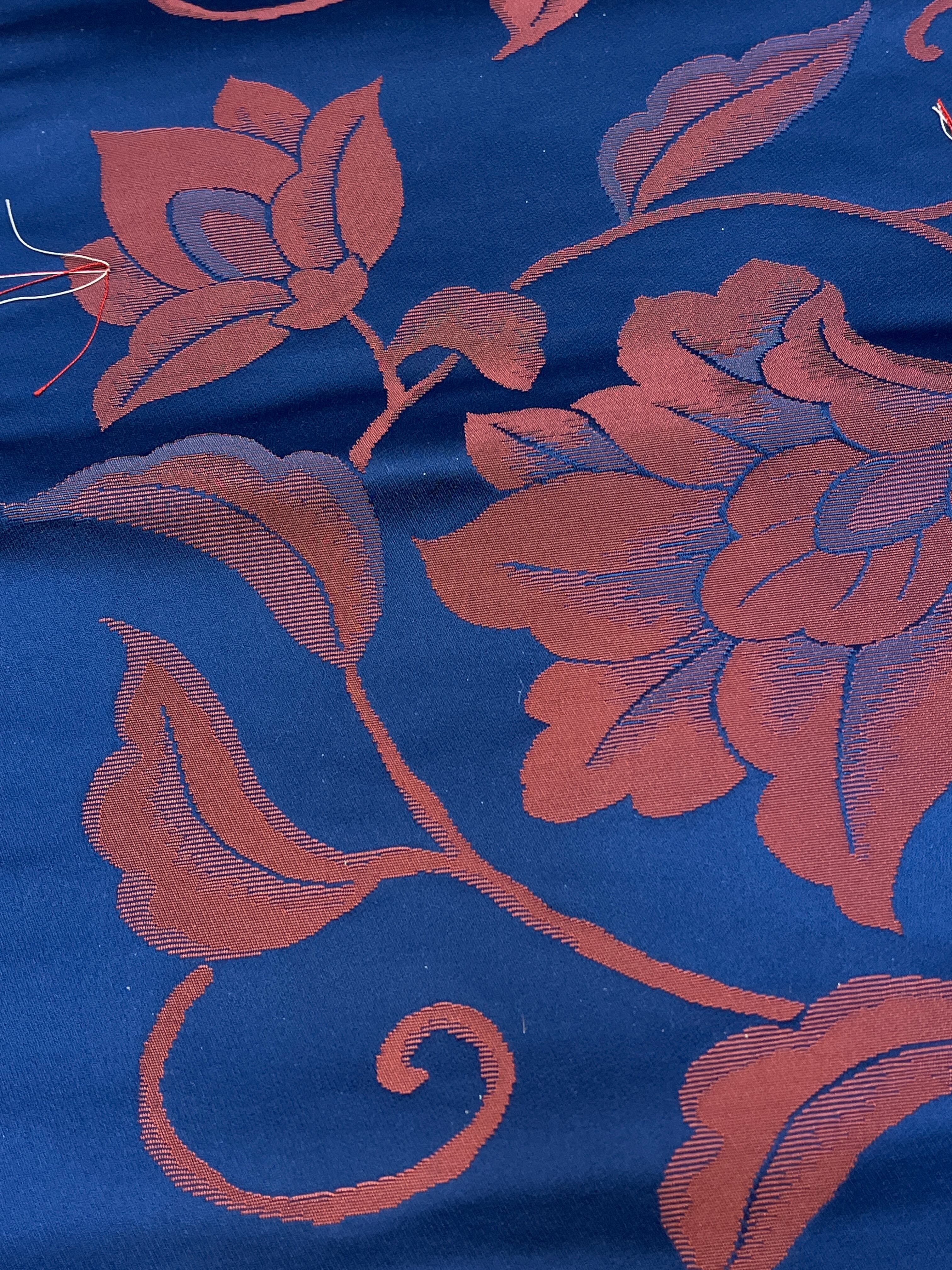 八寸名古屋帯 紺地 赤洋花 カジュアル 普段着 日常着 お稽古