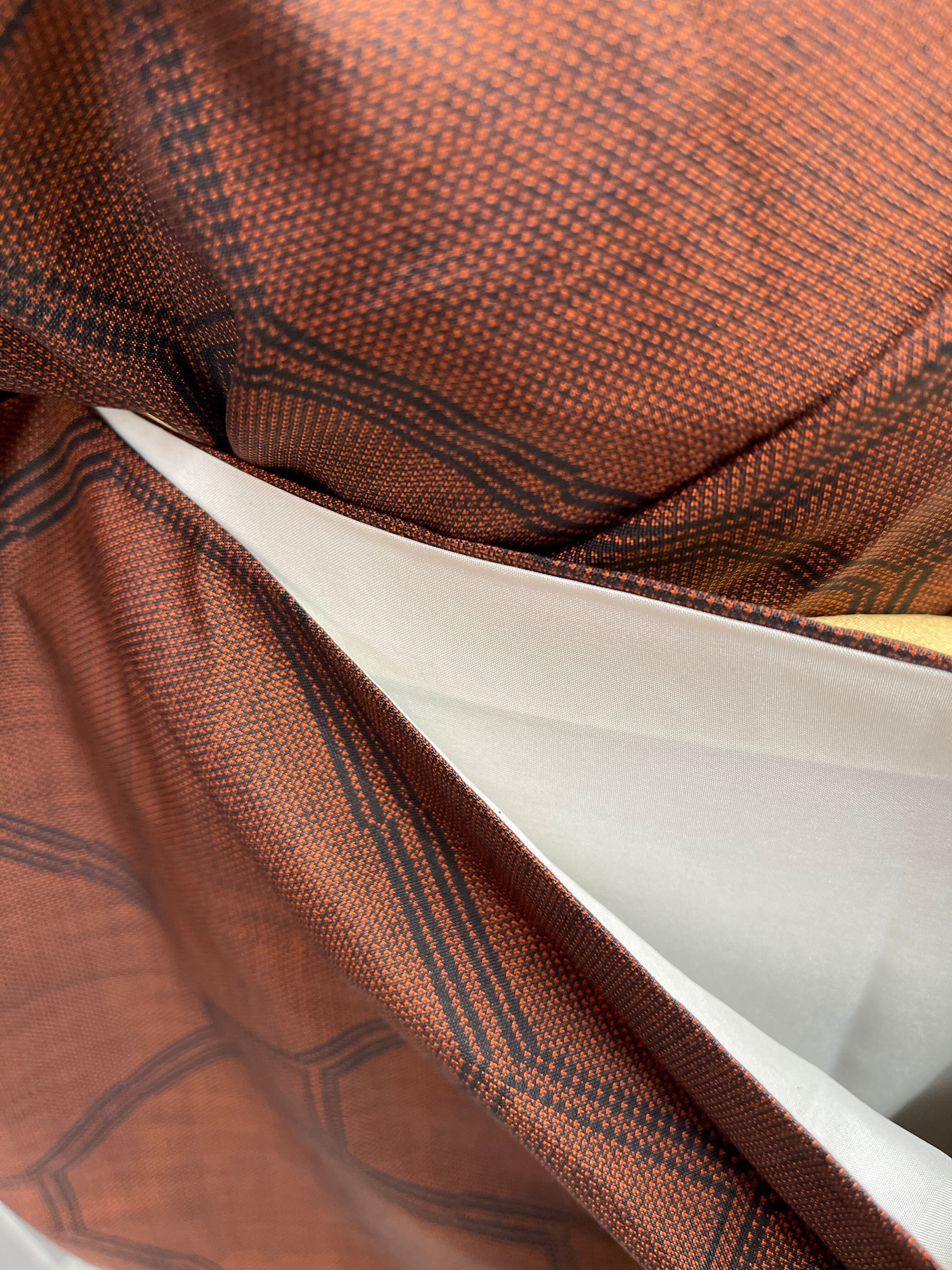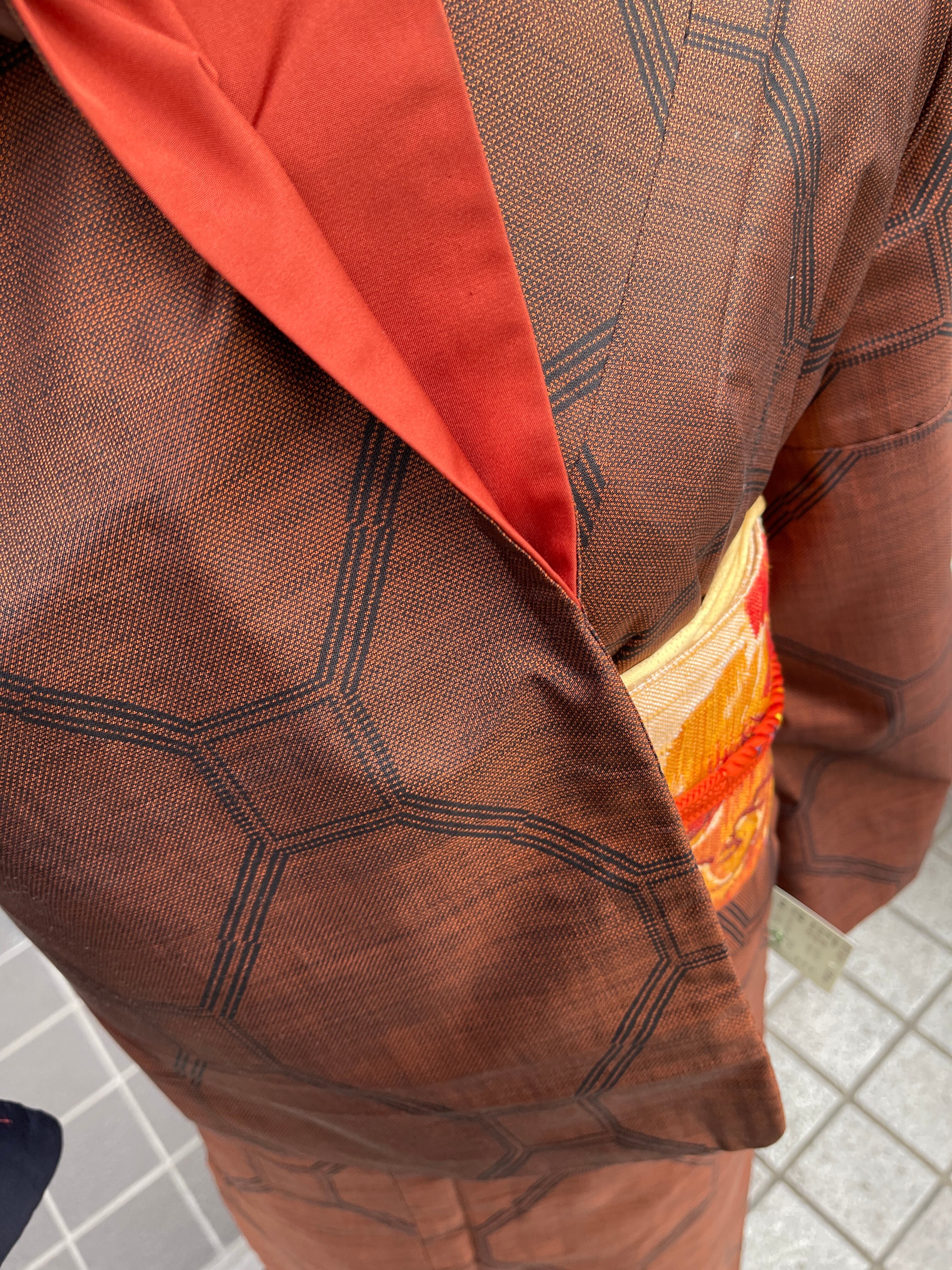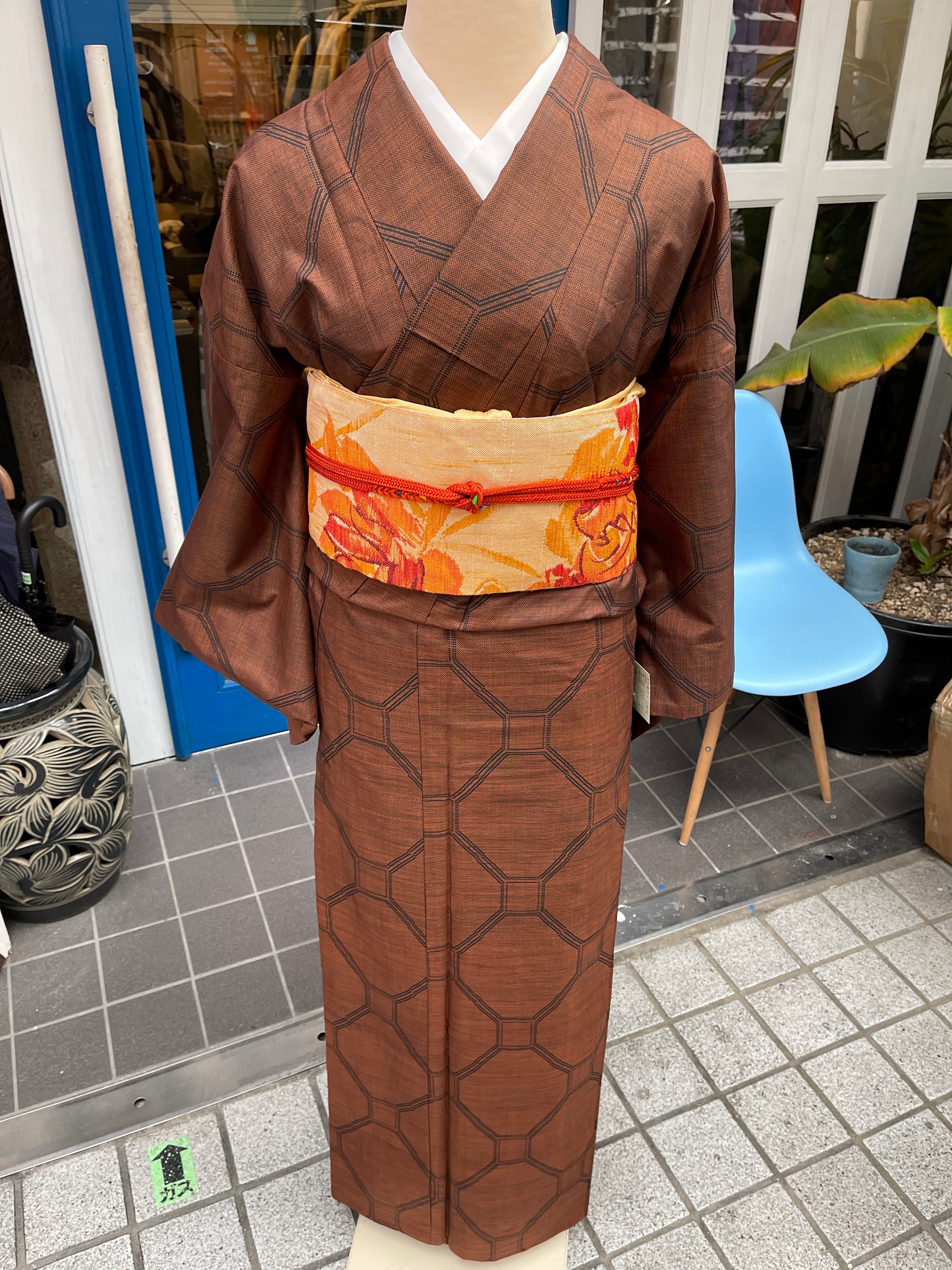 紬 茶系 亀甲 カジュアル 日常着 普段着 お稽古