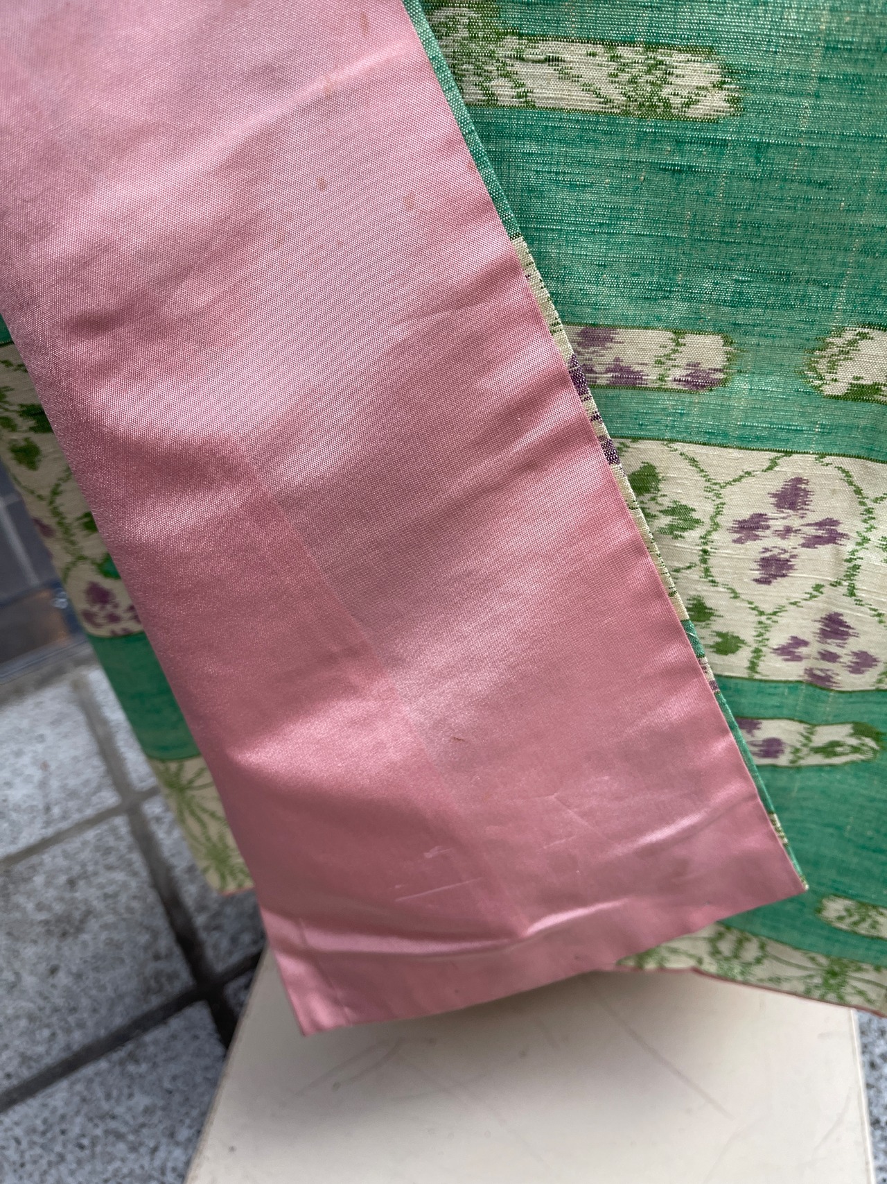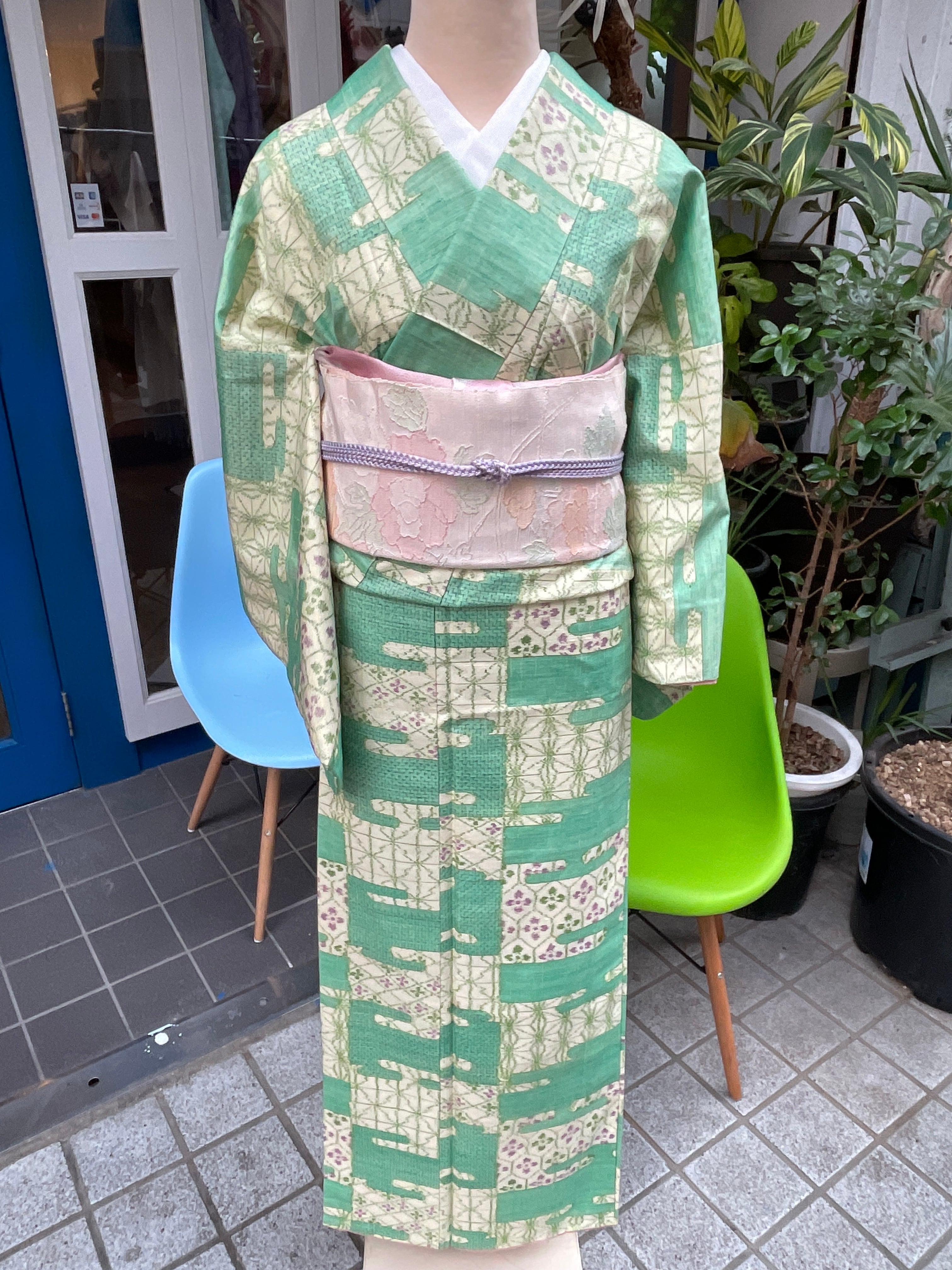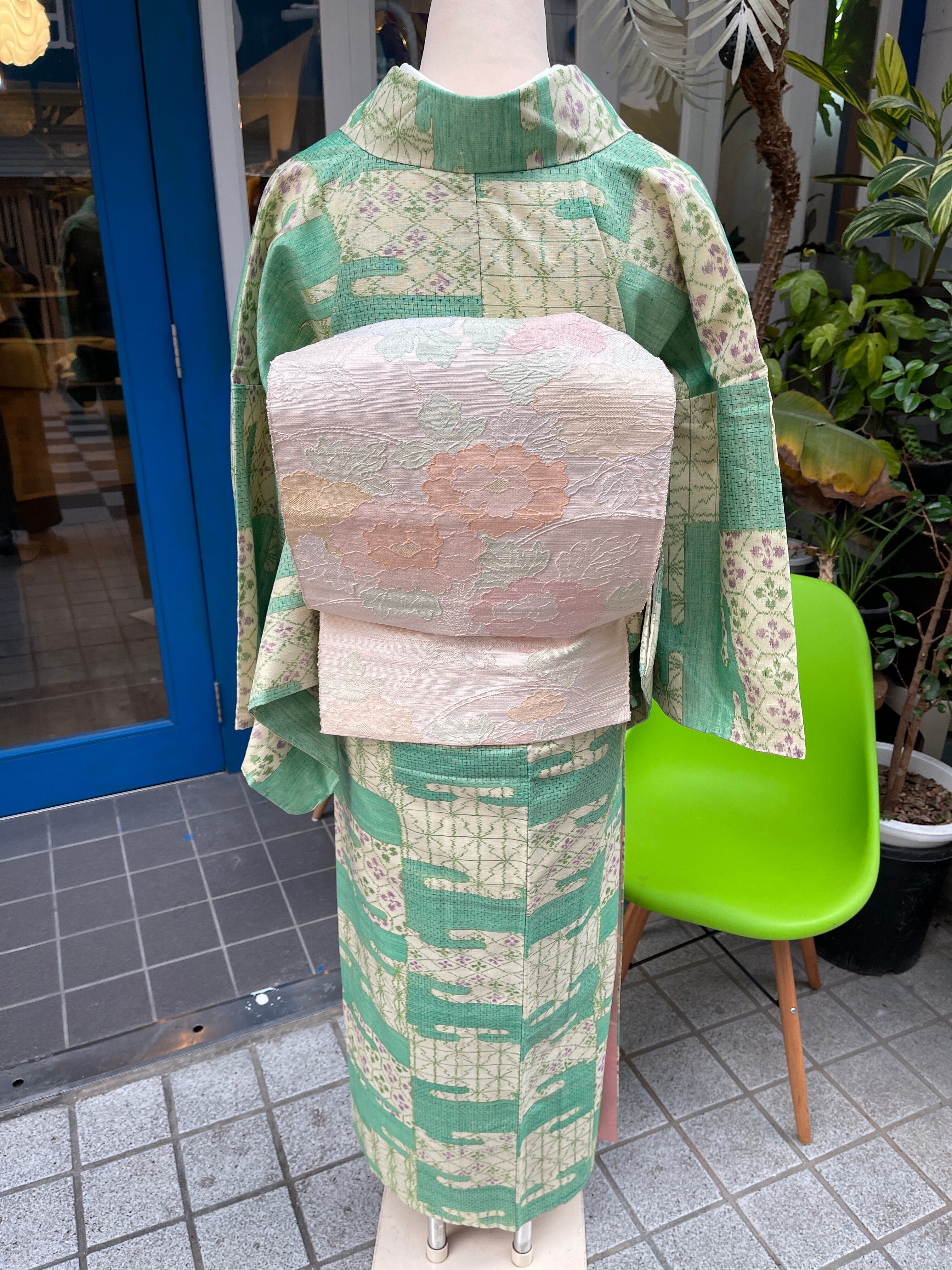 珍しいメロン色のお着物