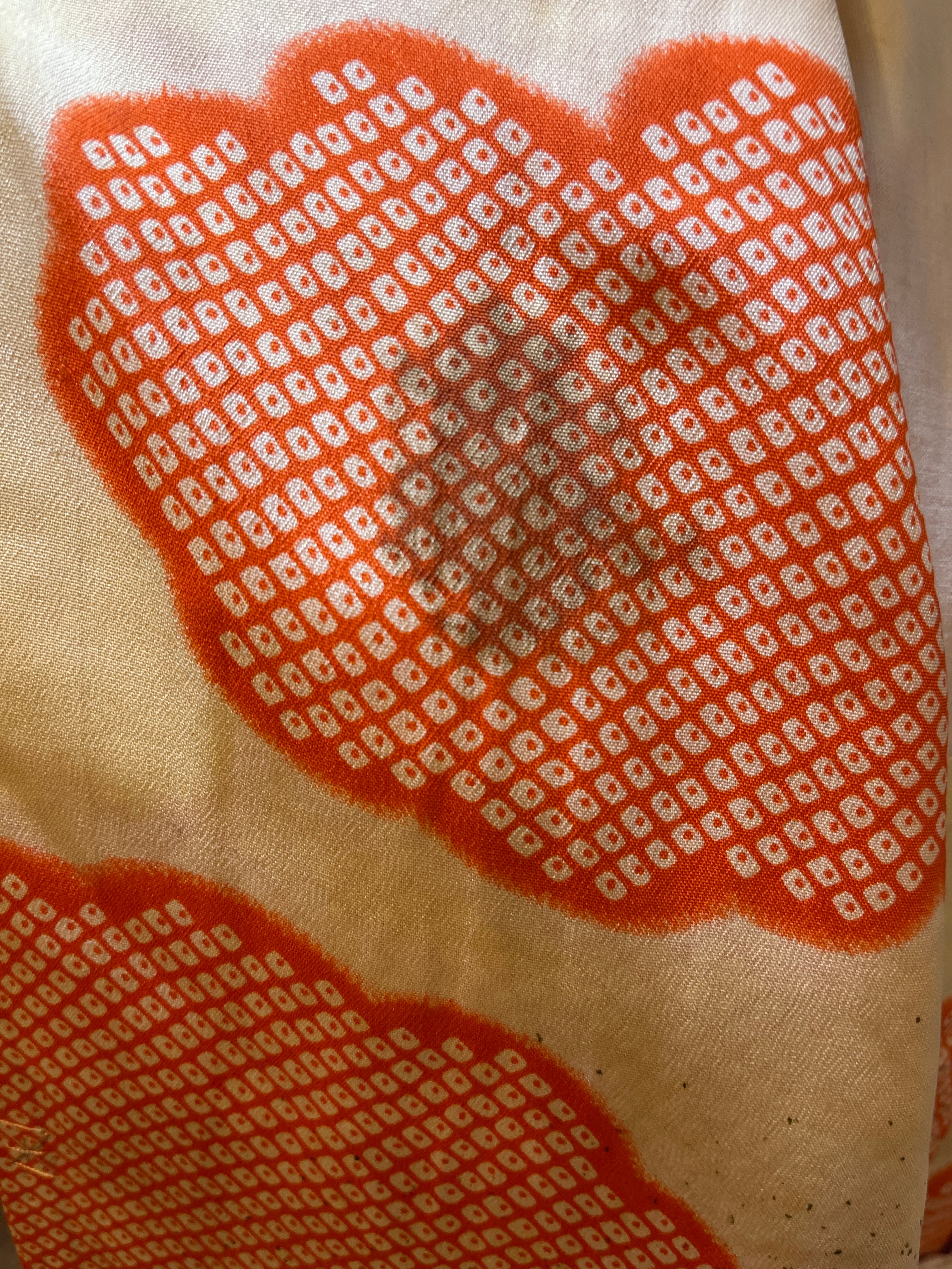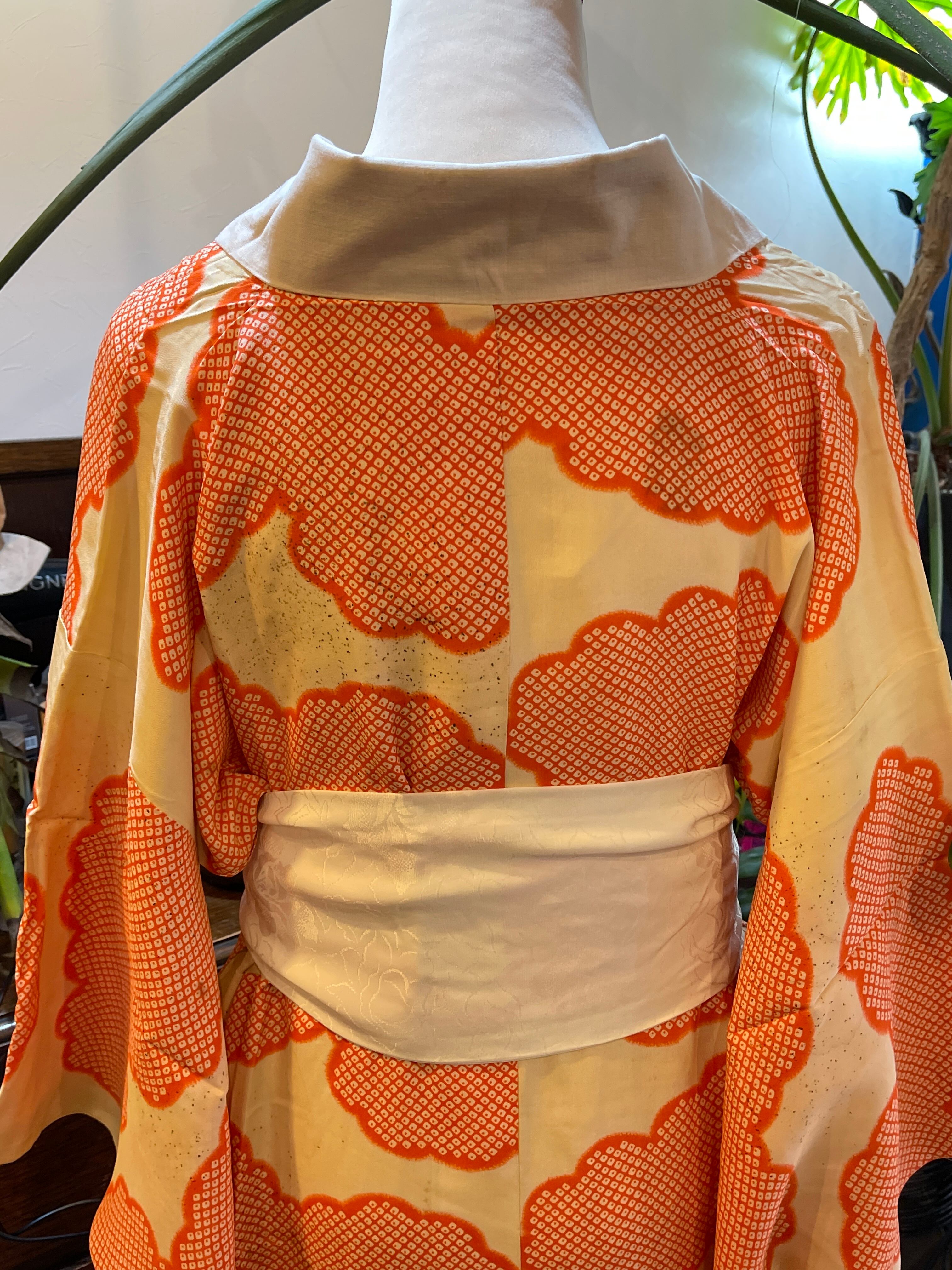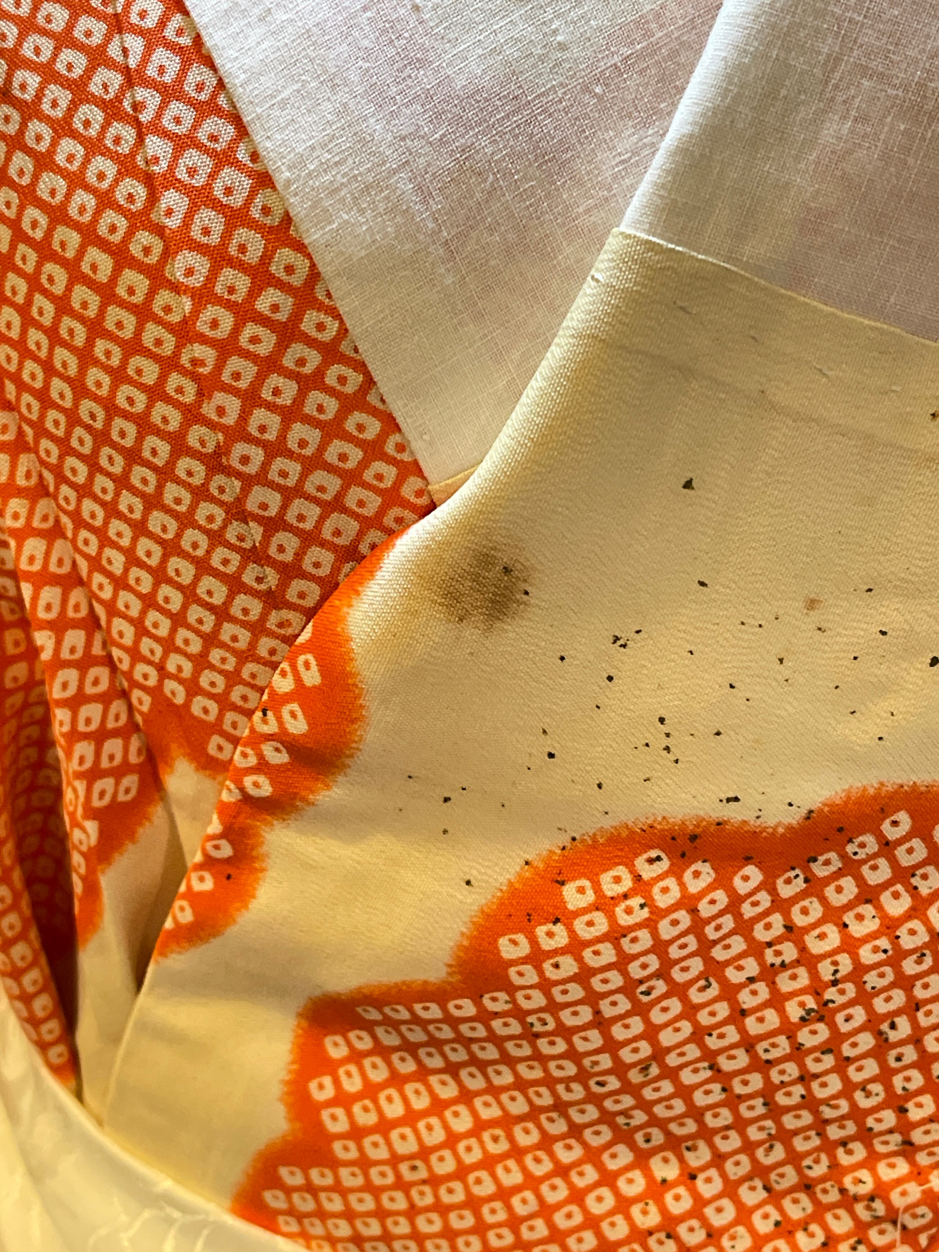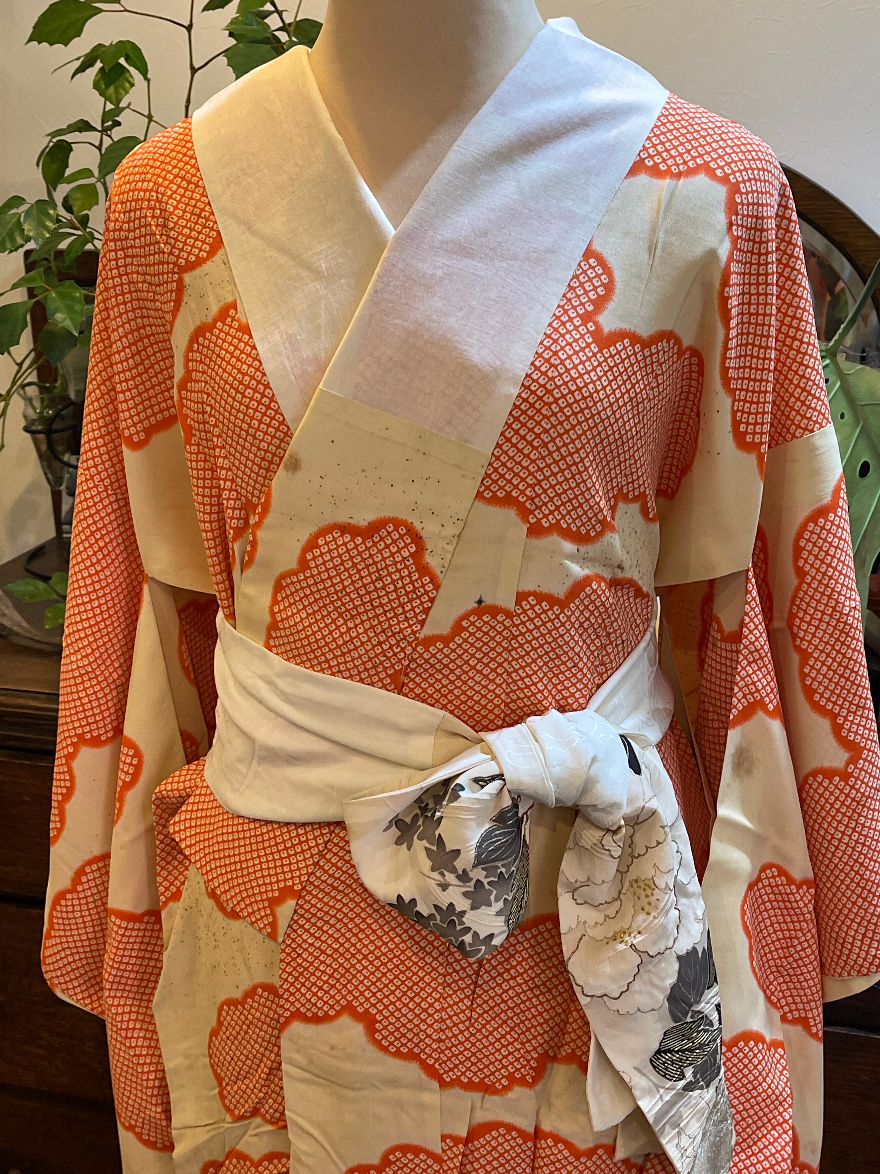 長襦袢 アンティーク長襦袢 オレンジ 鹿の子 雲 金チラシ 広衿 部屋着 ガウン