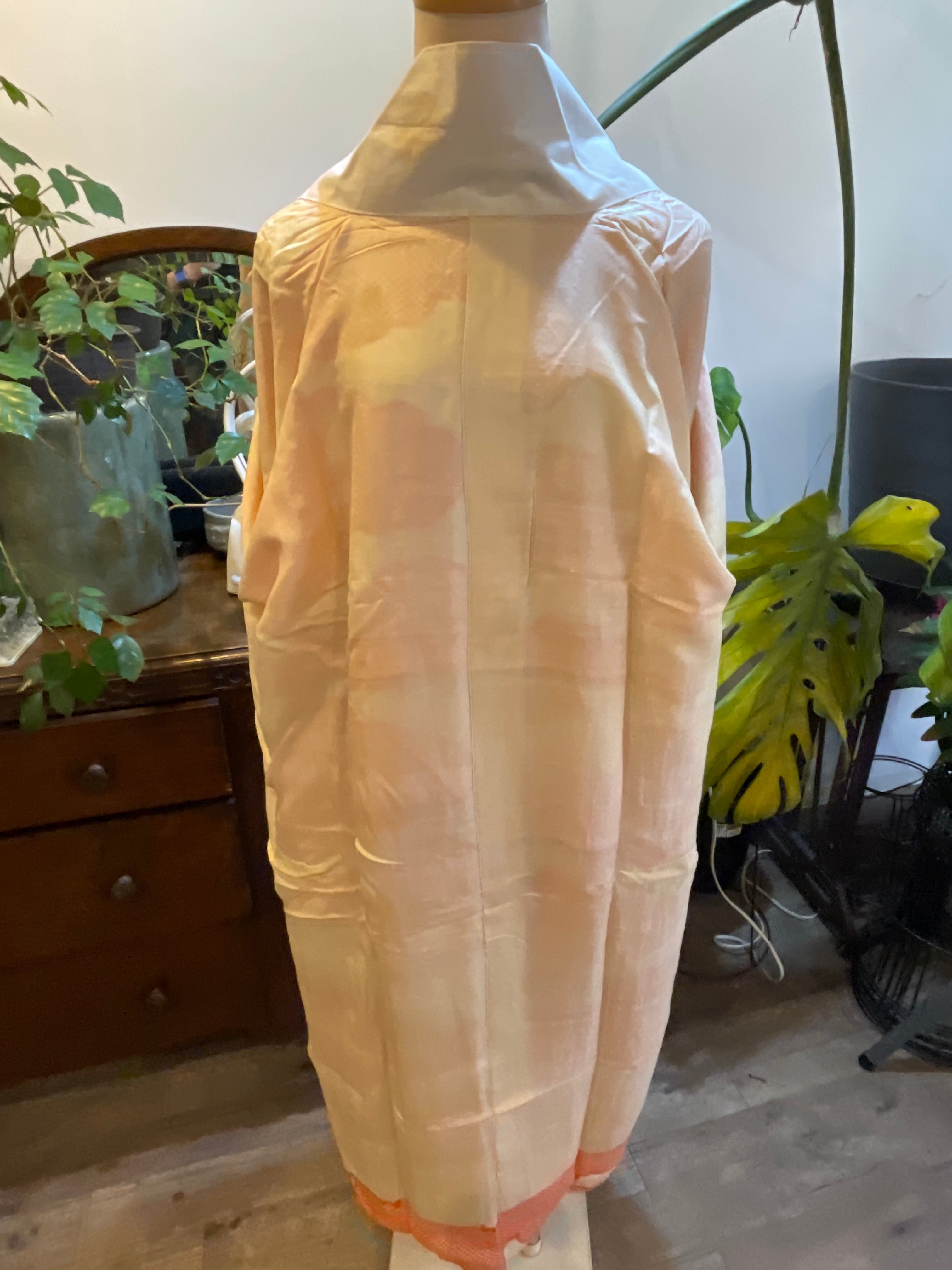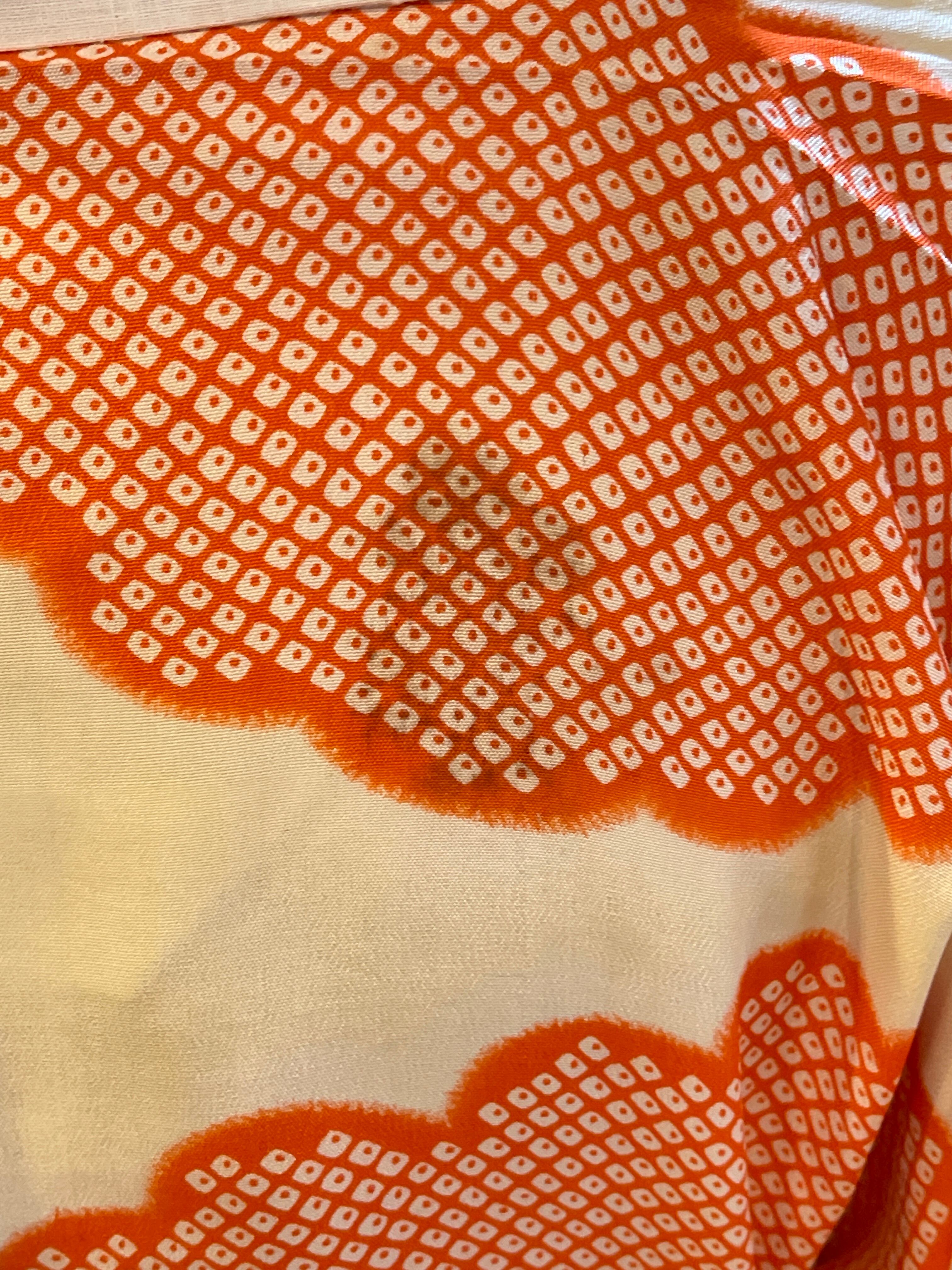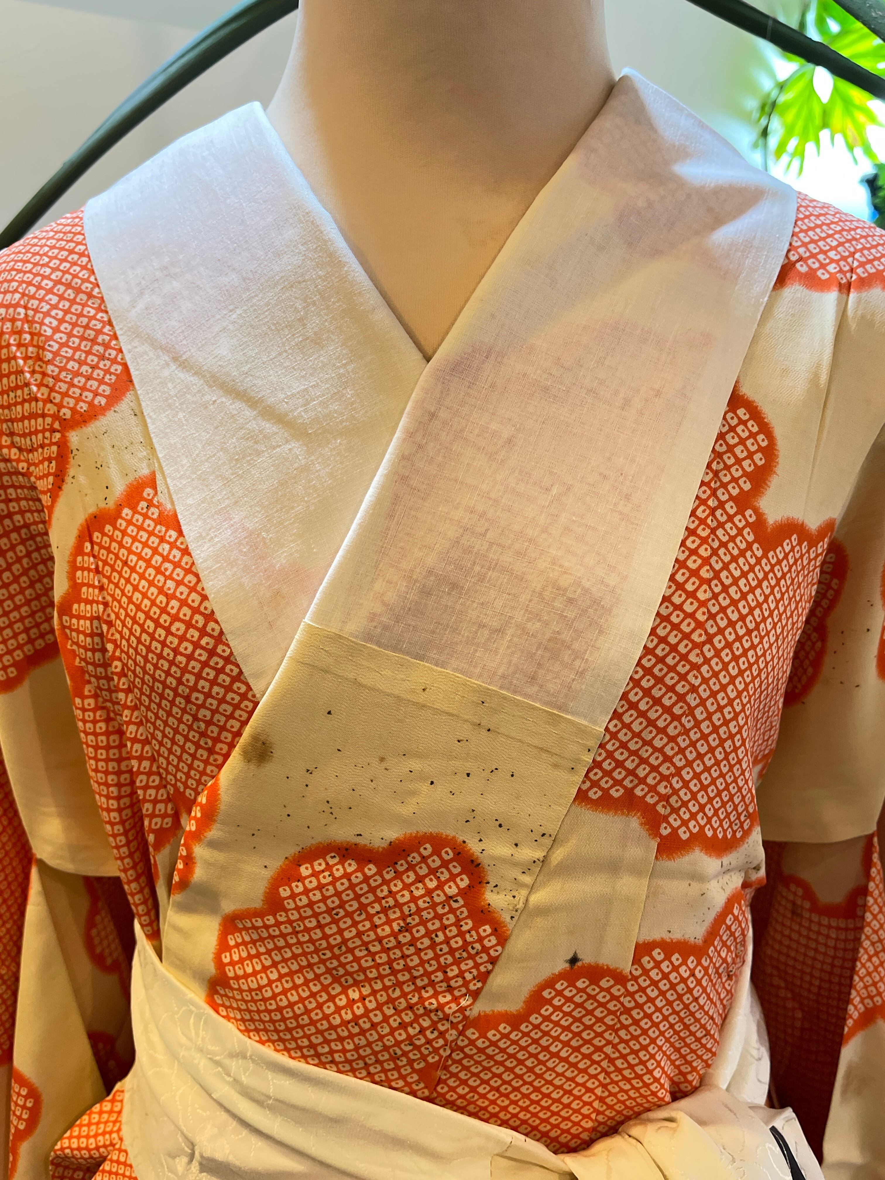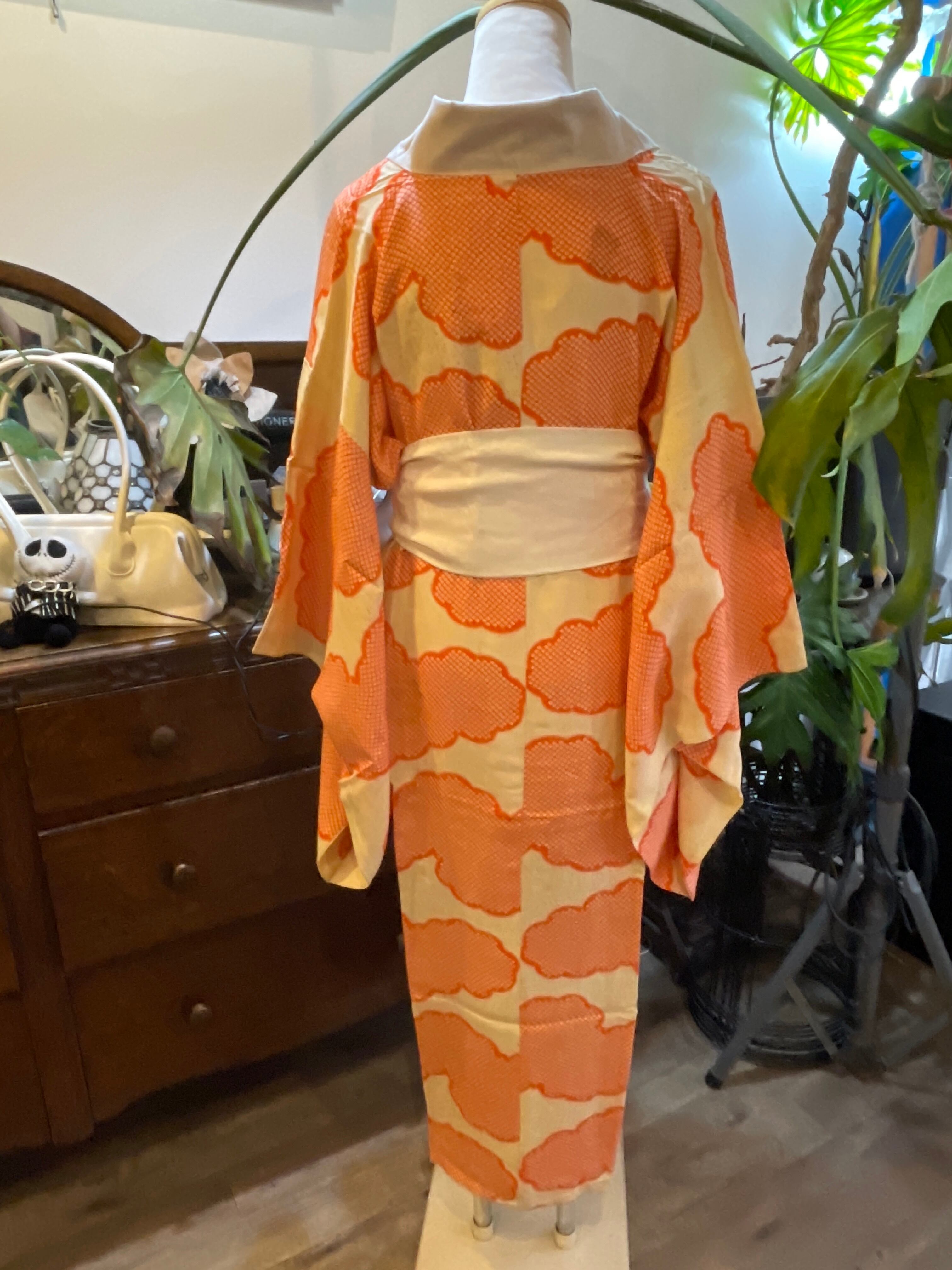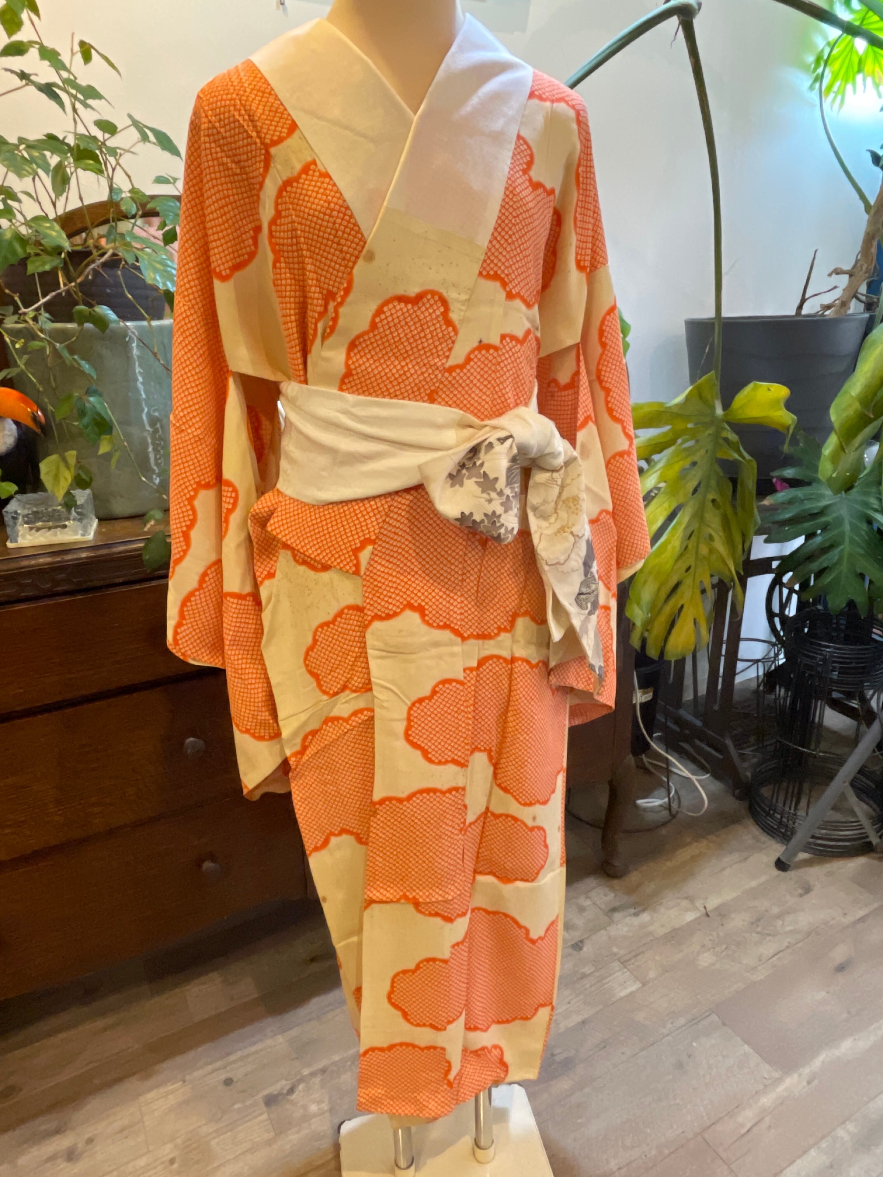 長襦袢 アンティーク長襦袢 オレンジ 鹿の子 雲 金チラシ 広衿 部屋着 ガウン