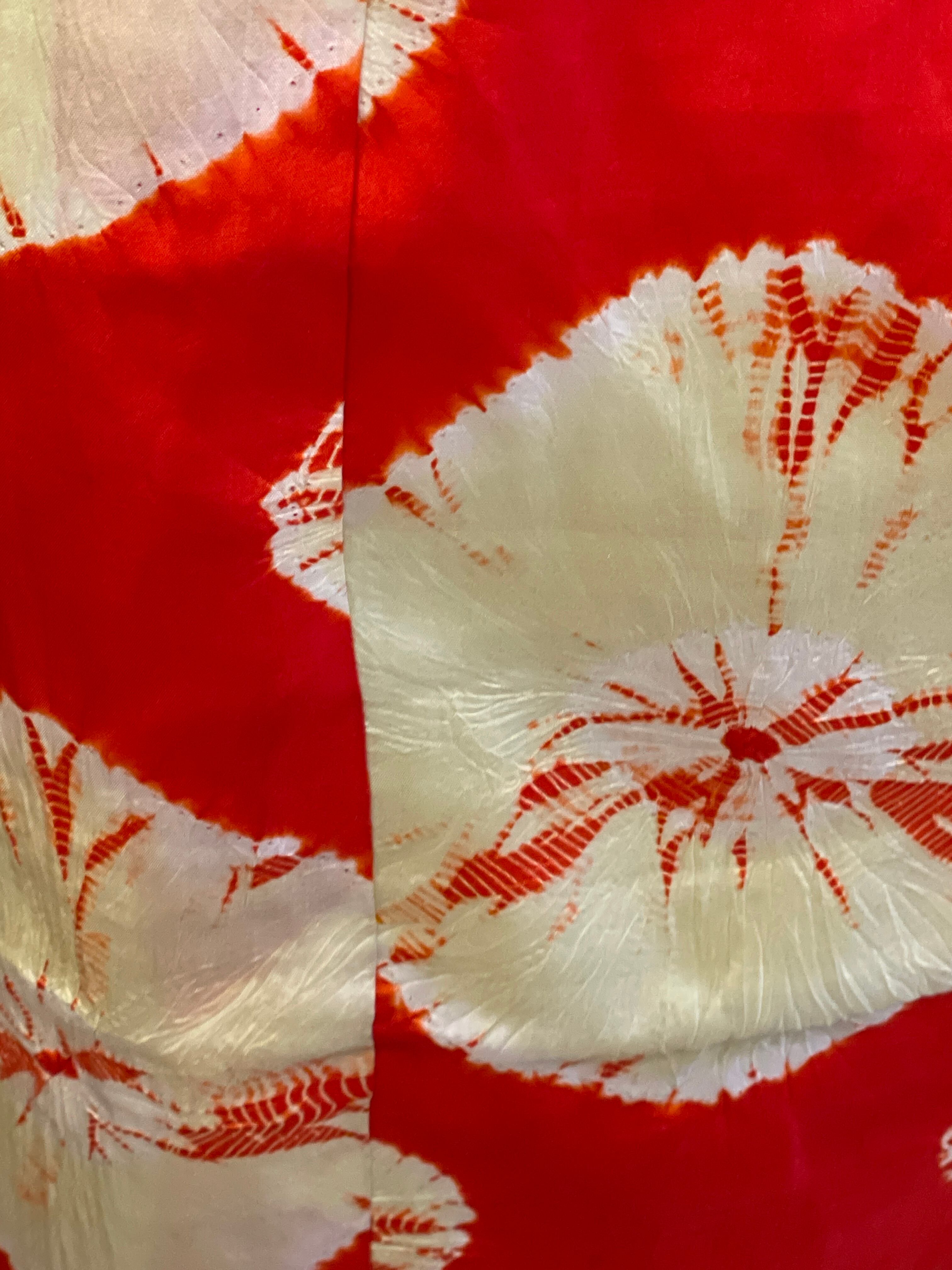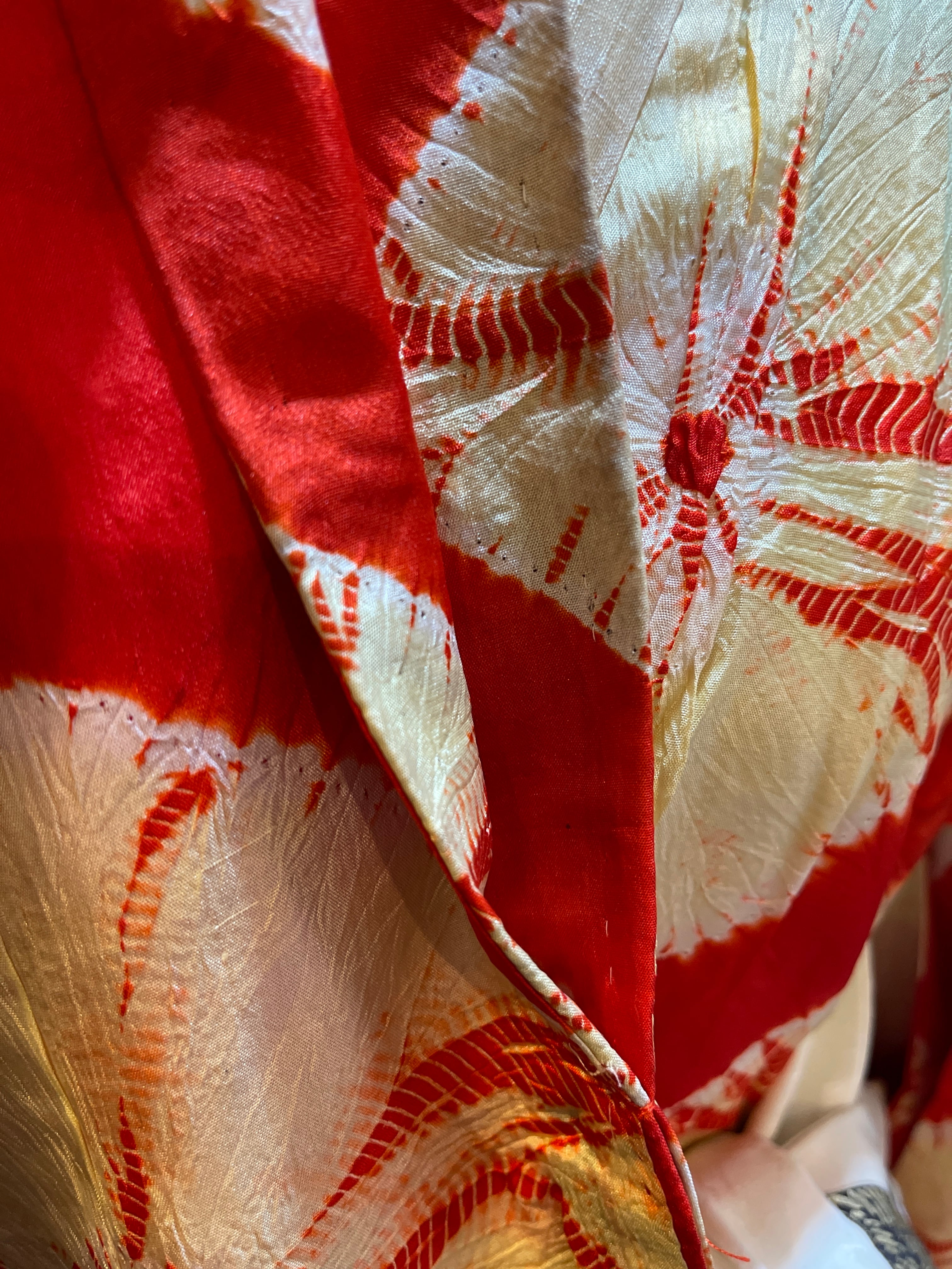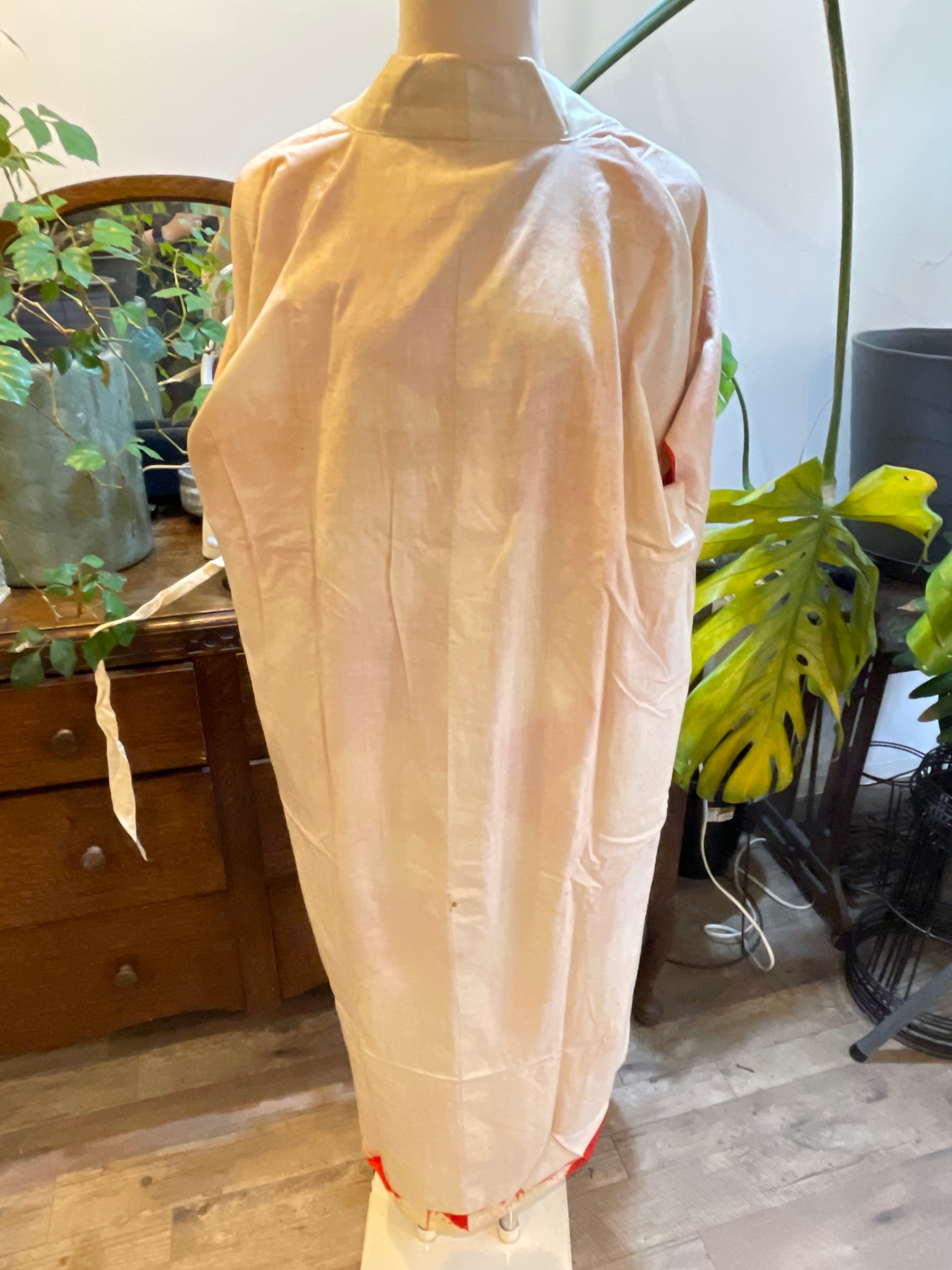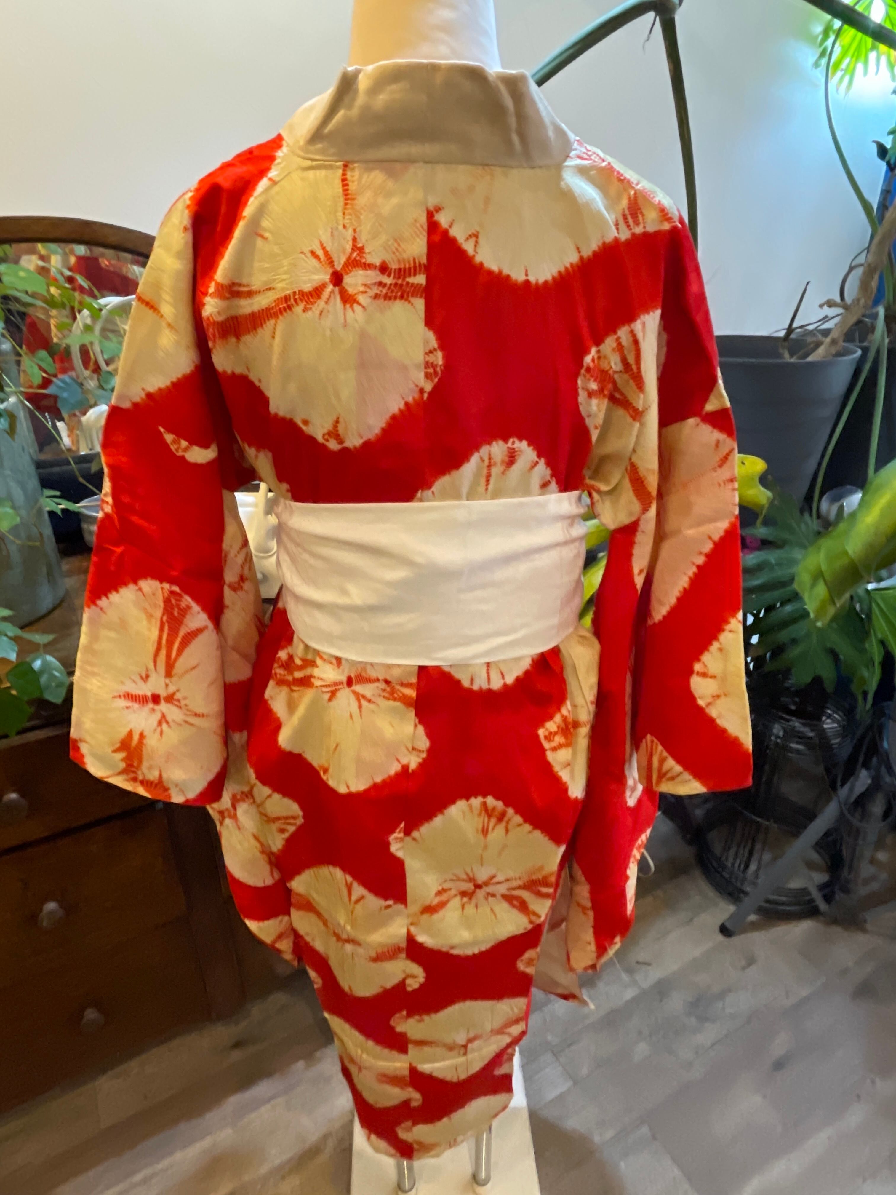 長襦袢 アンティーク長襦袢 朱赤 絞り柄 袷仕立て 部屋着 ガウン