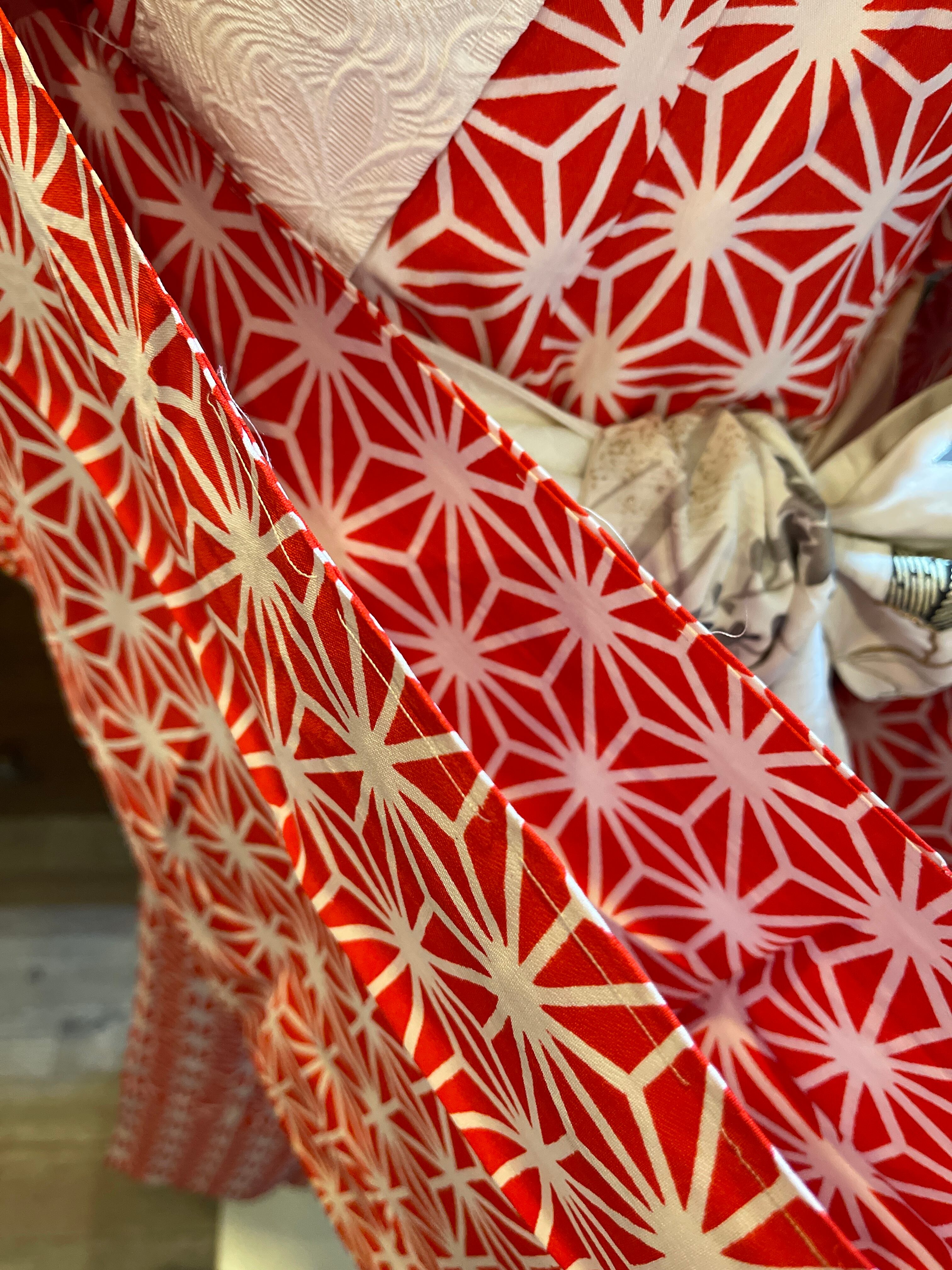 長襦袢 アンティーク長襦袢 赤系 麻の葉 袷仕立て 部屋着 ガウン