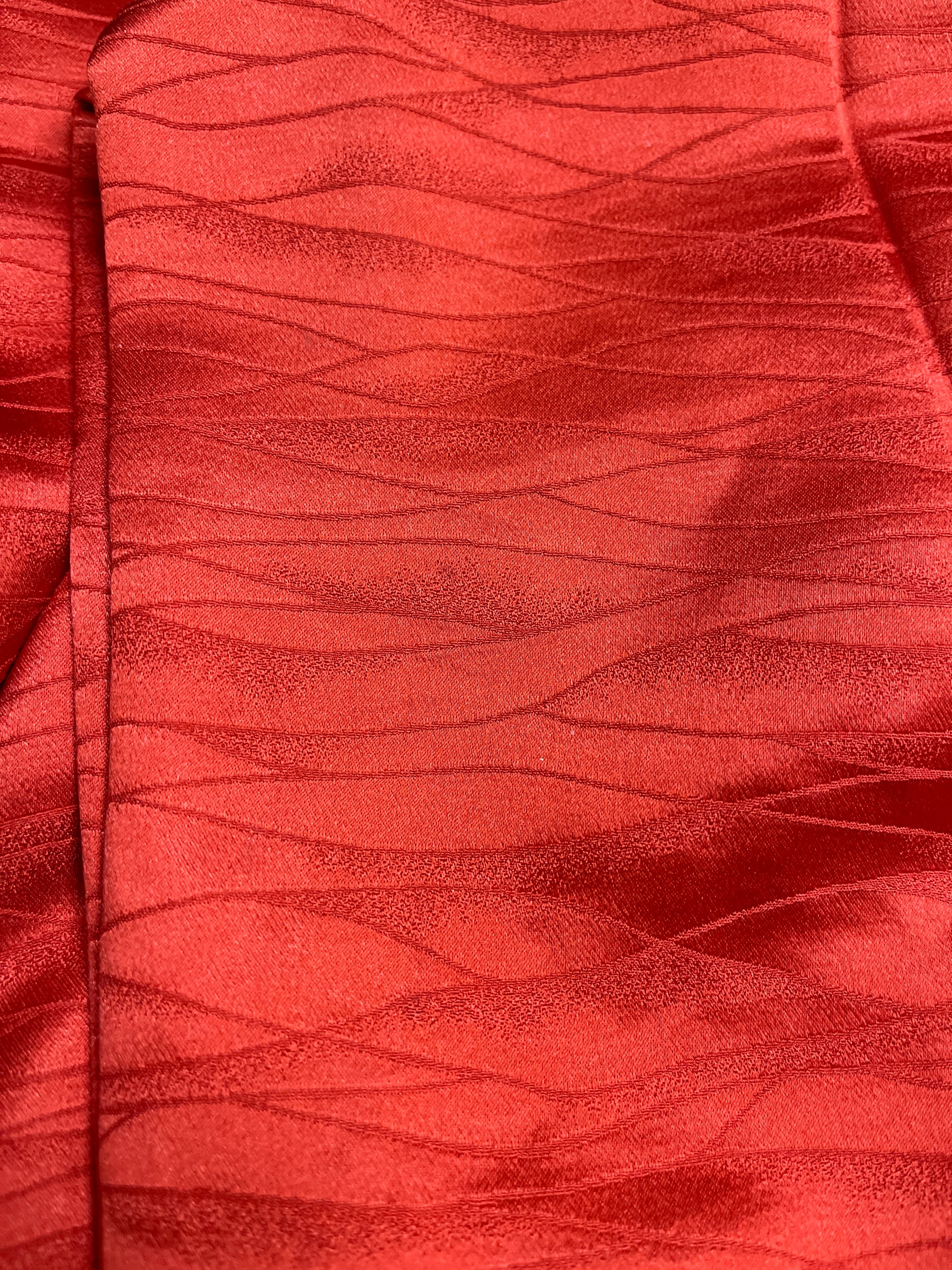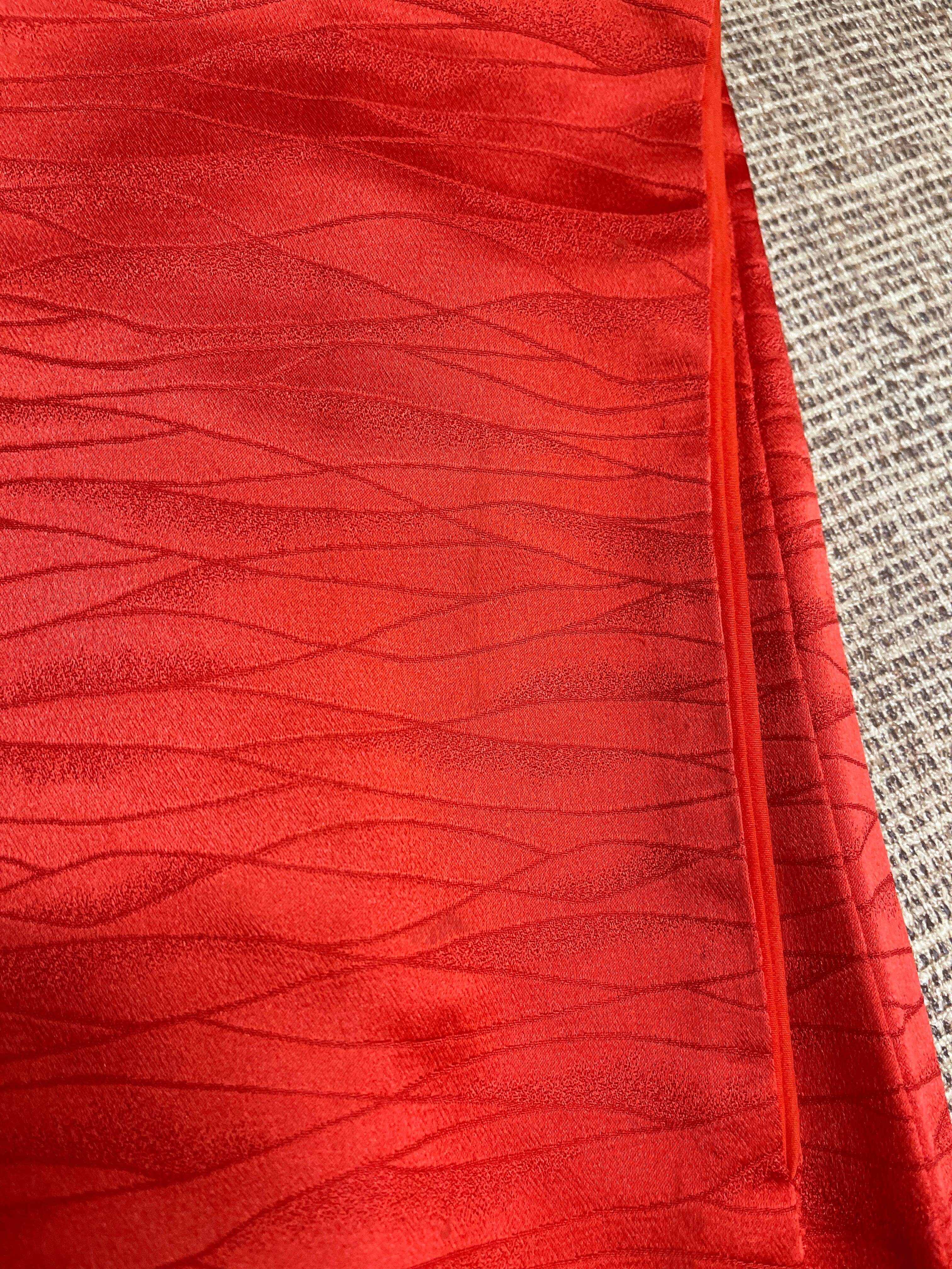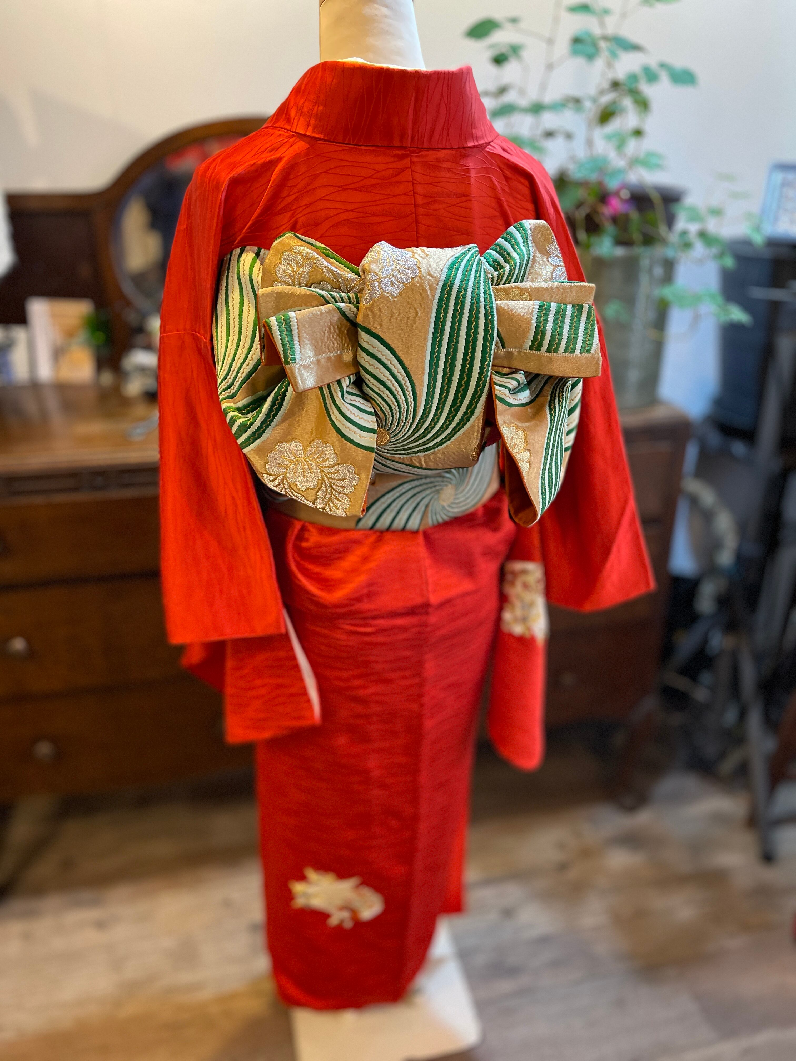 アンティーク着物 つけ下げ訪問着 綸子 赤系 朱赤 蘇州刺繍 フォーマル