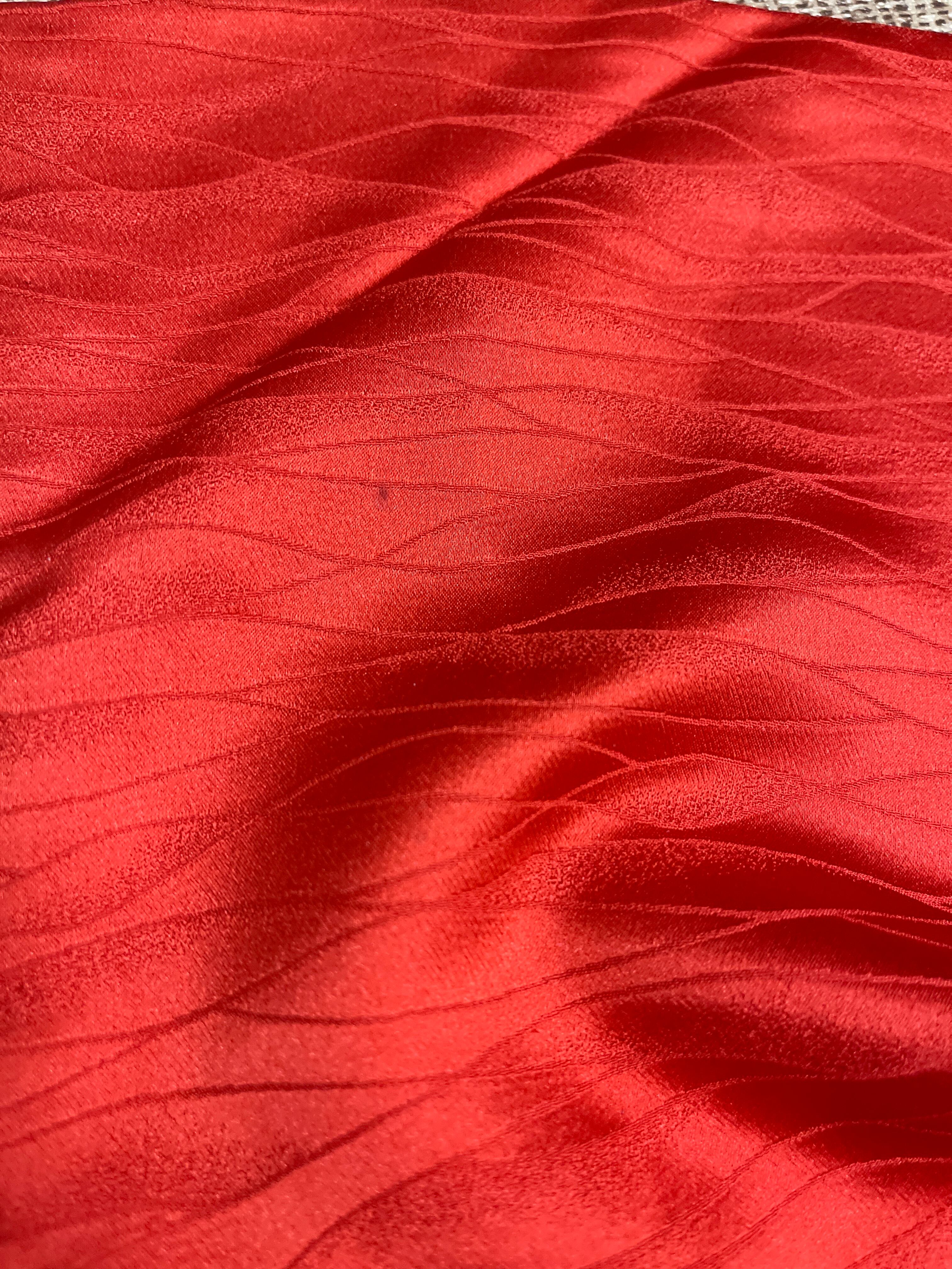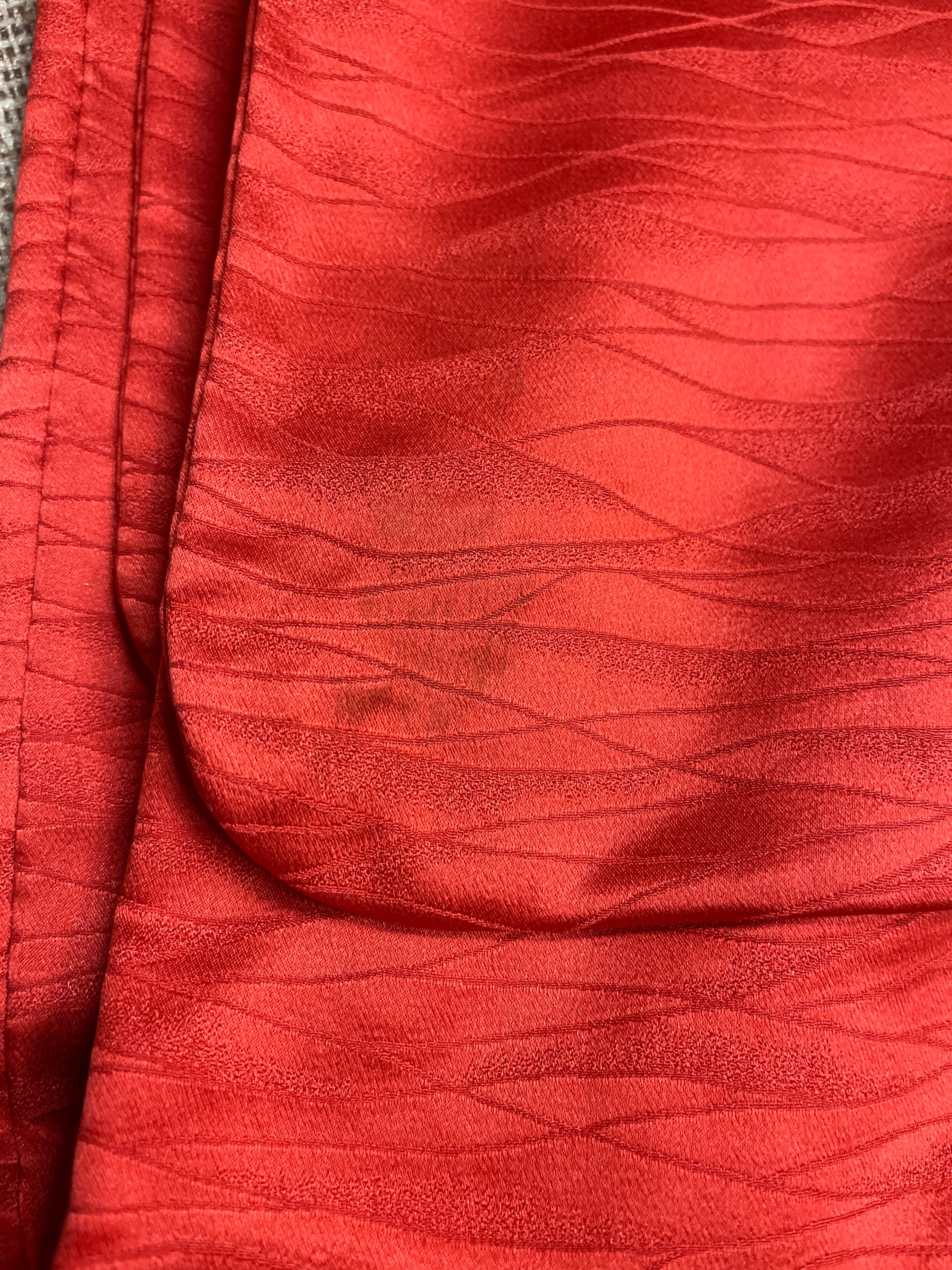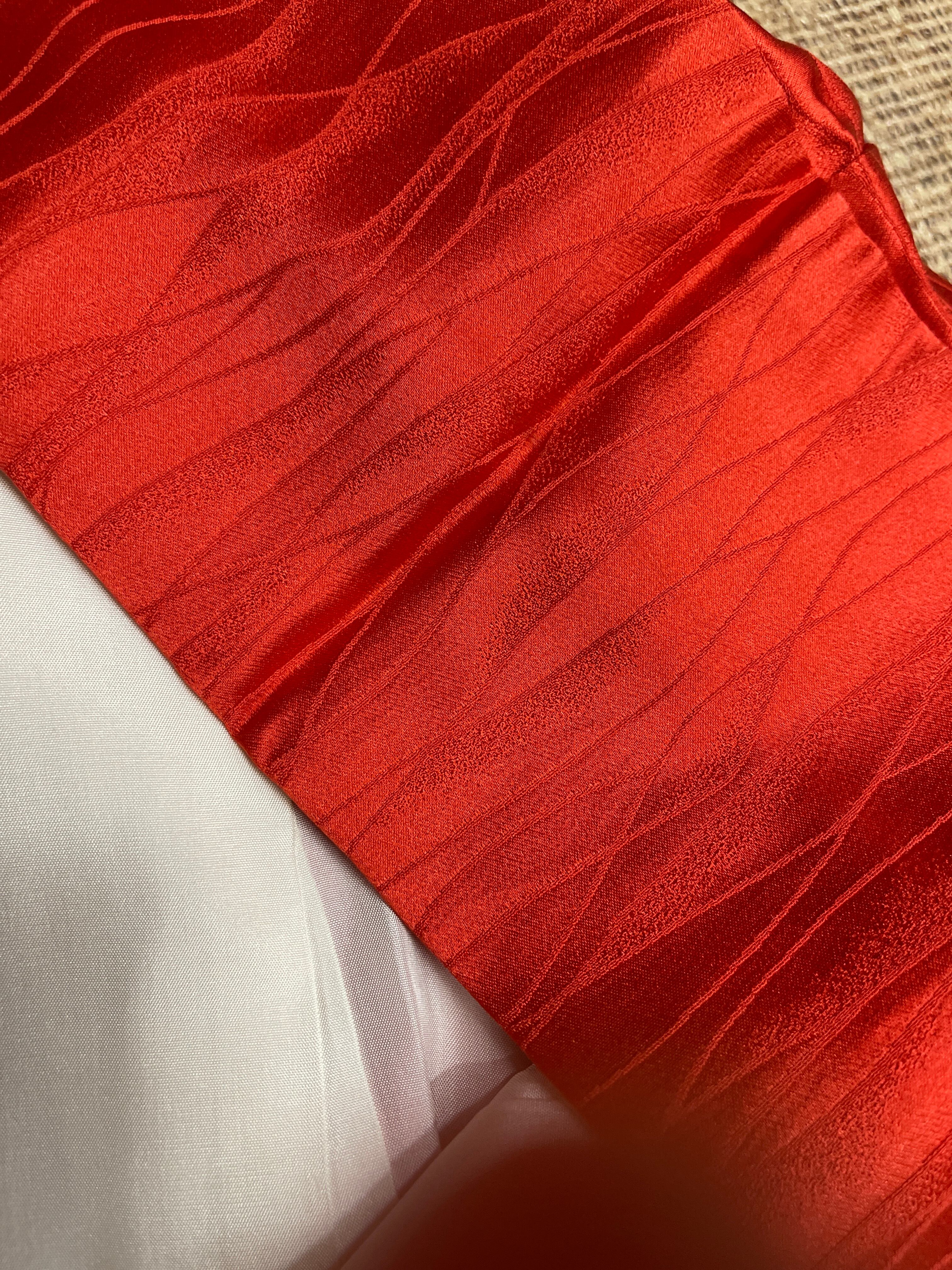 アンティーク着物 つけ下げ訪問着 綸子 赤系 朱赤 蘇州刺繍 フォーマル