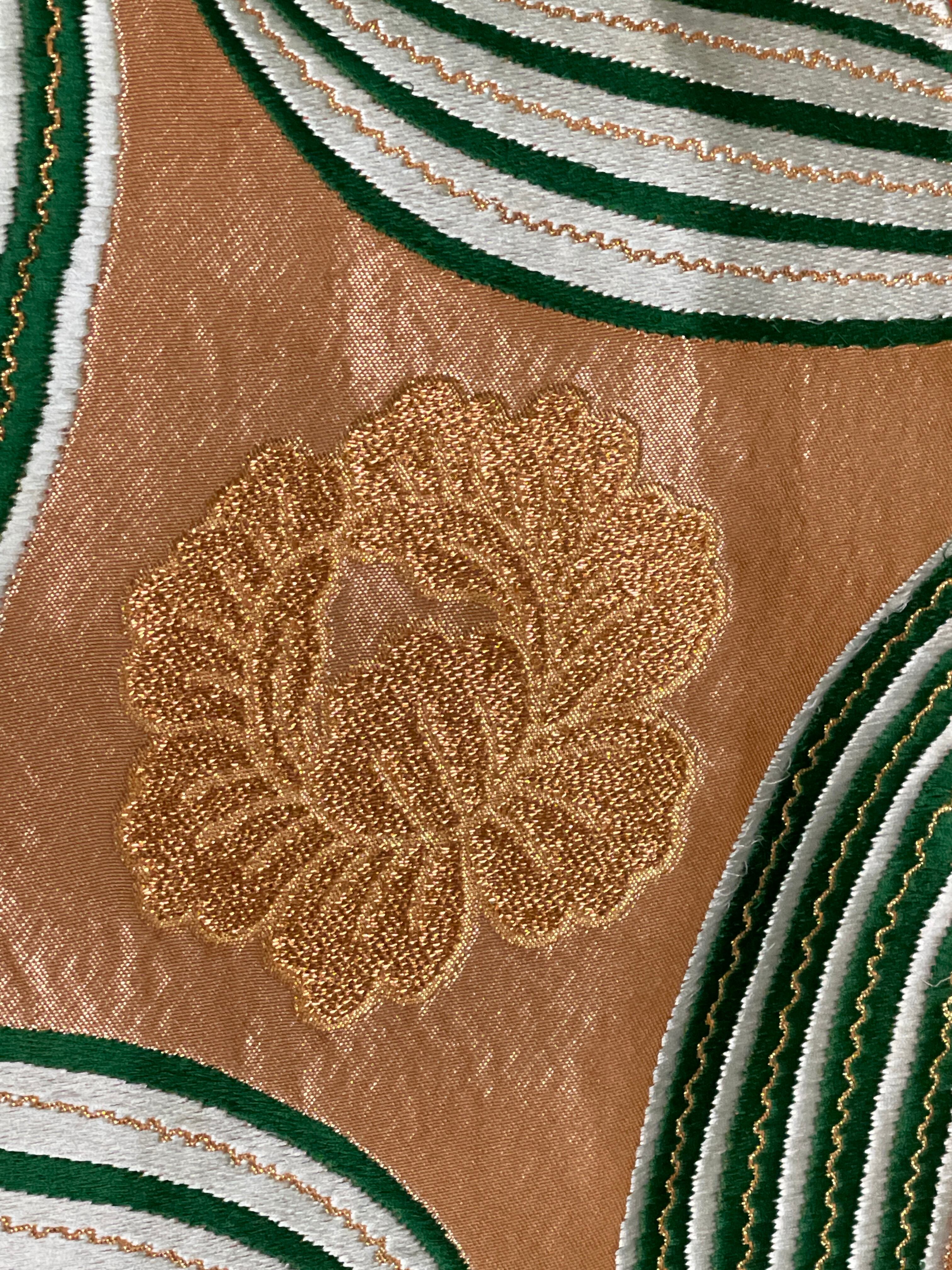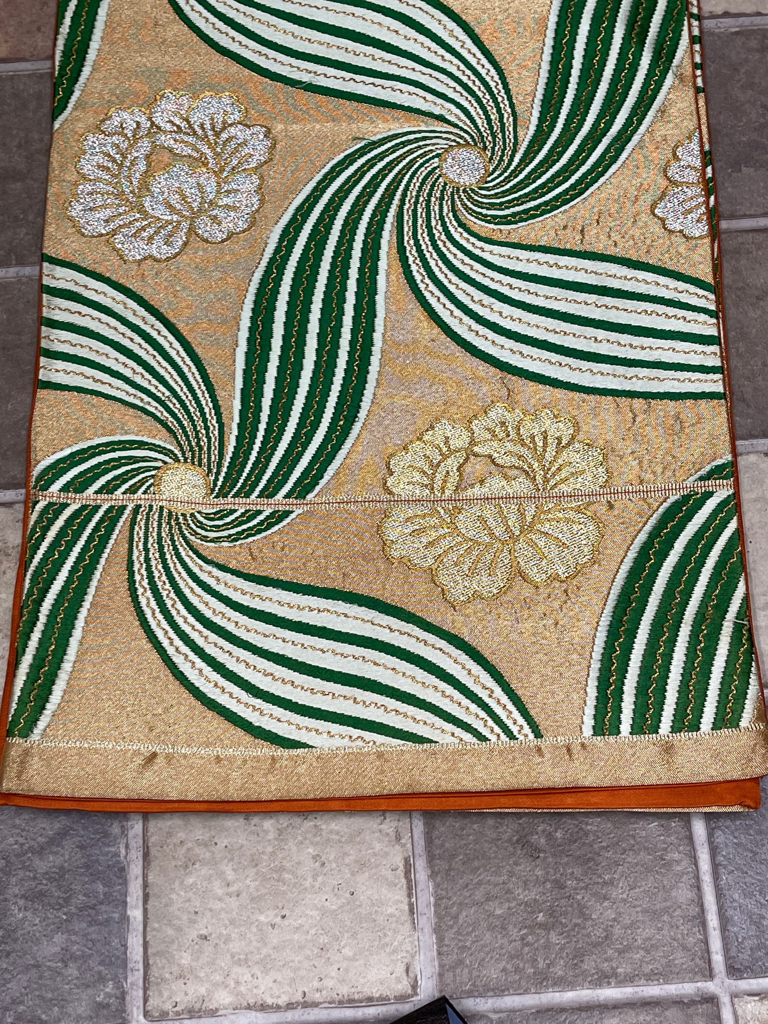 ゴールド地にグリーンの大柄が大胆でクールです。