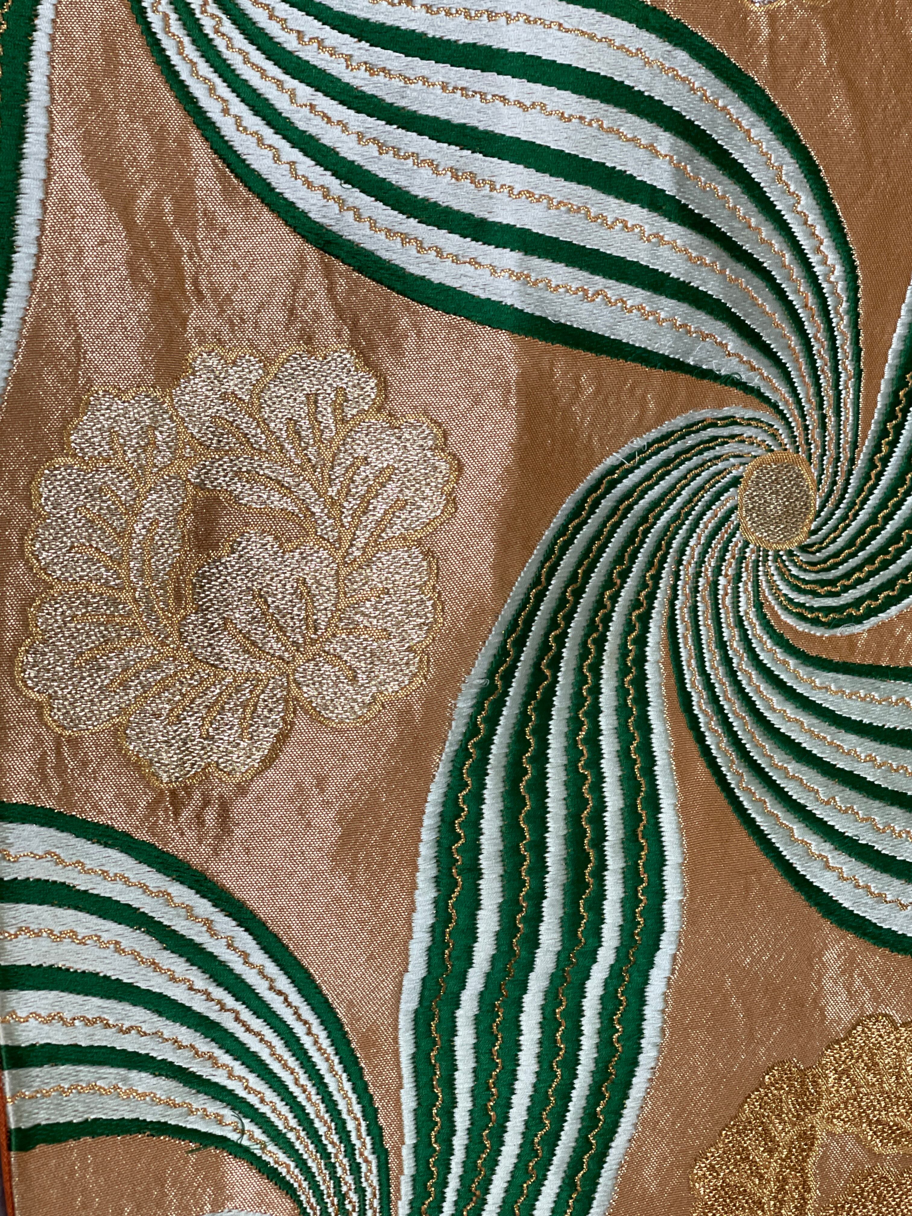 アンティーク帯 袋帯 ゴールド地 風車 草花紋