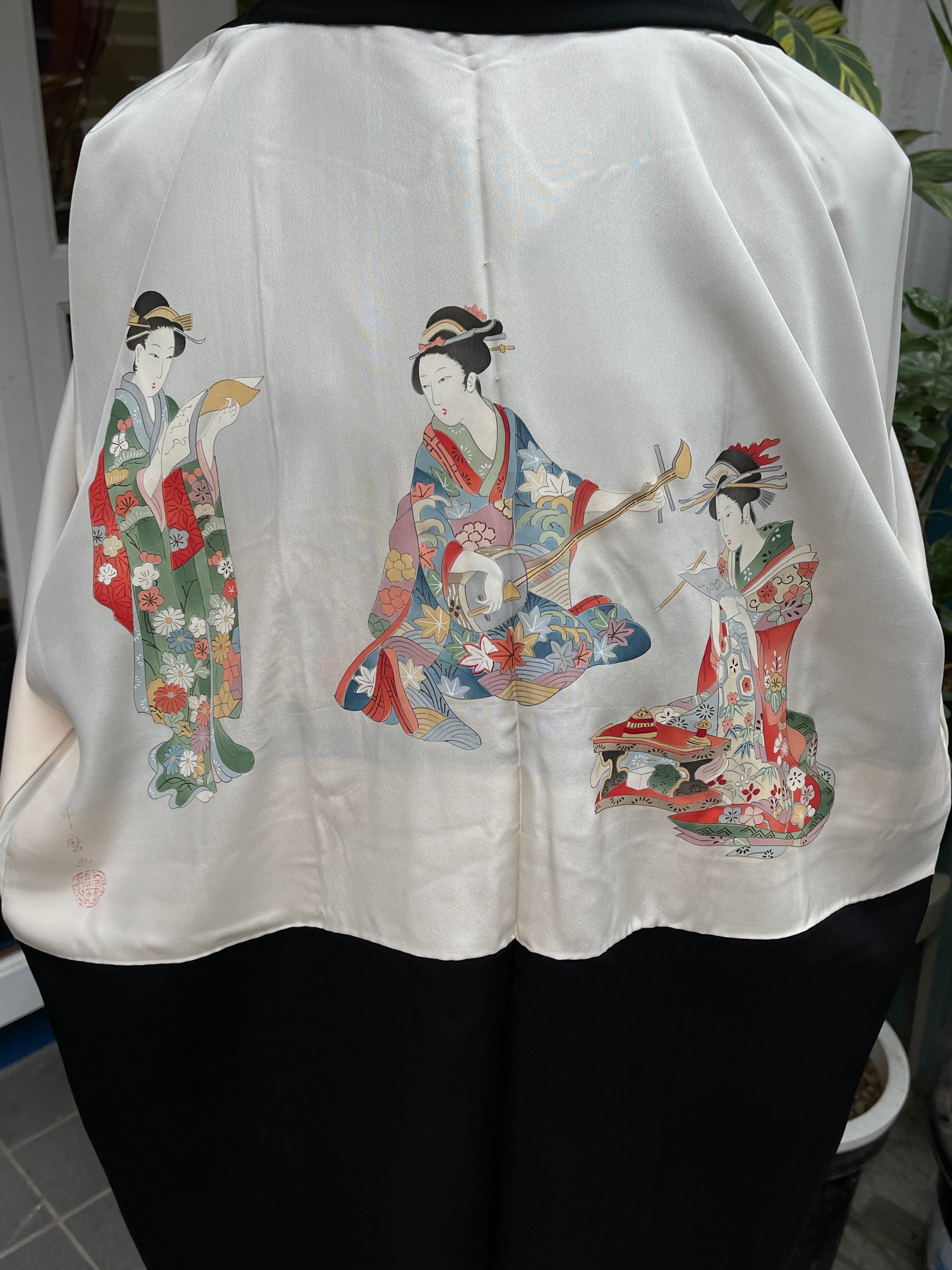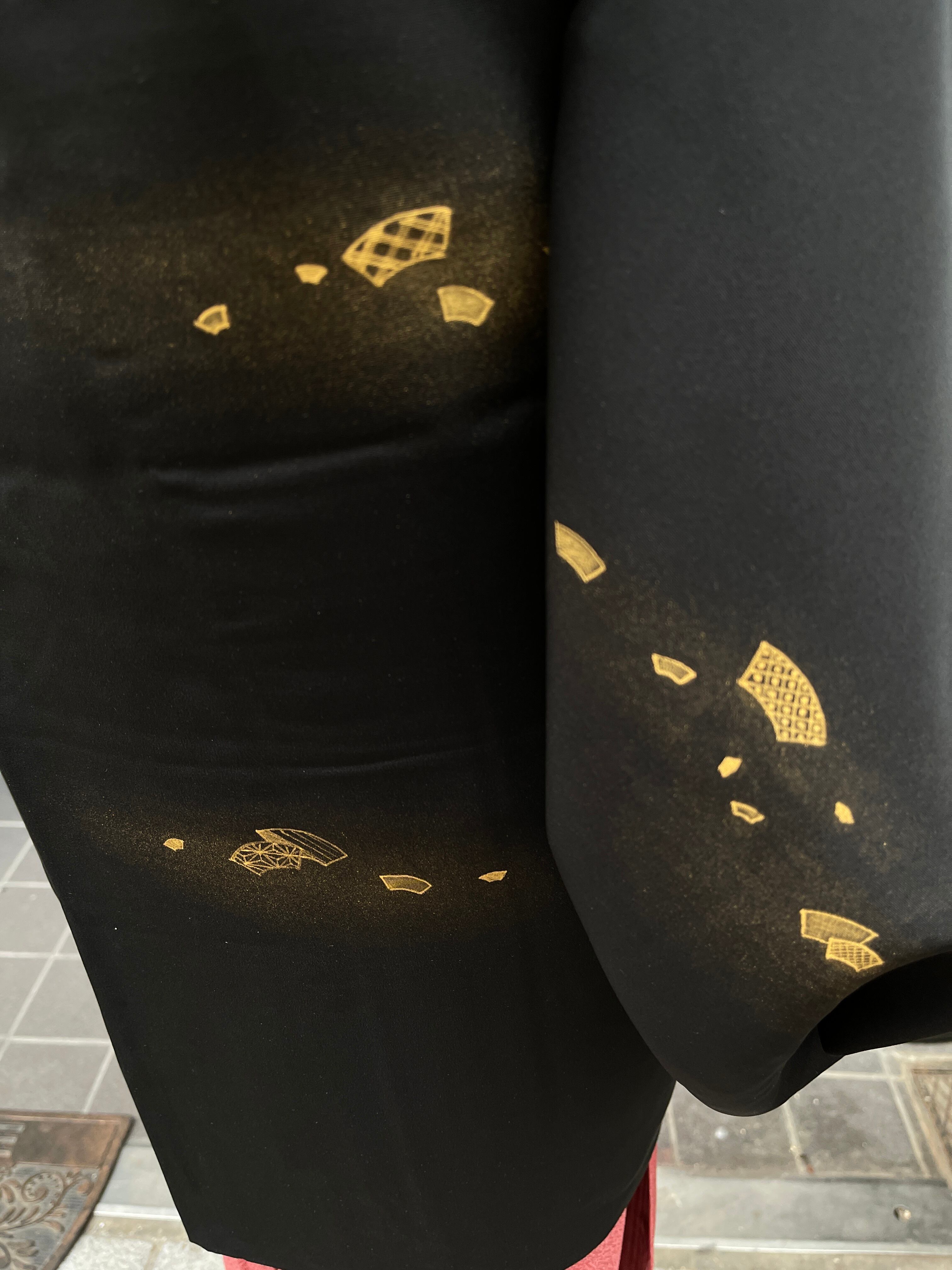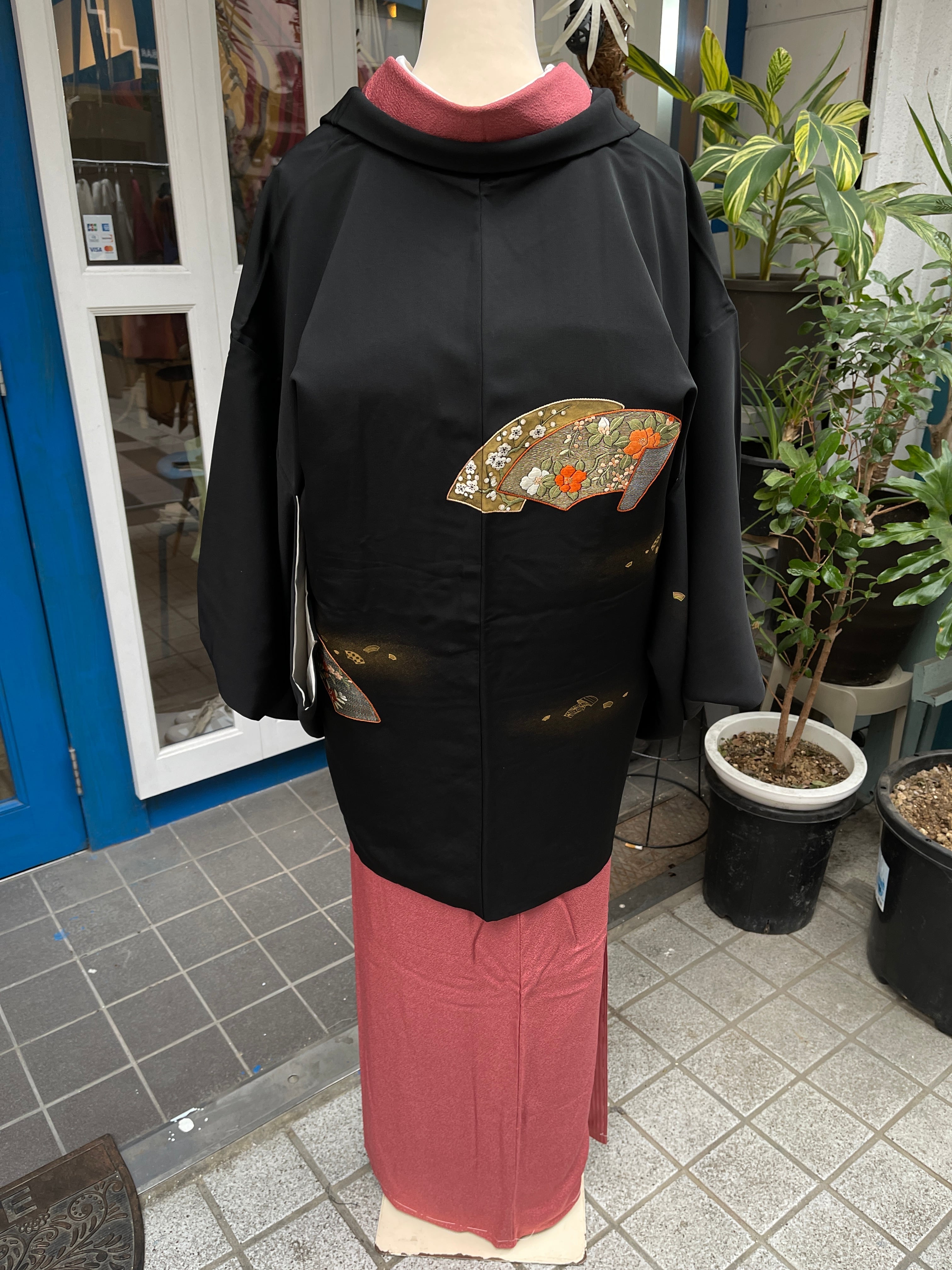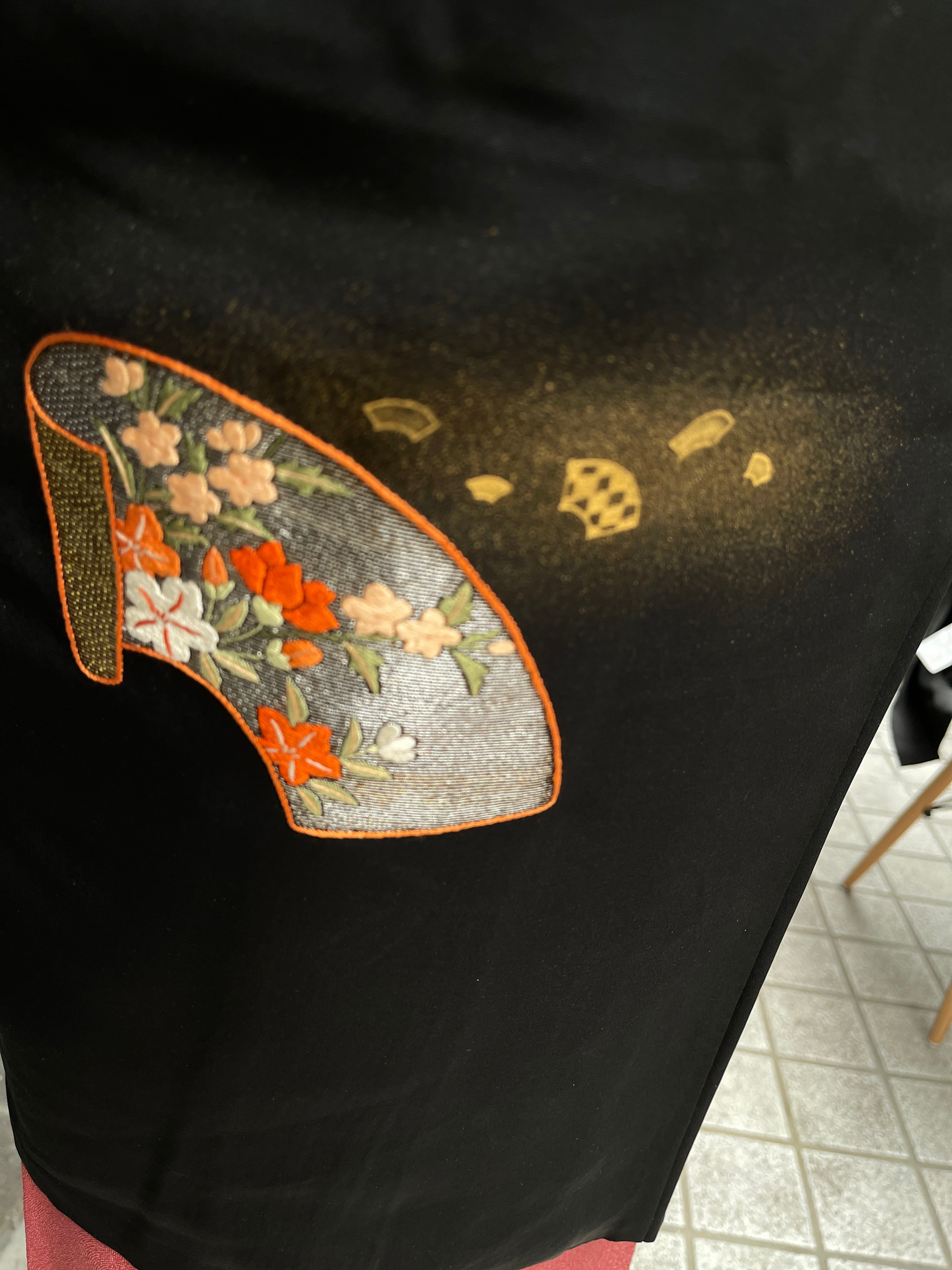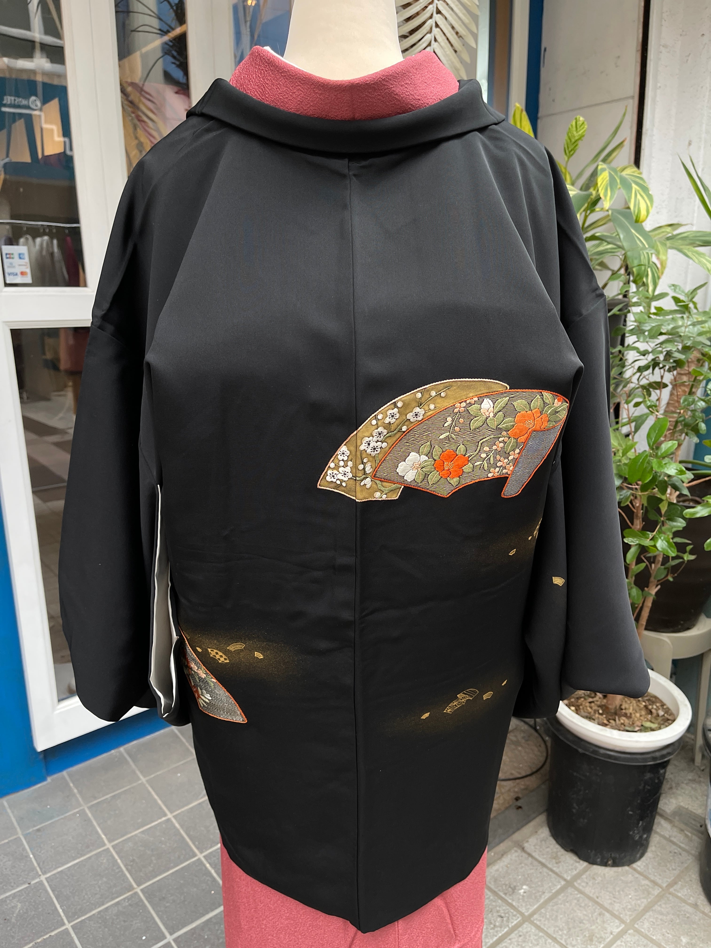 黒羽織 刺繍 扇 梅 椿 桜 金糸 金箔 カジュアル おしゃれ着