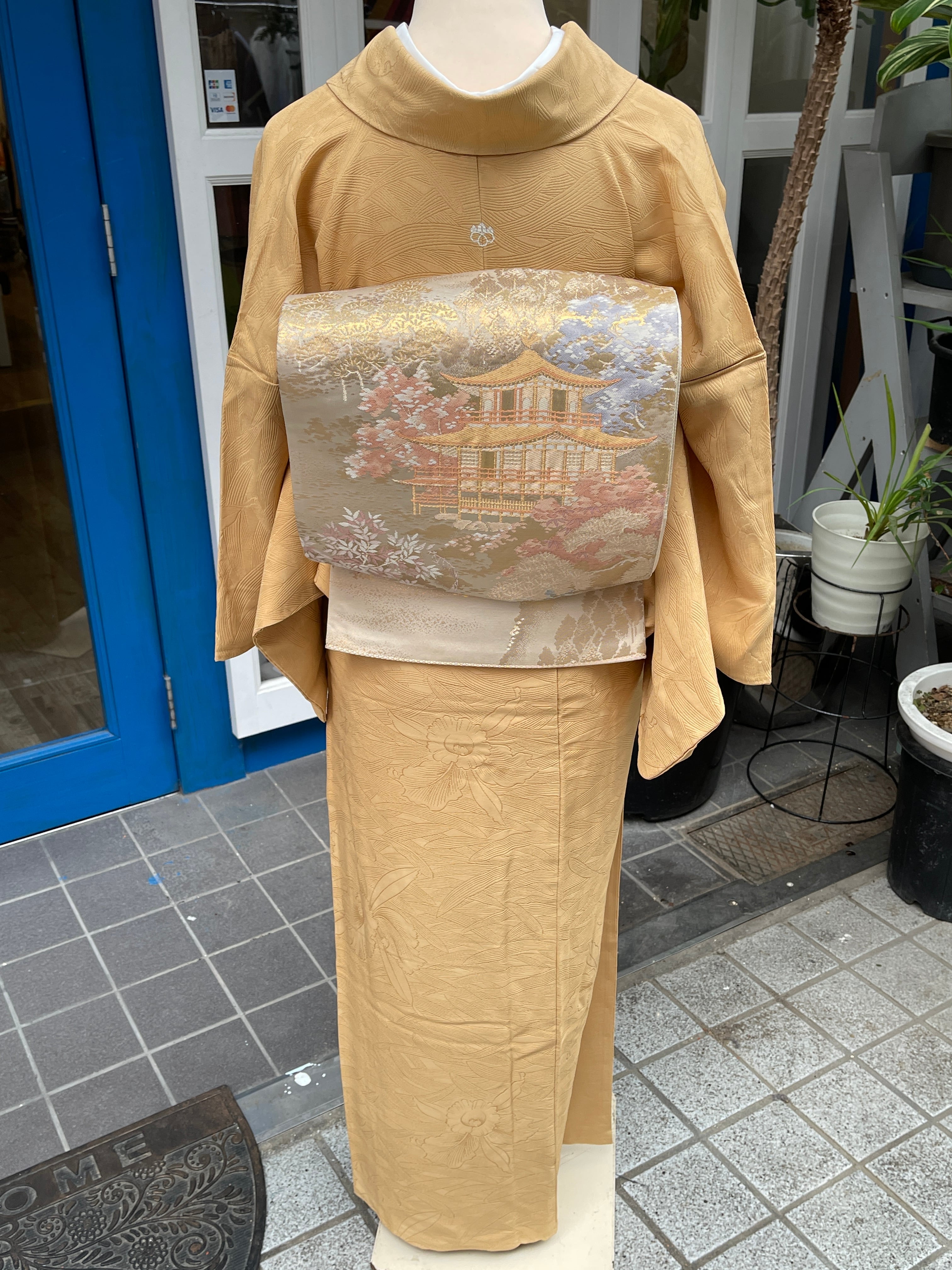 色無地 カーキ 一つ紋 カトレア ゆったりサイズ セミフォーマル 結婚式 卒入学式 七五三 パーティー お茶会 観劇