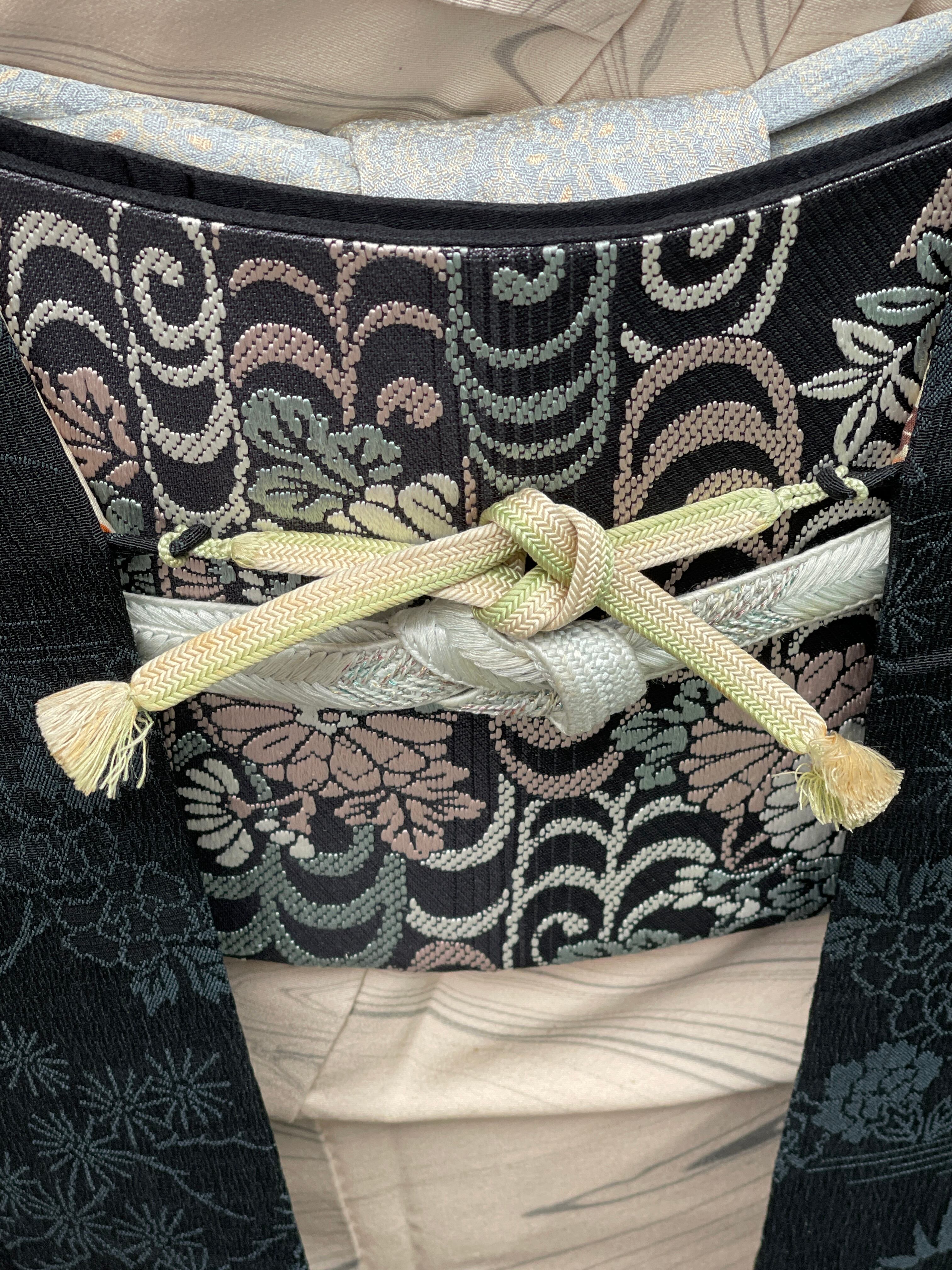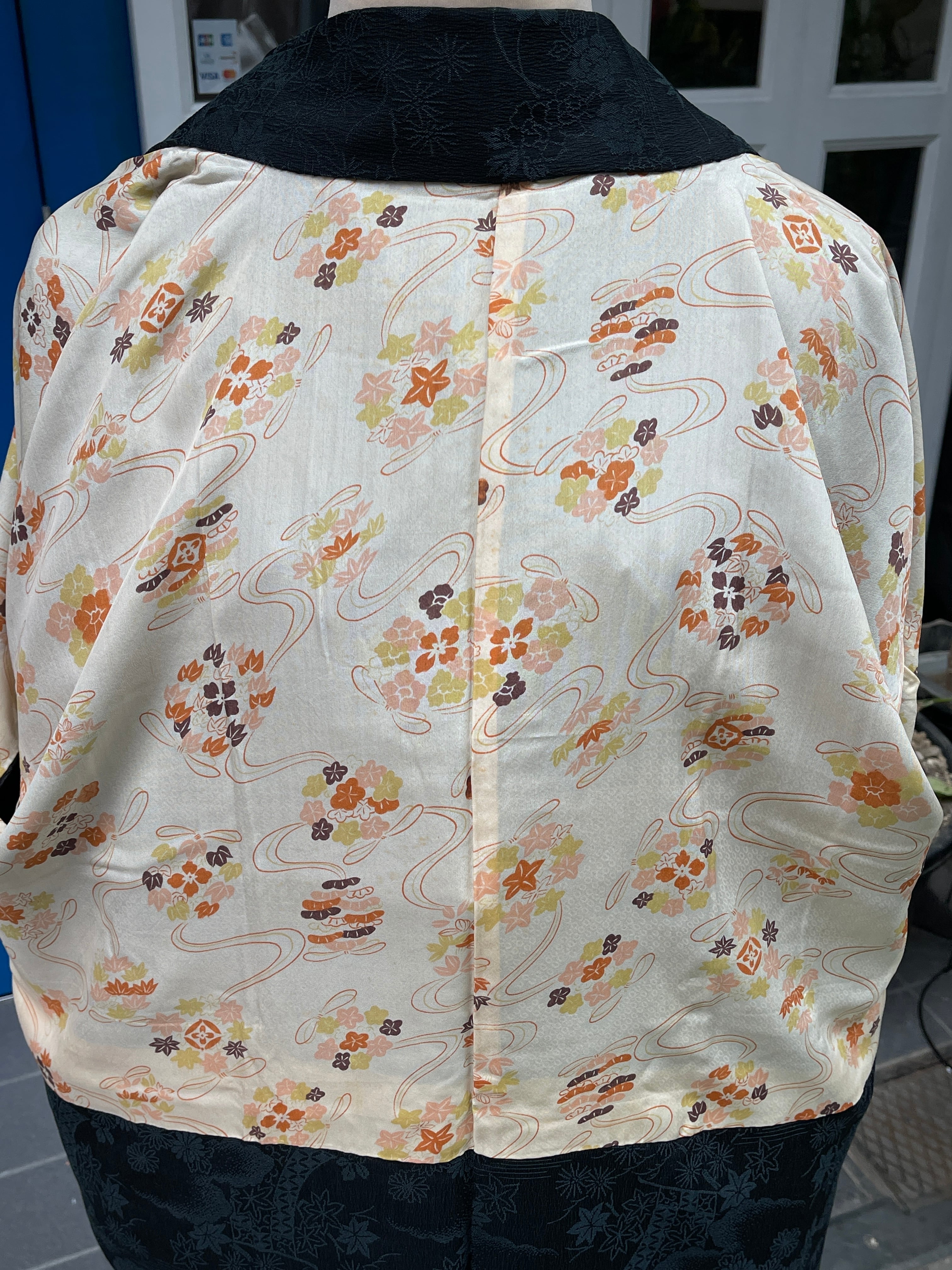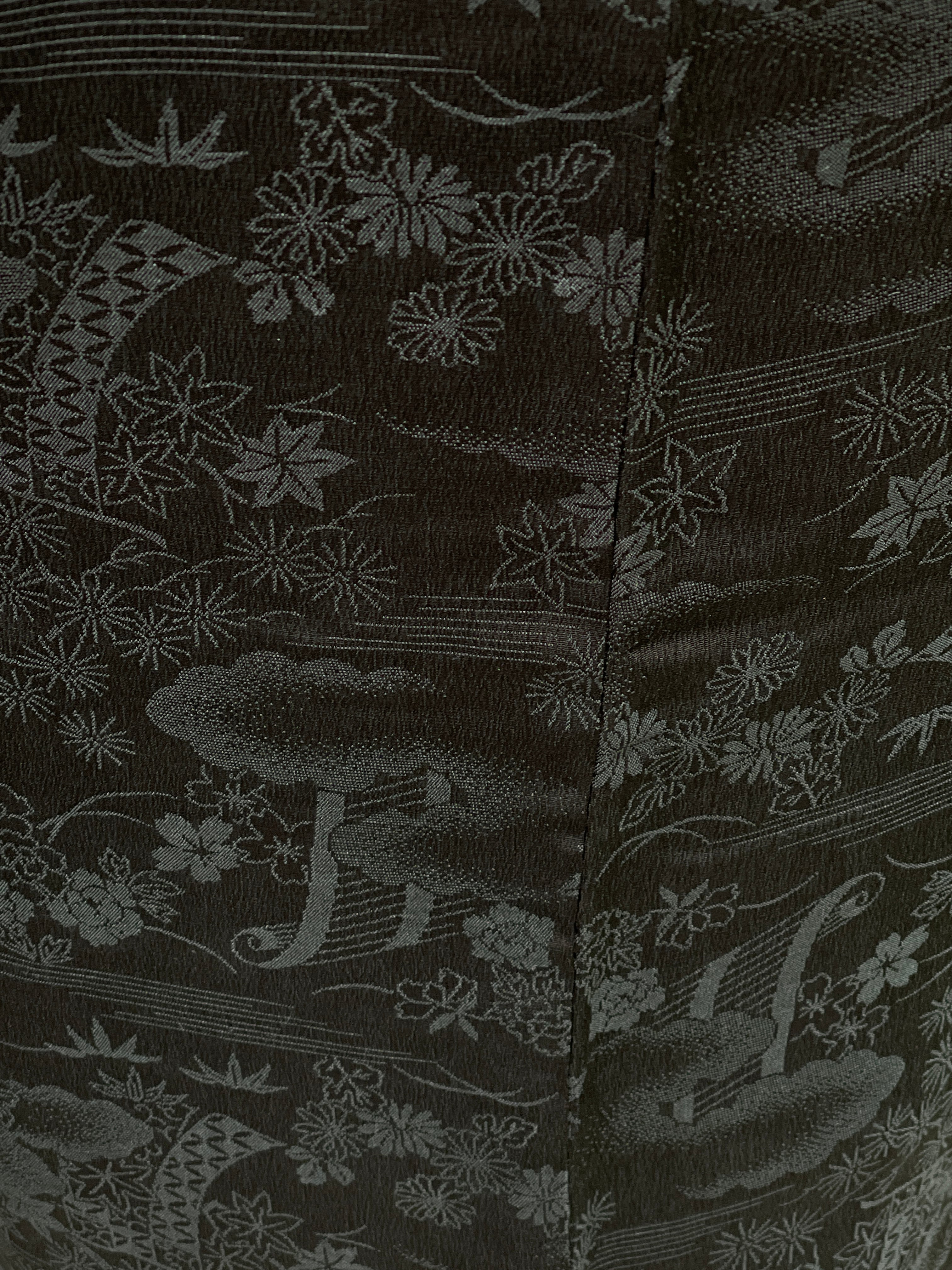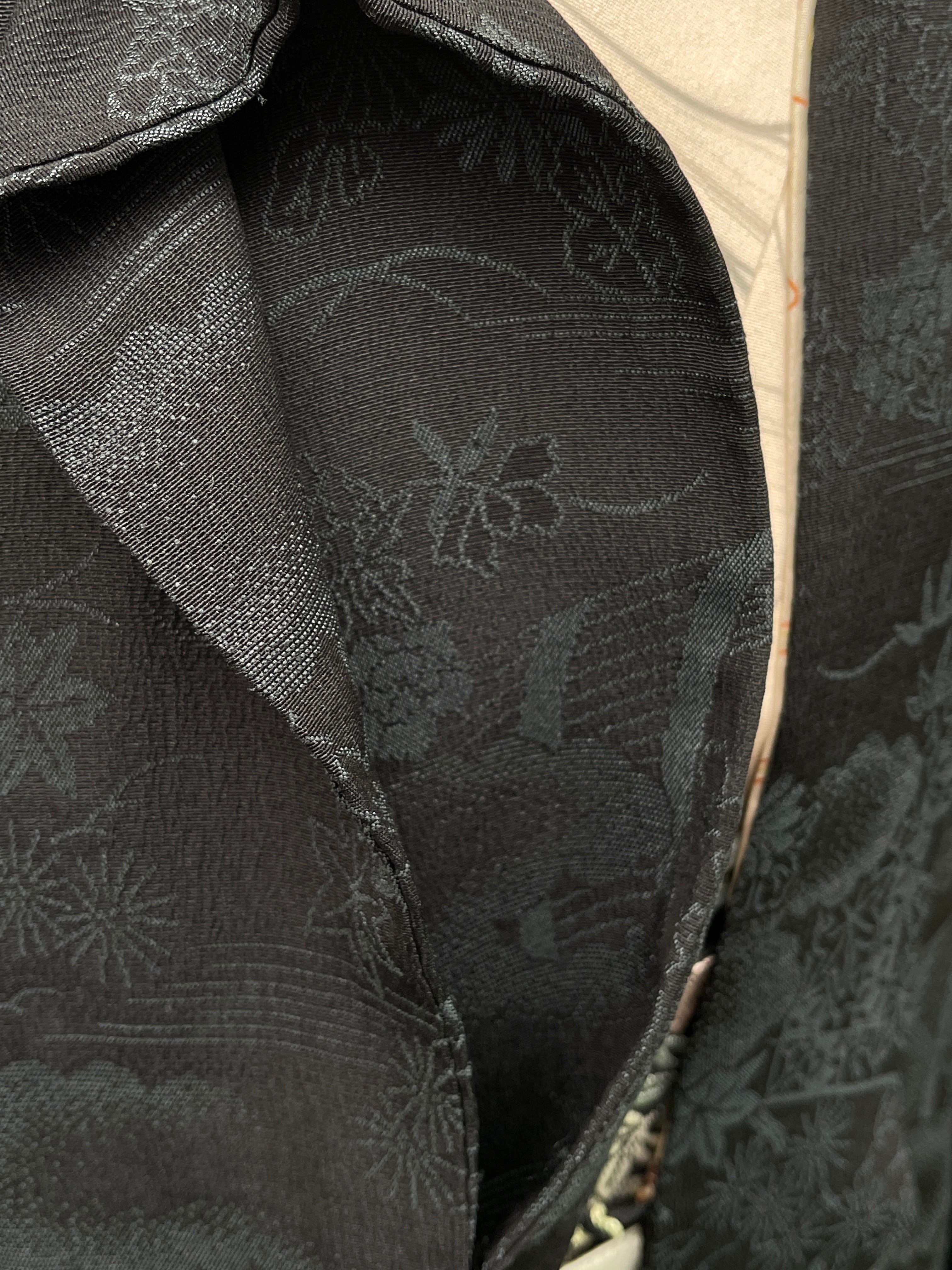 黒羽織 セミアンティーク天蚕 山繭 無地 四季の花 御所車 一つ紋 フォーマル 冠婚葬祭 卒入学式