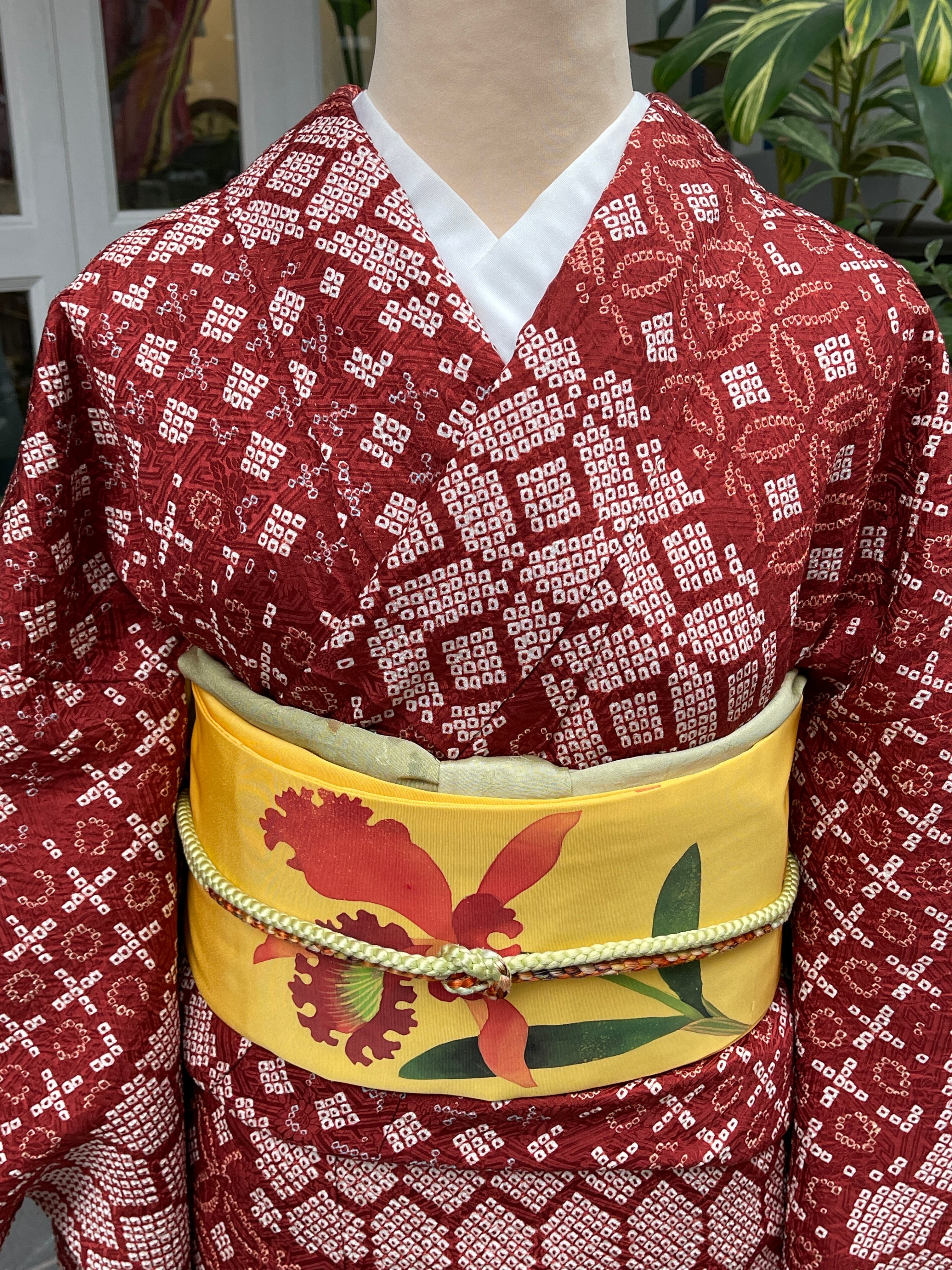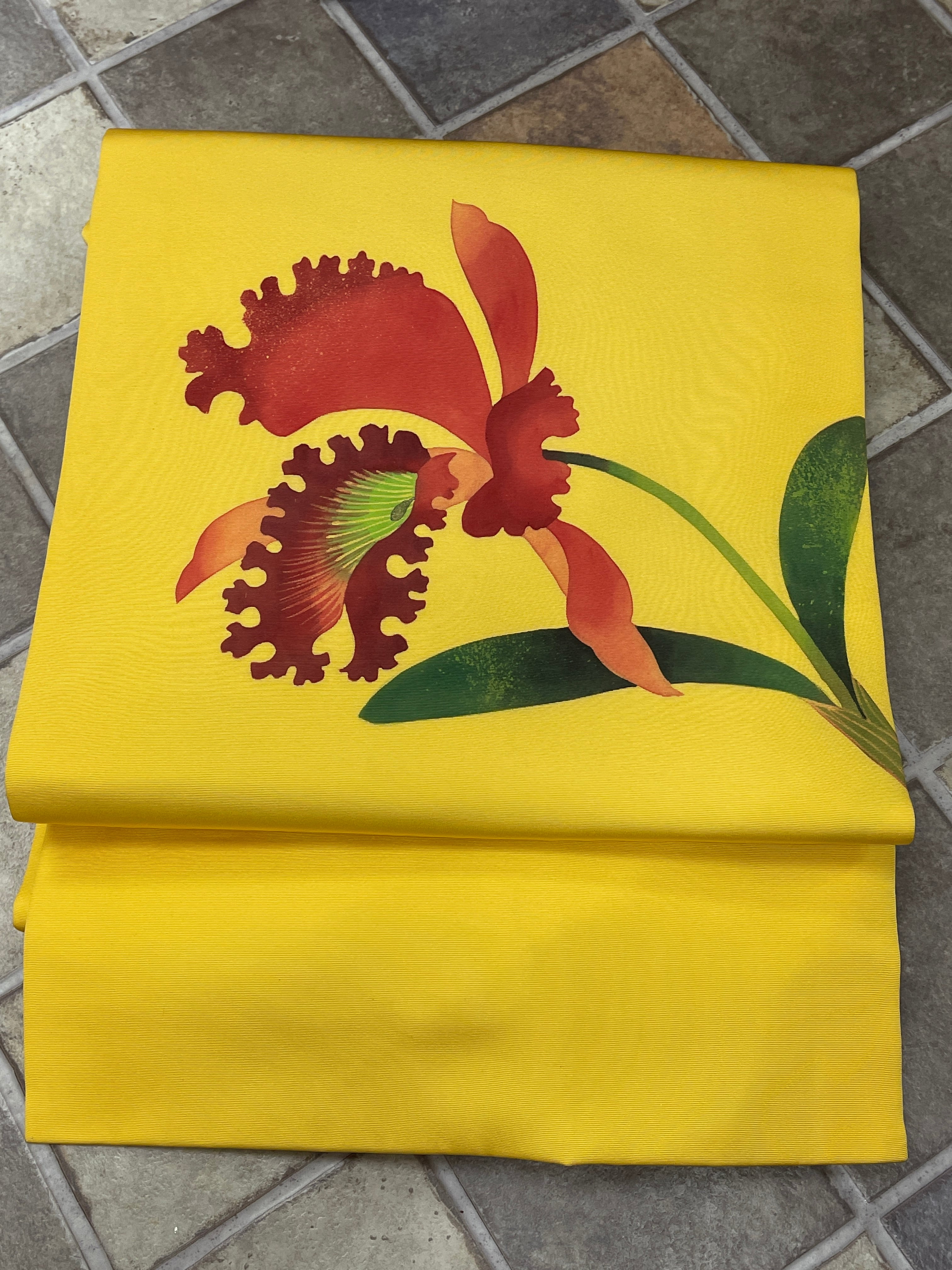 名古屋帯 九寸名古屋帯 塩瀬 イエロー系 カトレア カジュアル 小紋 紬 女子会 食事会 お茶会