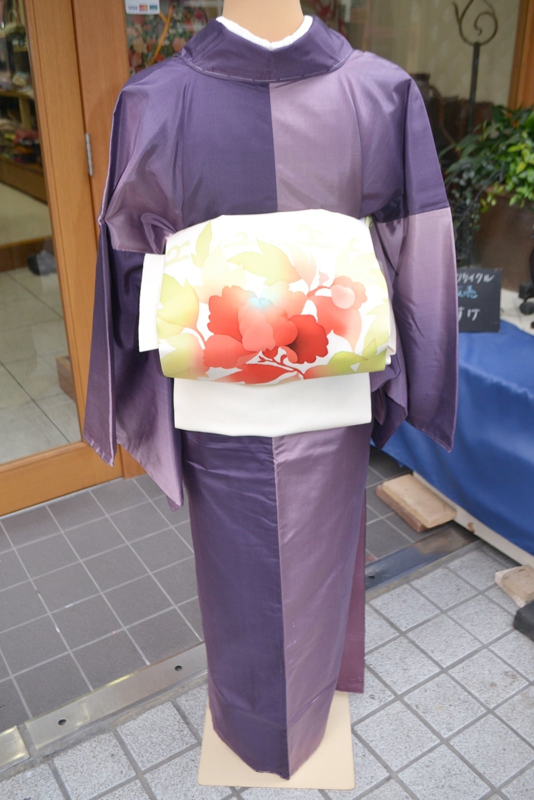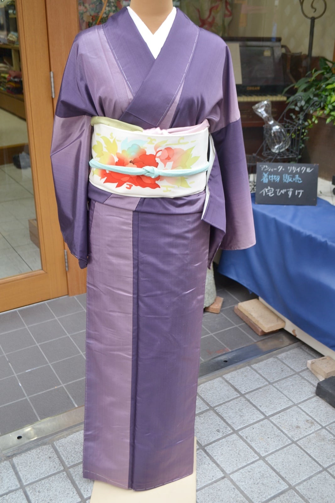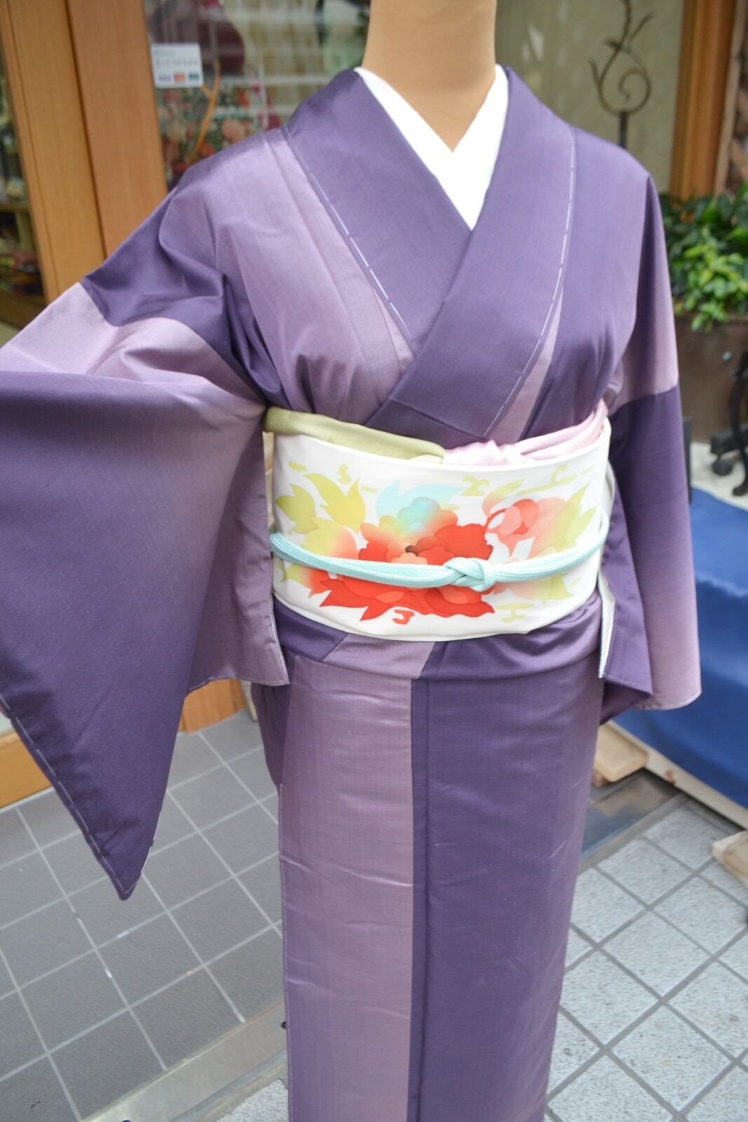 紬 紫 グラデーション 裄68cm 未使用 美品 粋 紬 観劇 お稽古 普段着 カジュアル 大人の着物