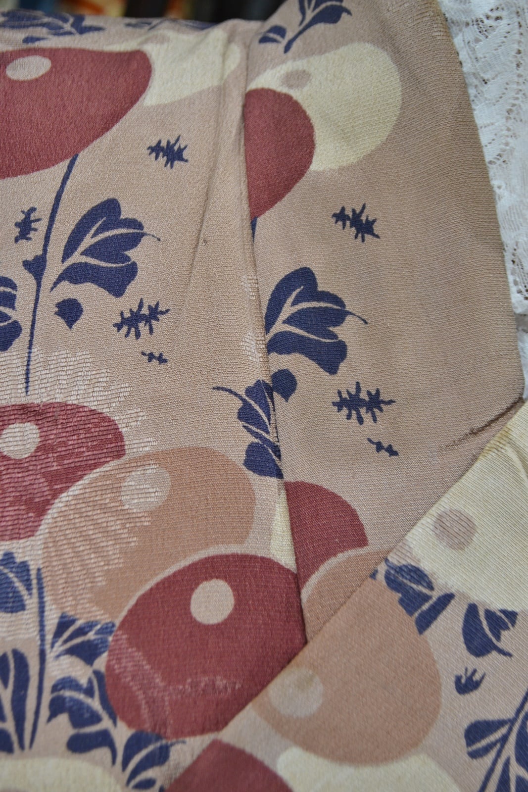 アンティーク着物 カフェオレカラ 万寿菊 アンティーク 着物 銘仙 錦紗縮緬 大正浪漫 大正ロマン カジュアル 普段着 レトロ 可愛い 材料
