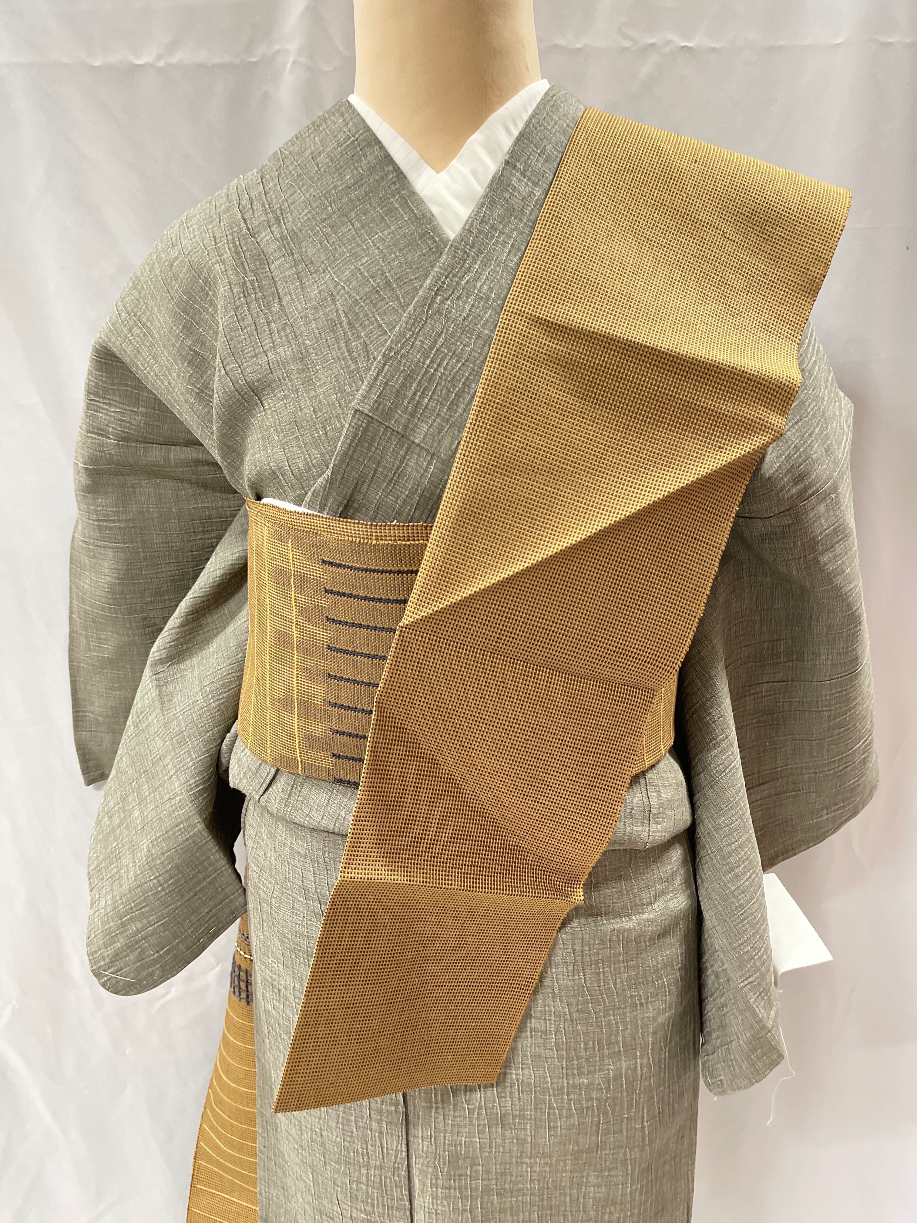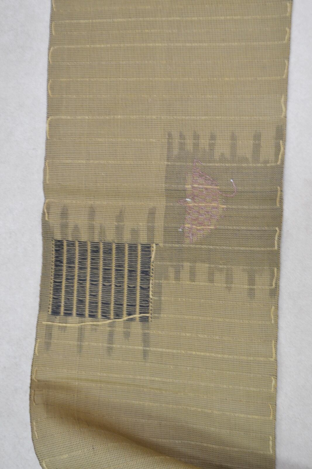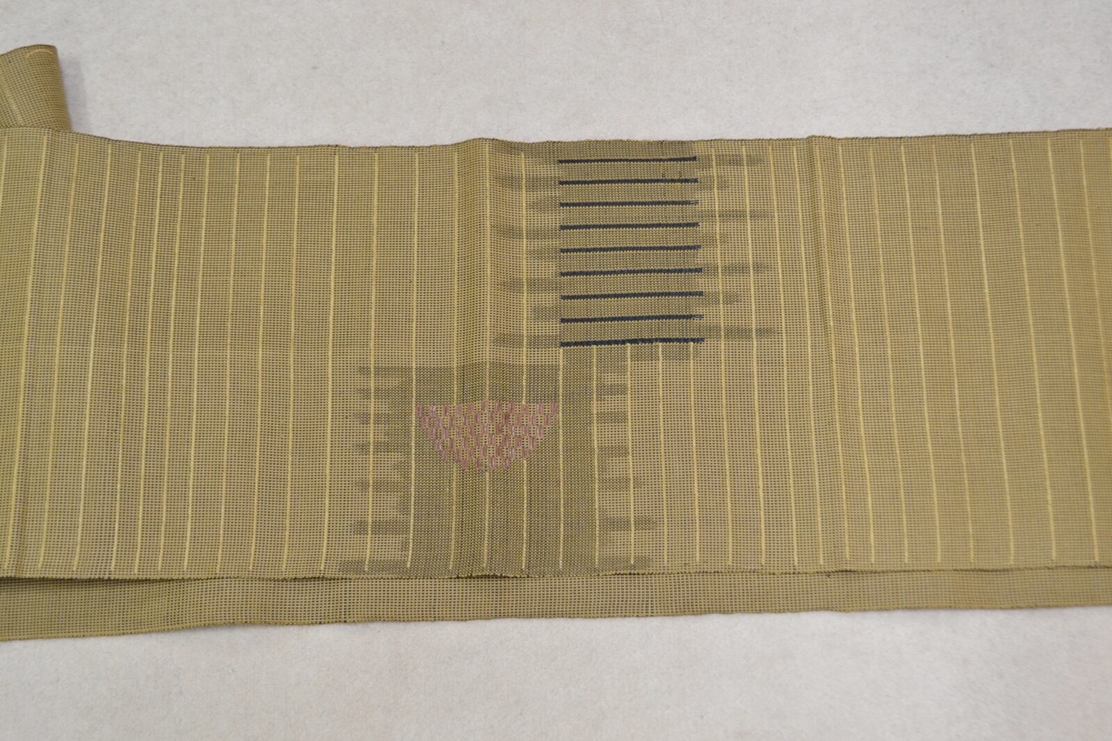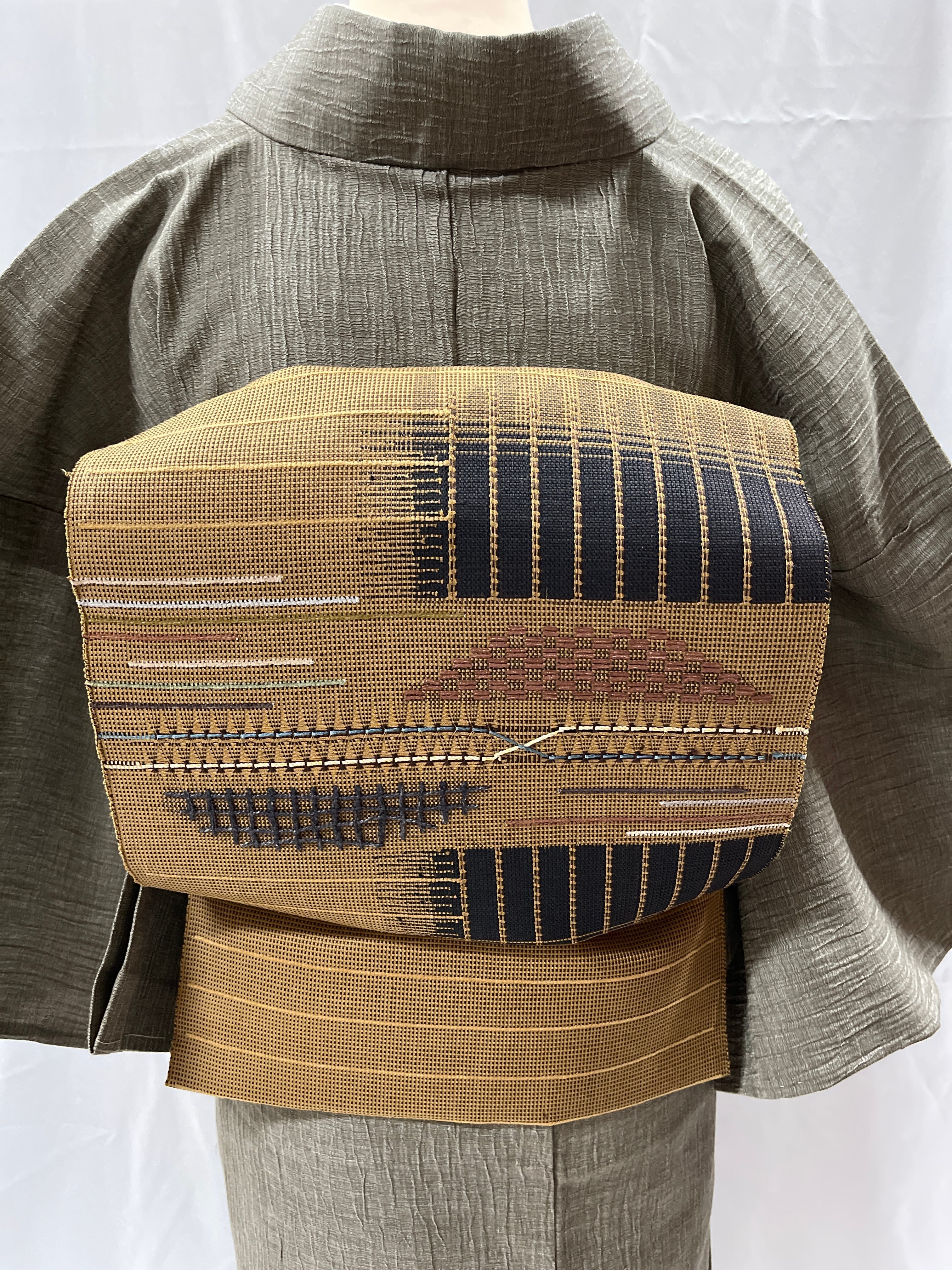 夏帯 金茶 長尺 モダン柄 八寸名古屋 普段着 カジュアル