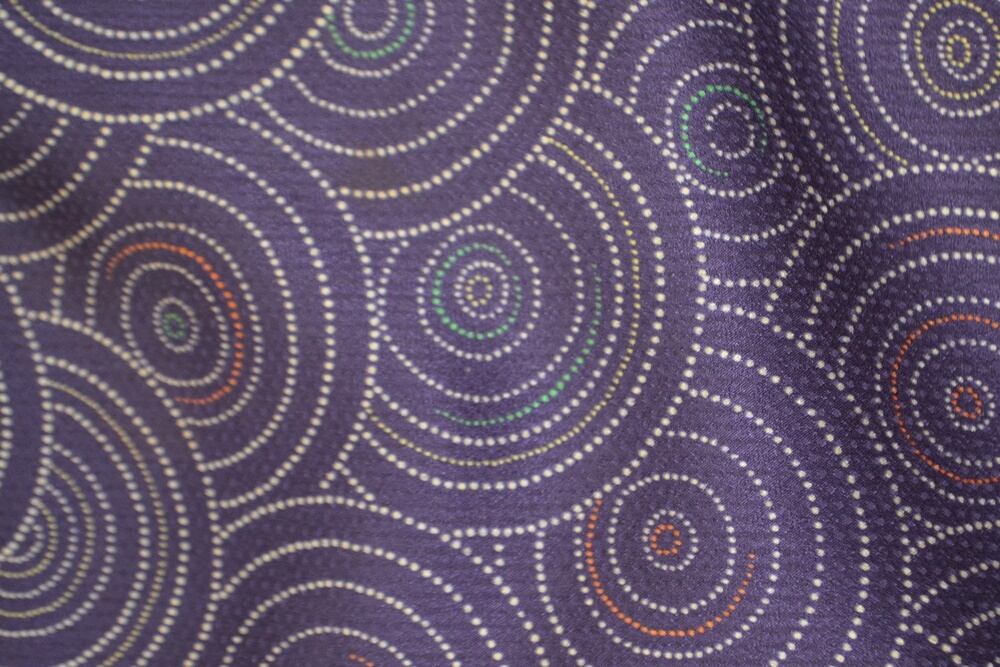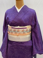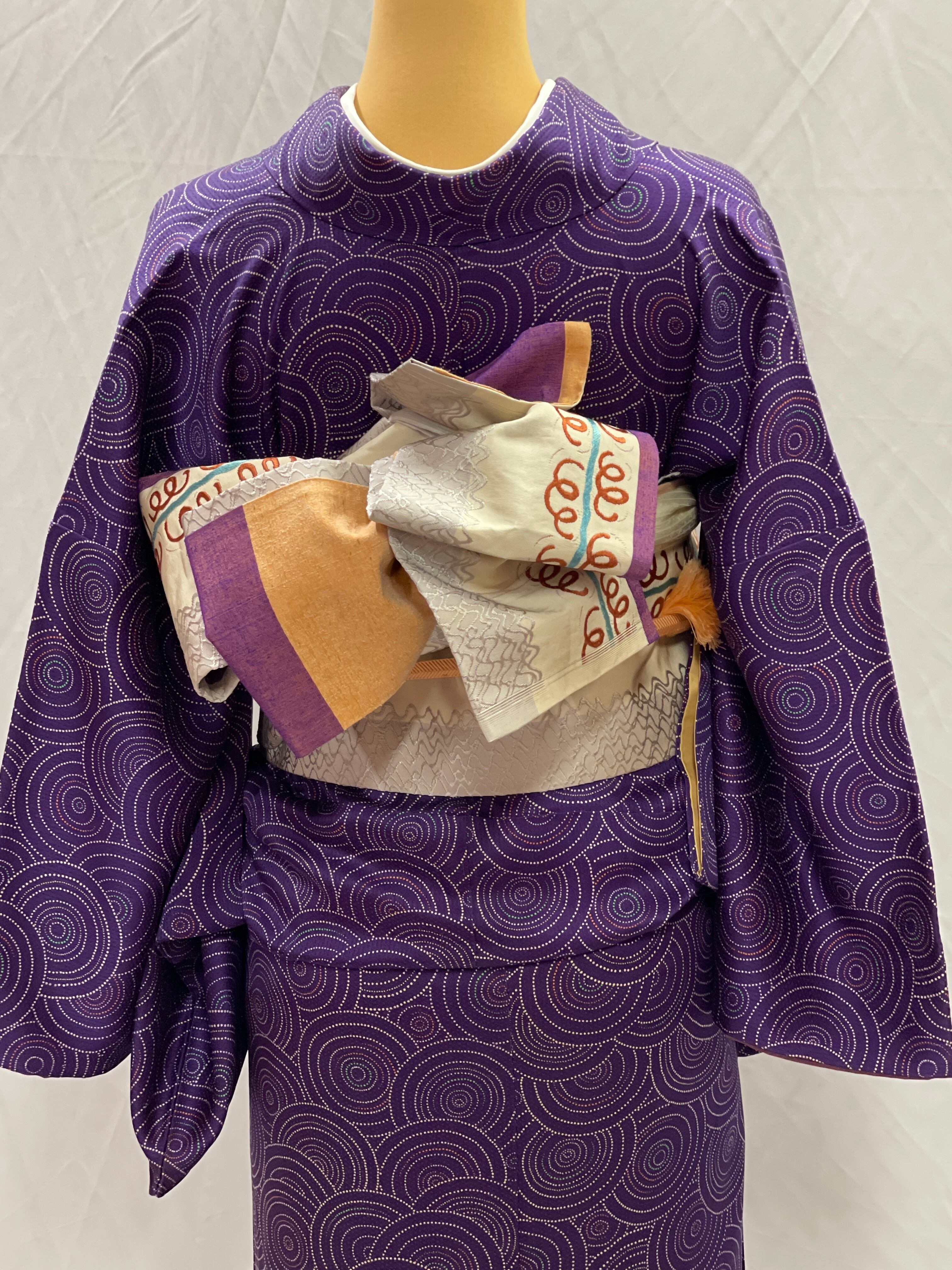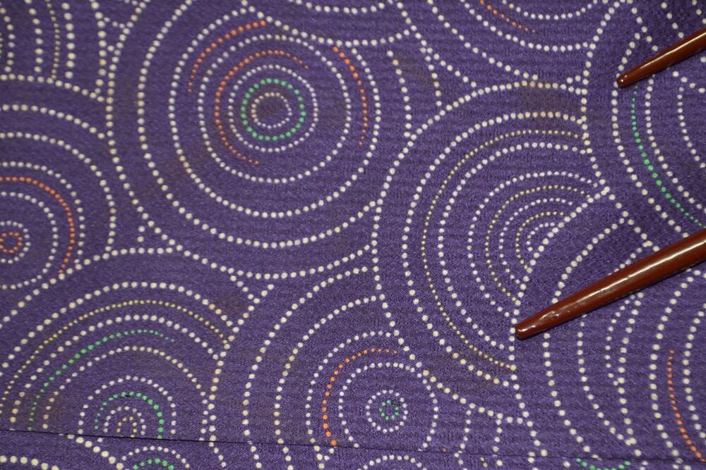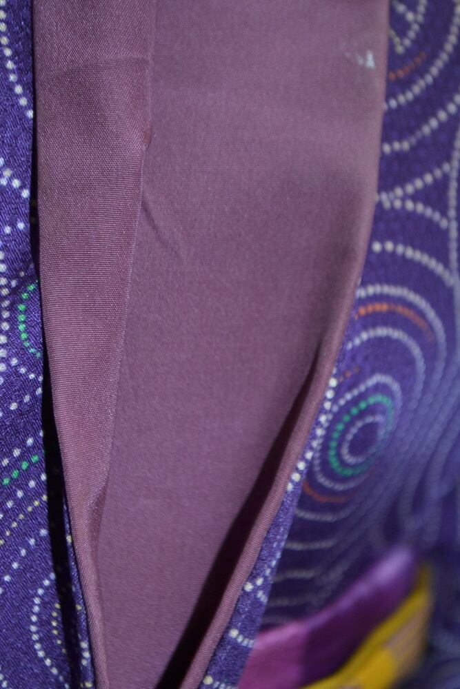 アンティーク着物 裄68cm 紫 ぐるぐる アンティーク 小紋 普段着 おしゃれ 貴重 お出かけ リサイクル 中古