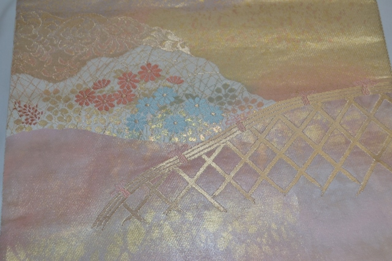 金糸銀糸が使われ、流水と網代の間を四季の野原が彩ります。