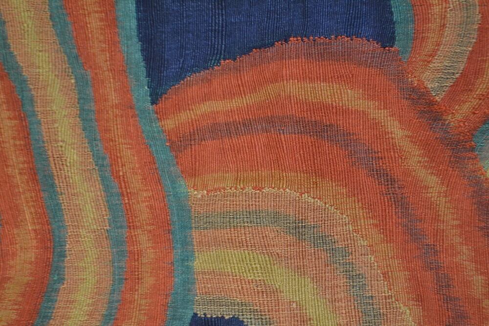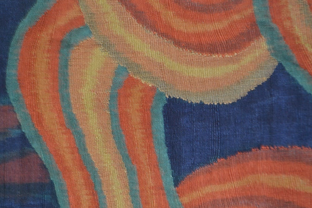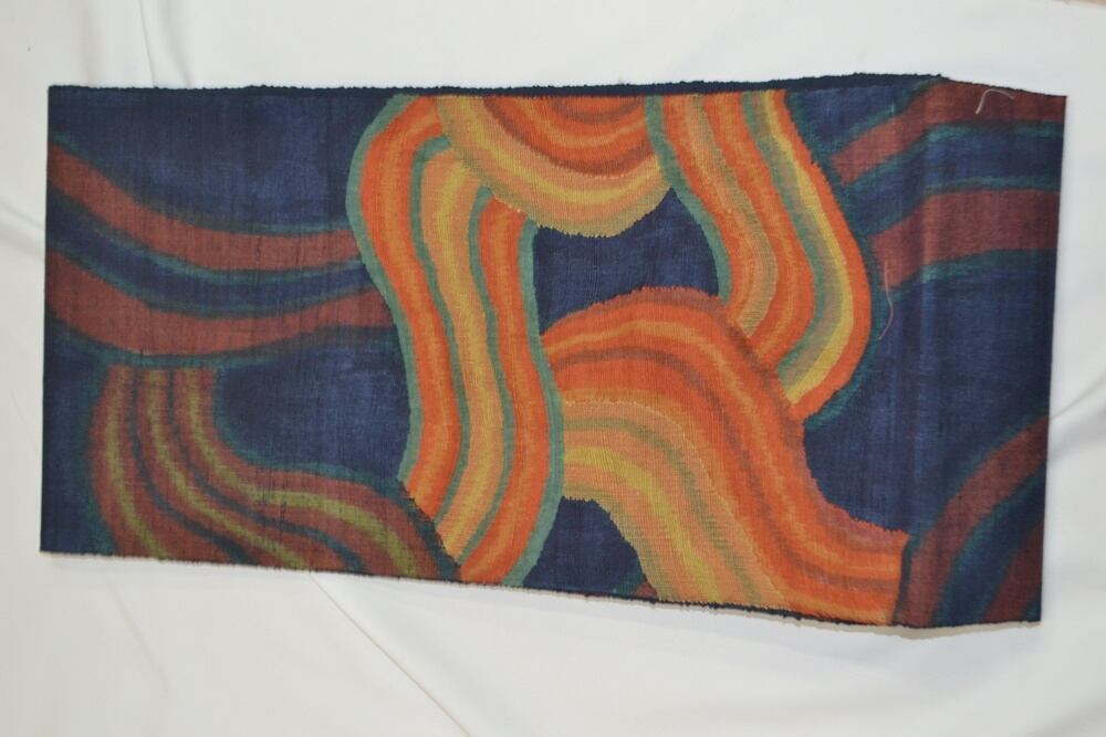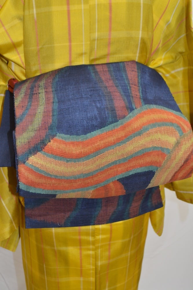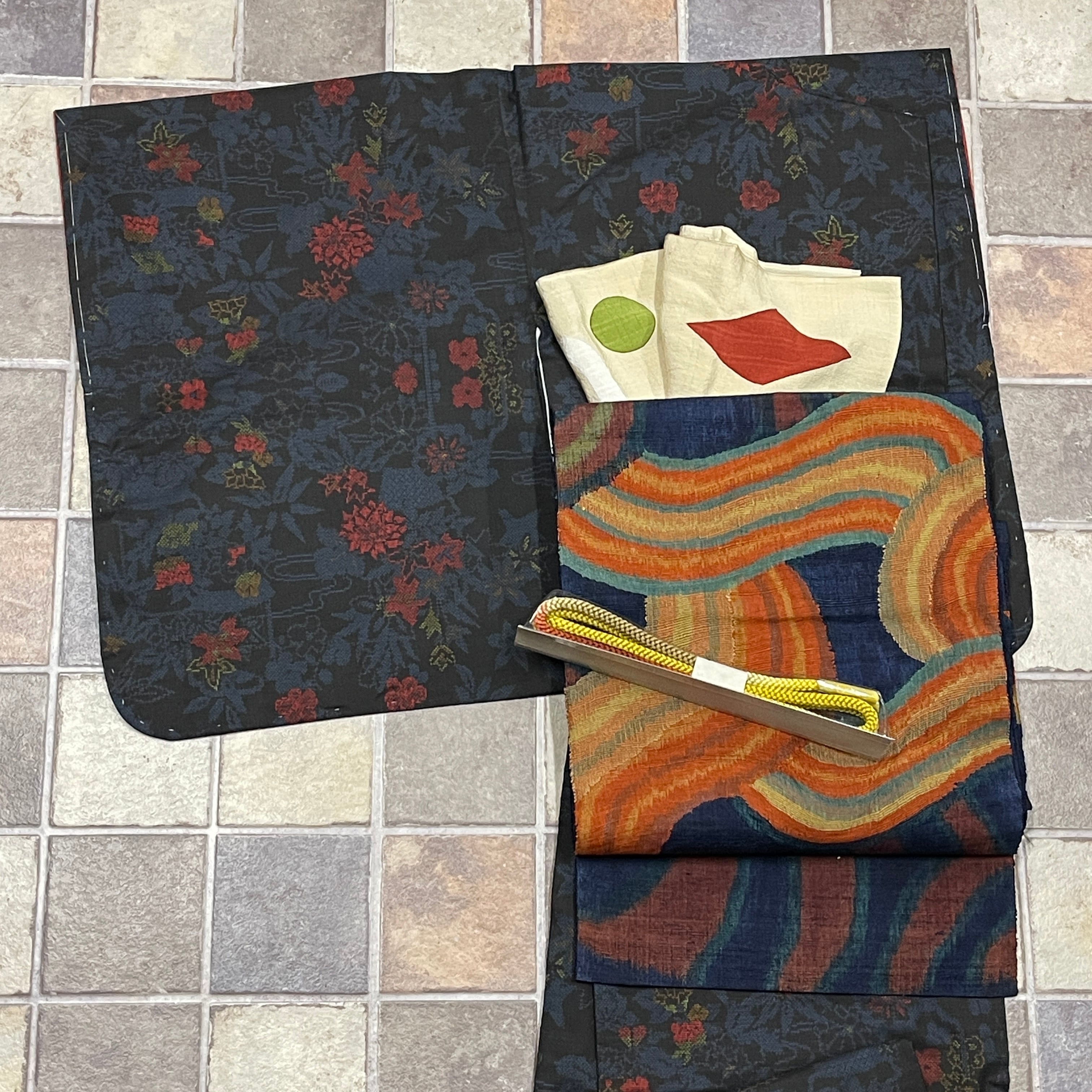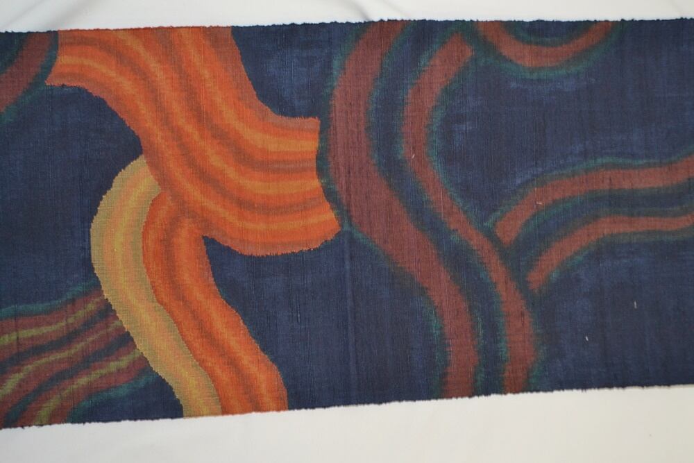 【八寸名古屋】真綿紬☆紺地に流線モダンアート