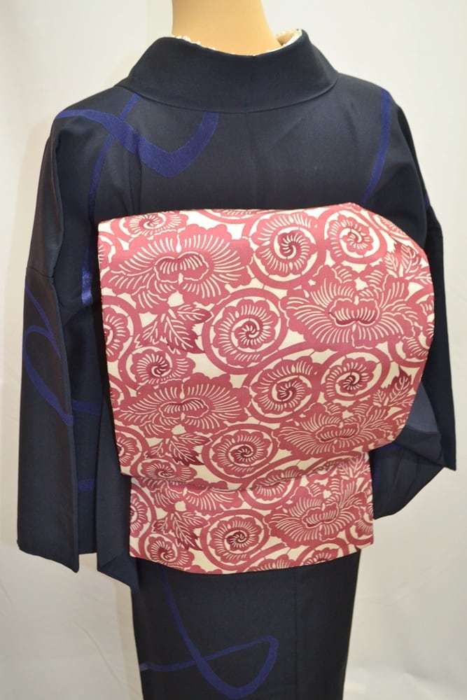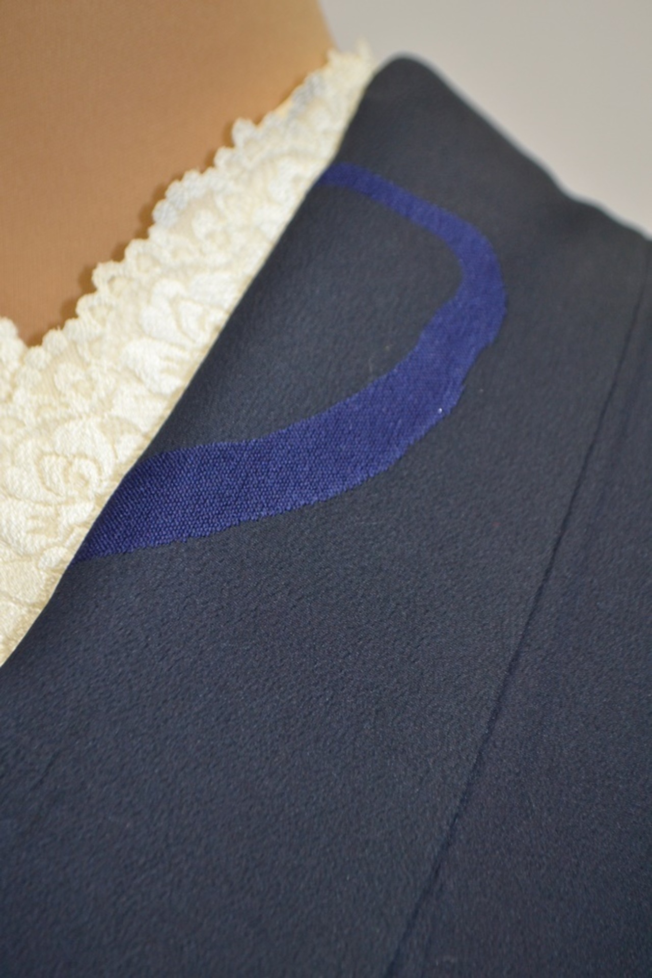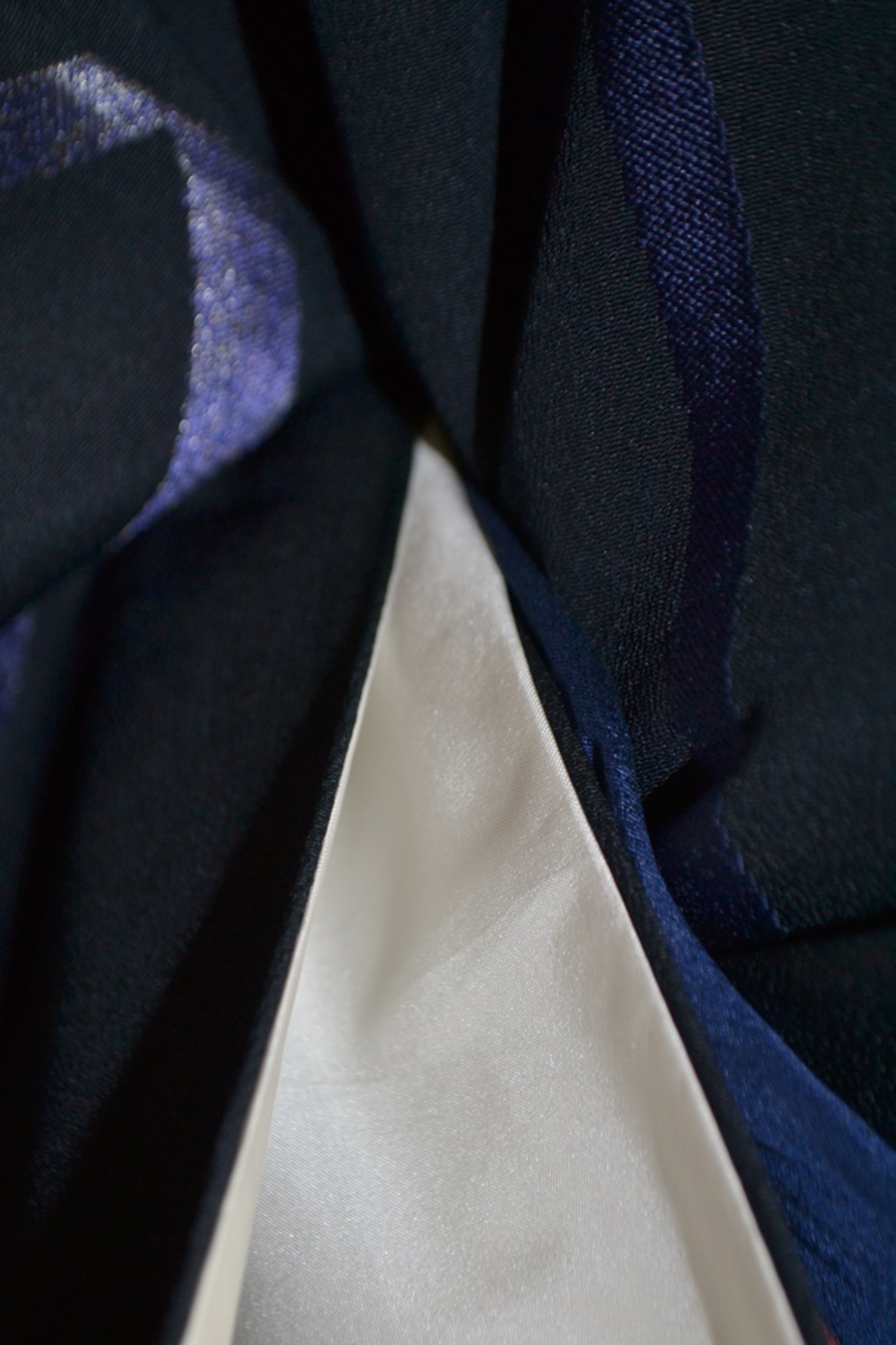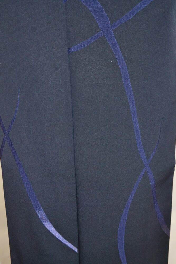 アンティーク着物 【お召】黒地にラメの紺色の流線