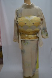 付下げ ベージュ系 四季の花 未使用 入学式 お茶席 観劇