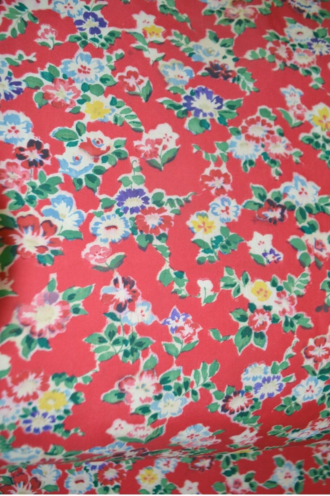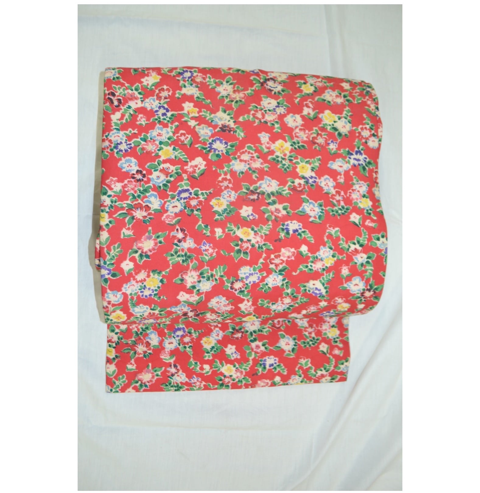 アンティーク帯 九寸名古屋帯 赤地 お花畑