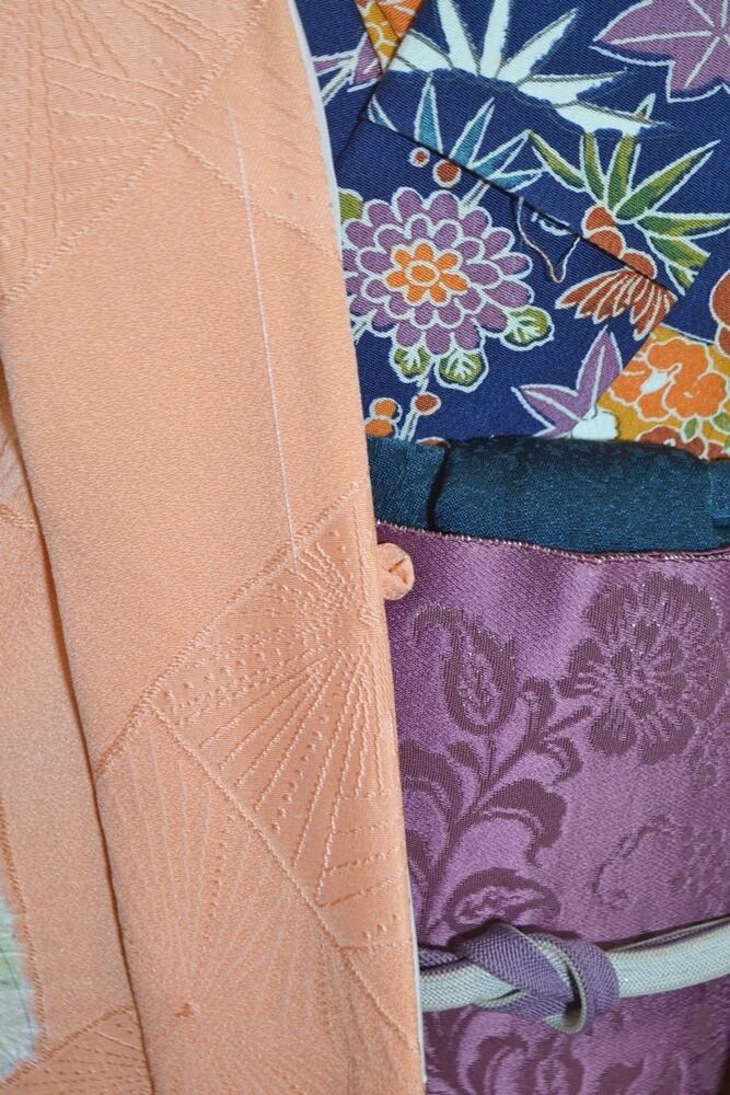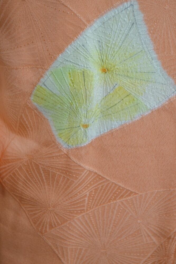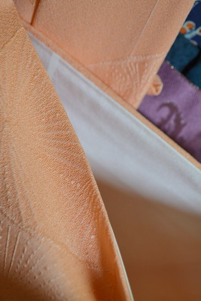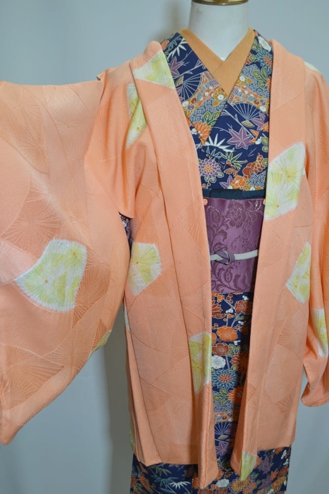 【裄大き目】ペールオレンジ☆割氷菊花【クリーニング済】
