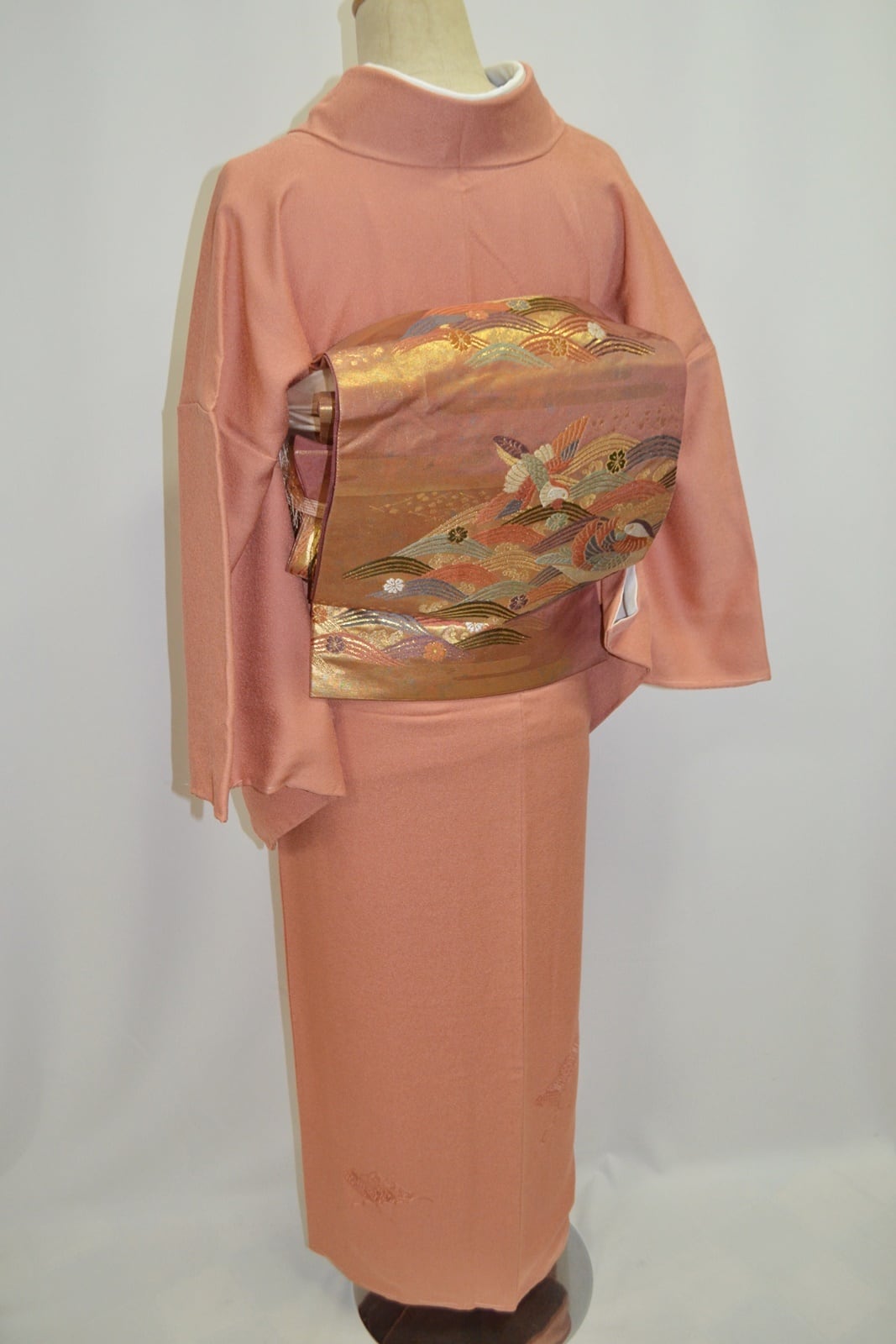 付下げ ペールオレンジ トールサイズ スワトウ刺繍 しつけ付