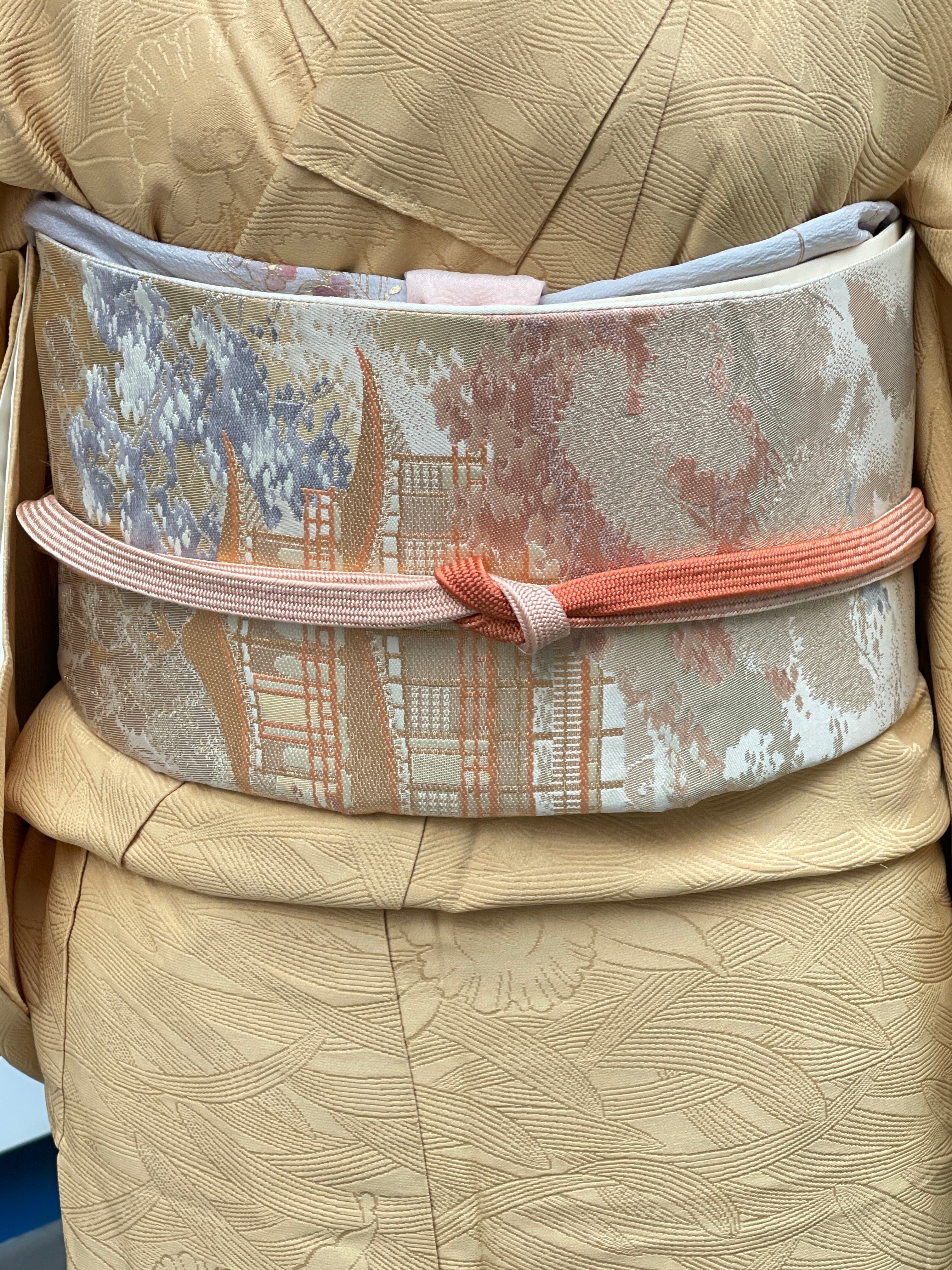 見事な鹿苑寺金閣の織られた帯です。