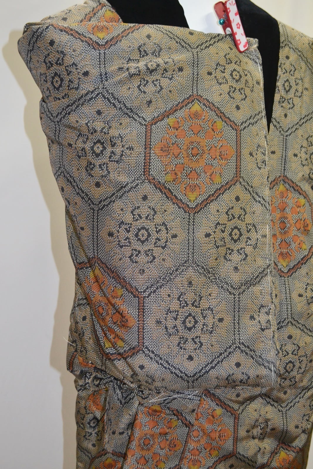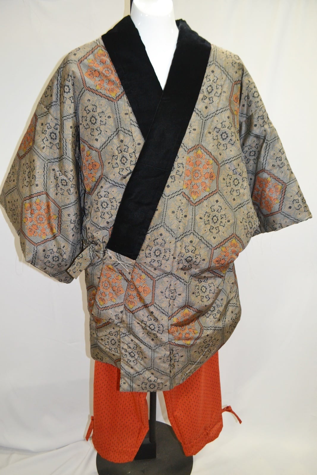 ねんねこ 半纏 紬 花紋亀甲 貴重 アンティーク ヴィンテージ ベルベット 子守 昭和レトロ