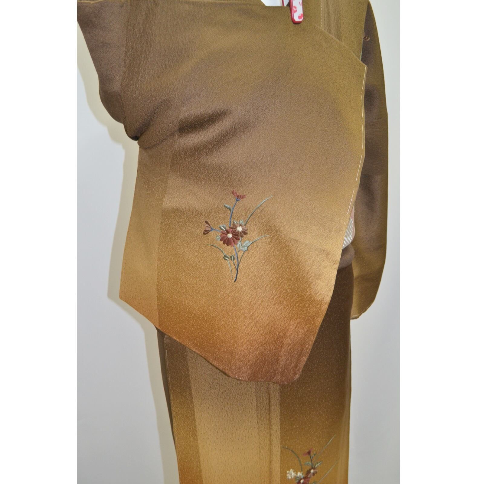 訪問着 裄67.5cm 茶色ぼかし 野花 刺繍 未使用品