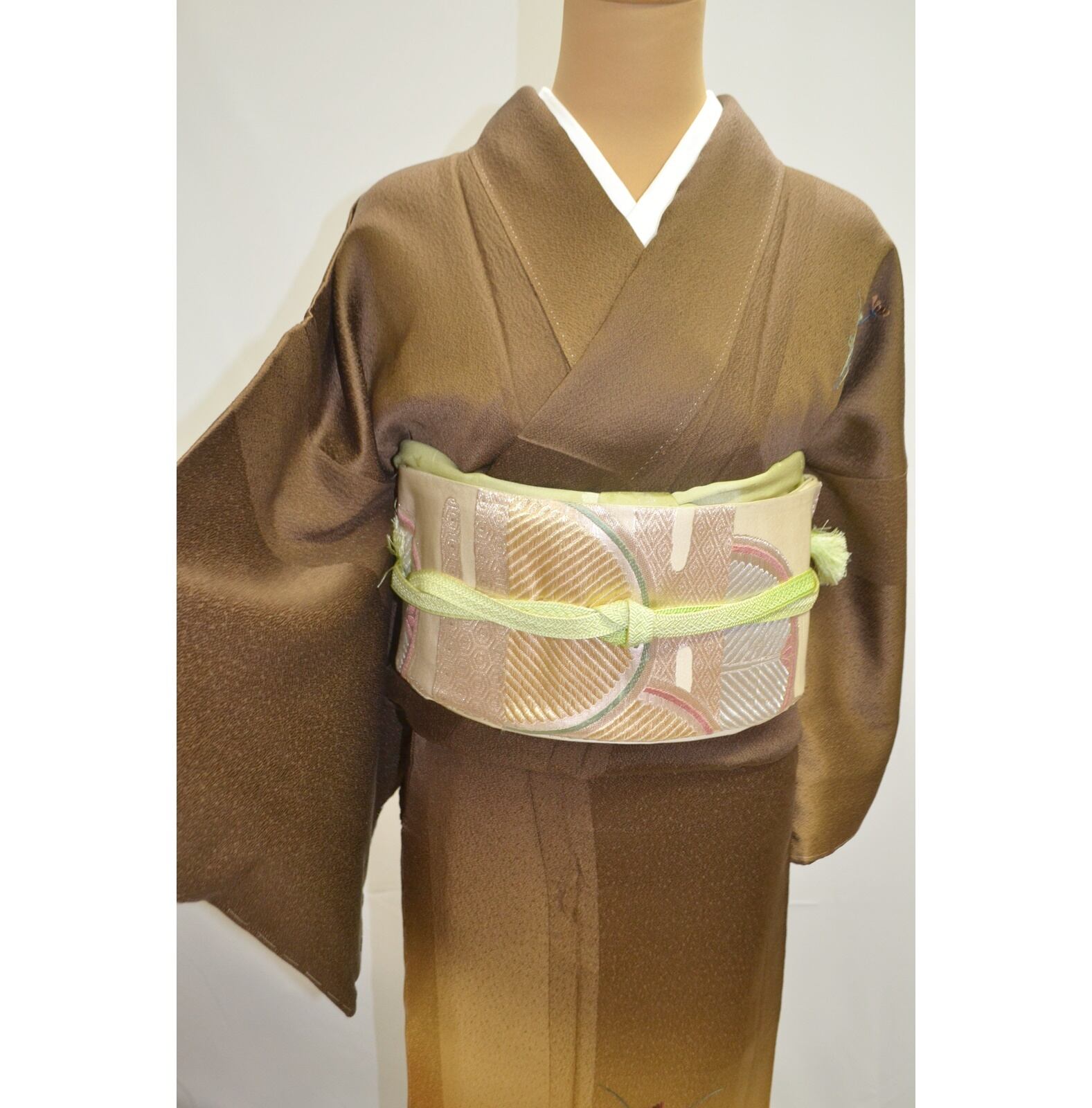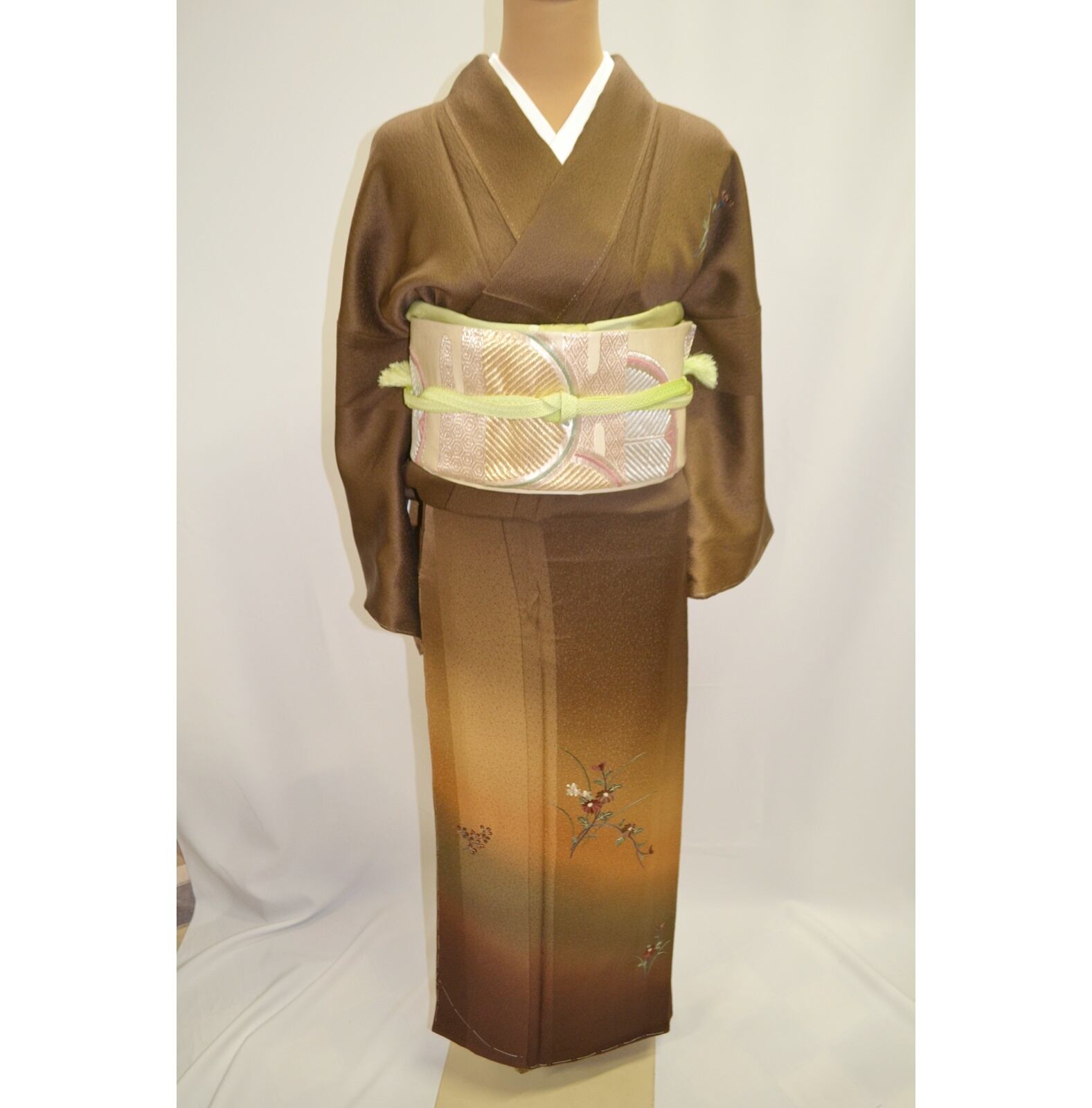 茶系の訪問着です。光沢があり、グラデーションがかかっています。