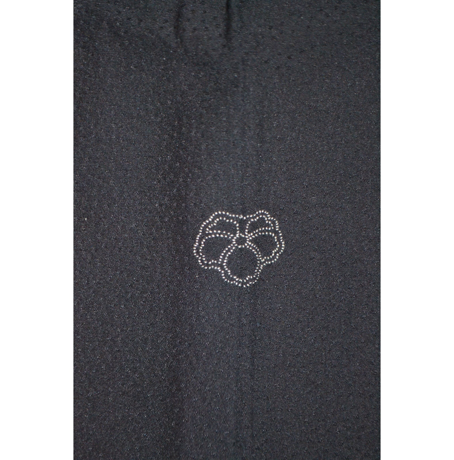 黒地に同色でアラレのような地紋と扇か銀杏のような柄がとび柄で入っています。