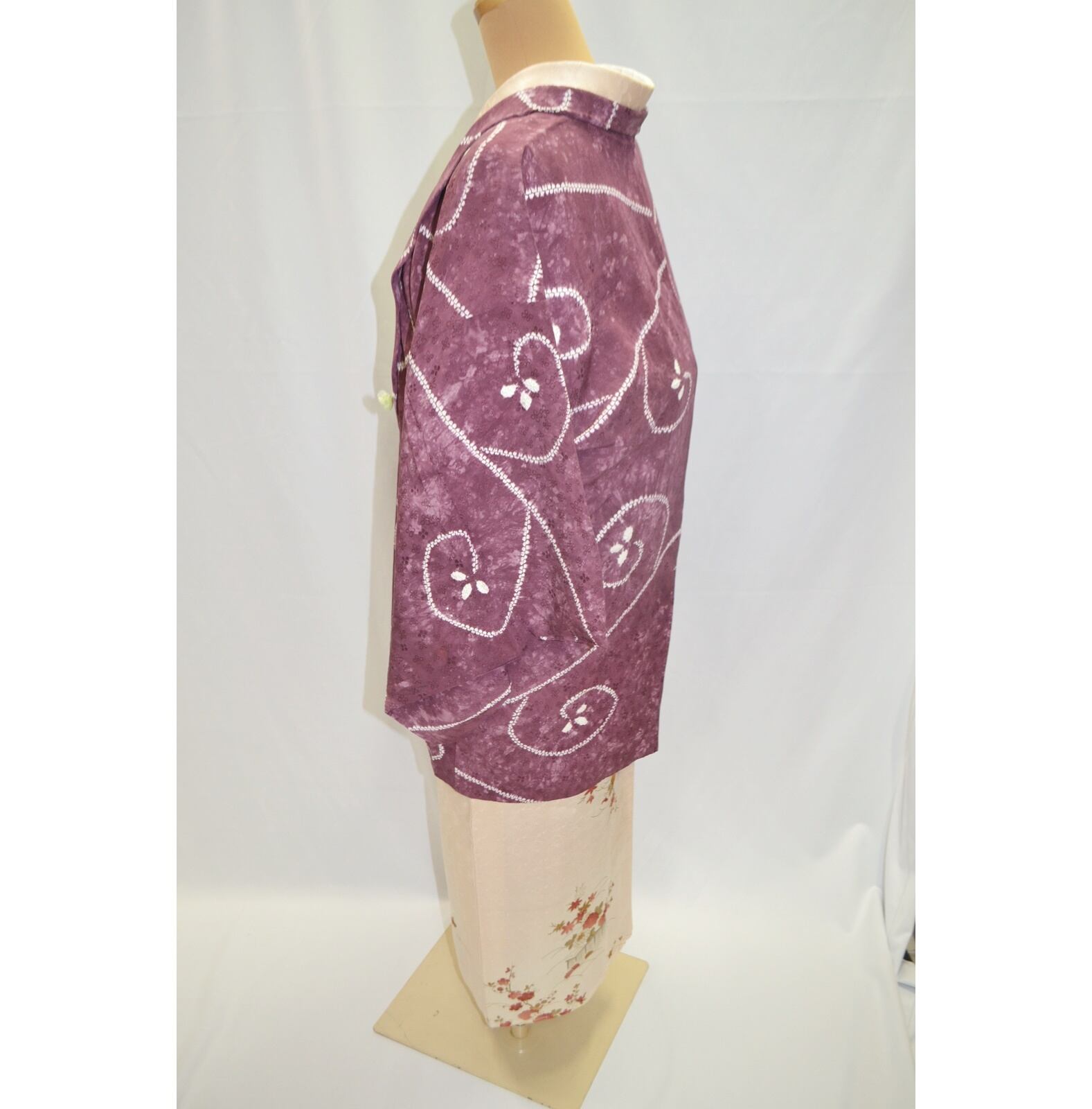 【羽織】紫「葉っぱくるり」☆小花地紋様