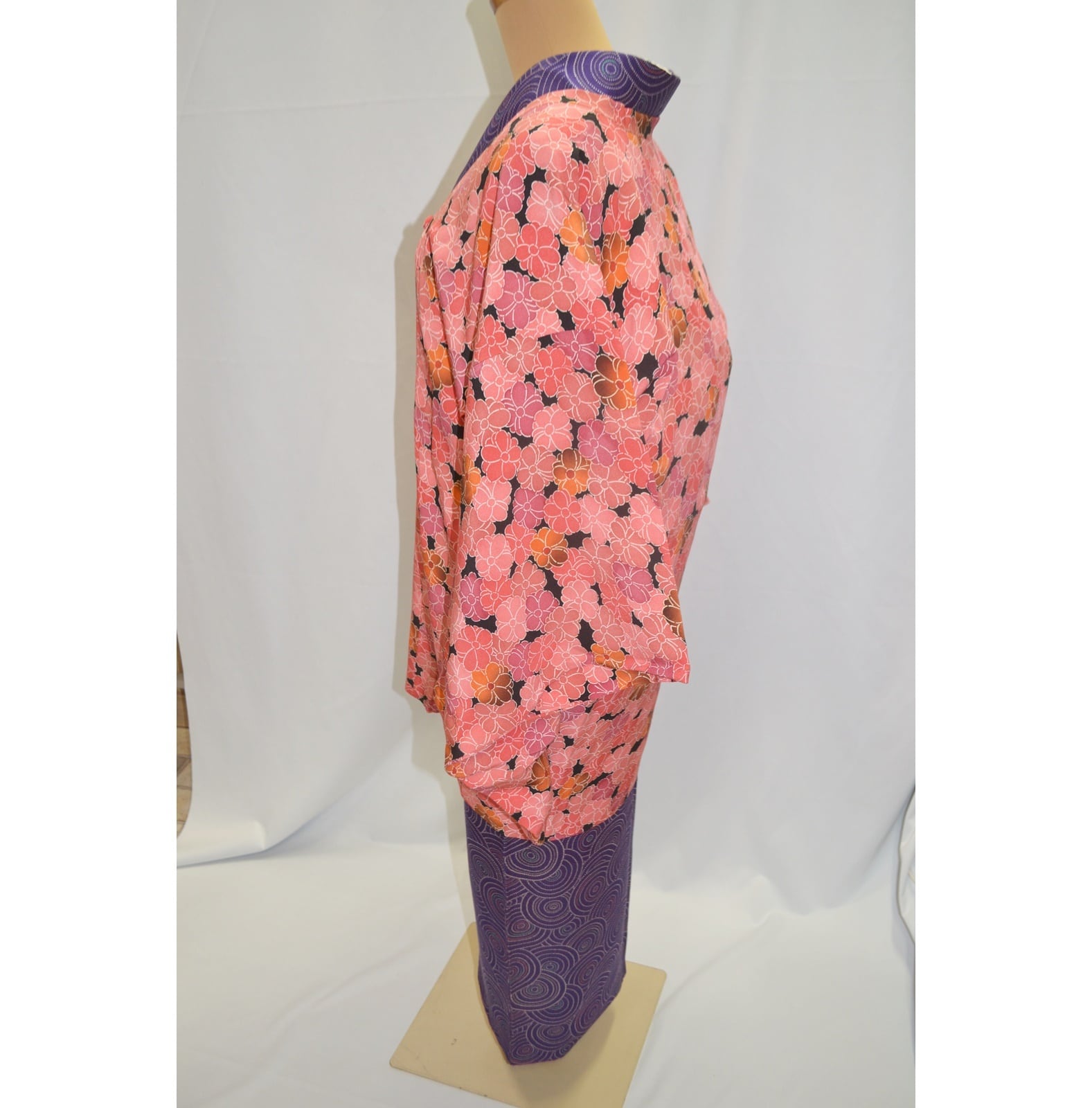 道行コート 和装コート裄67cm 型染ピンク お花畑