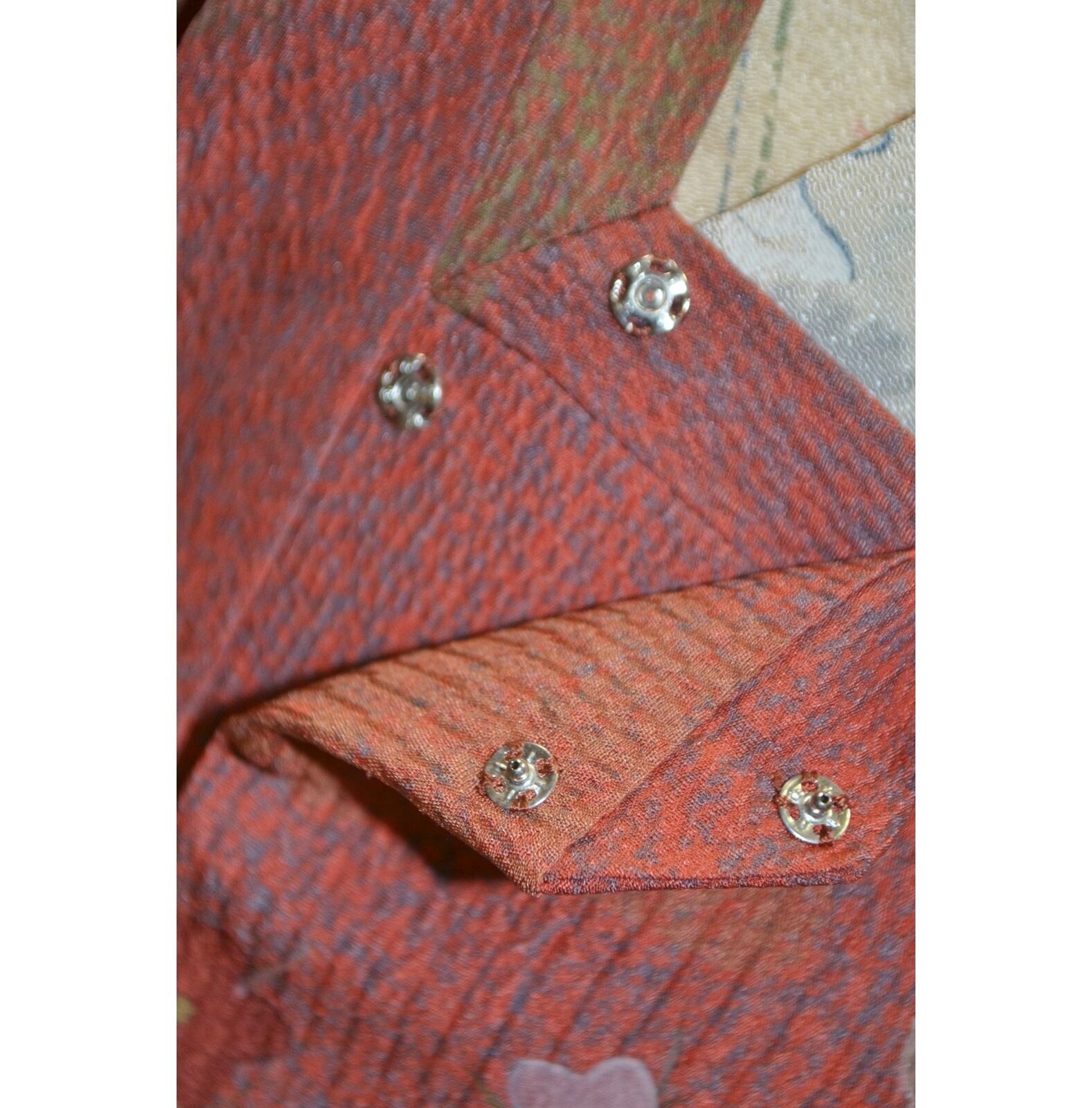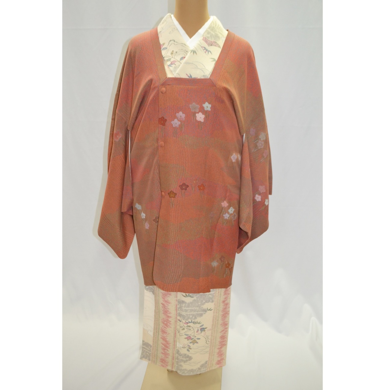 道行コート 和装コート 裄69cm 膨れ織 赤茶系 手描きの水仙